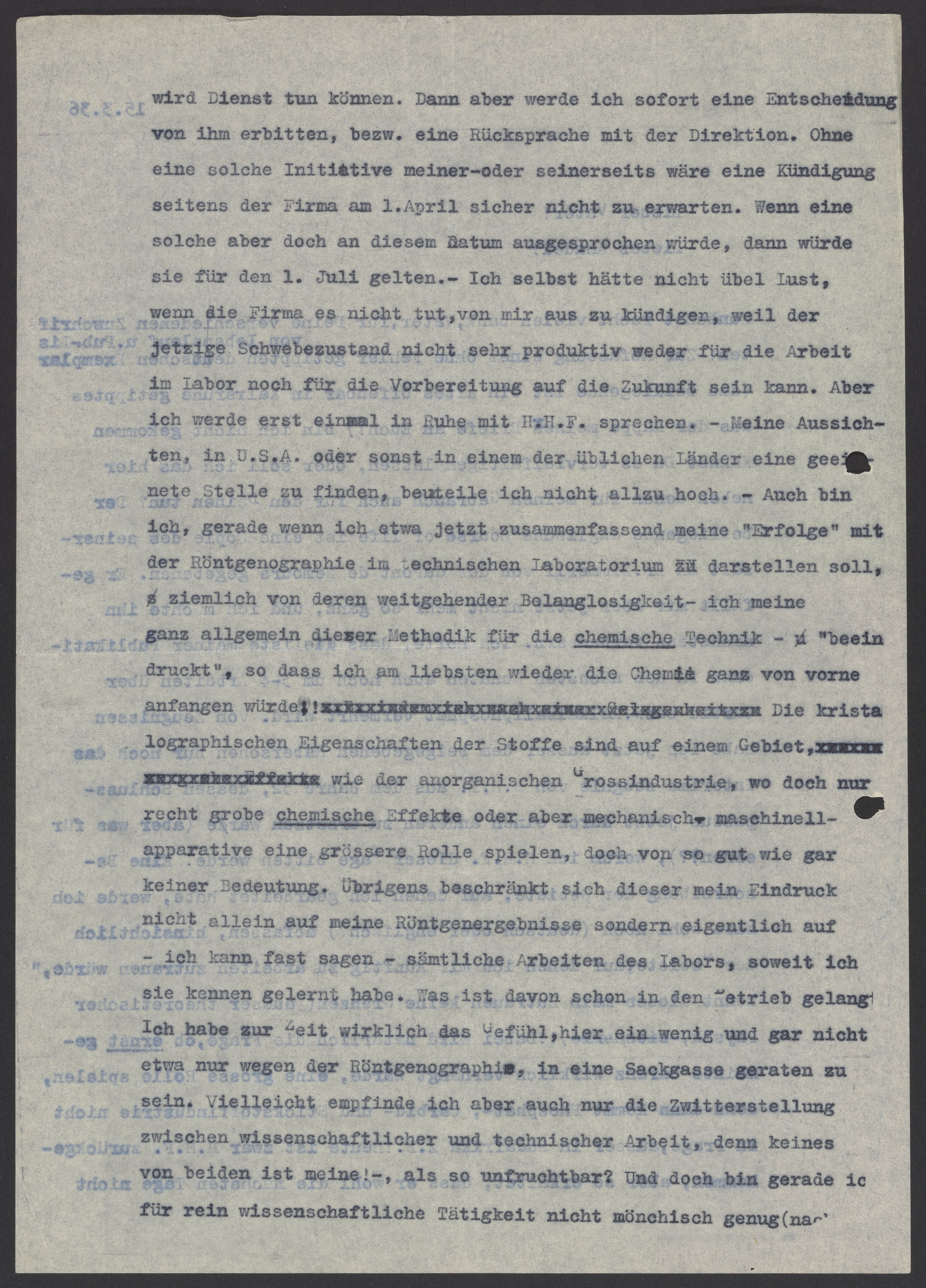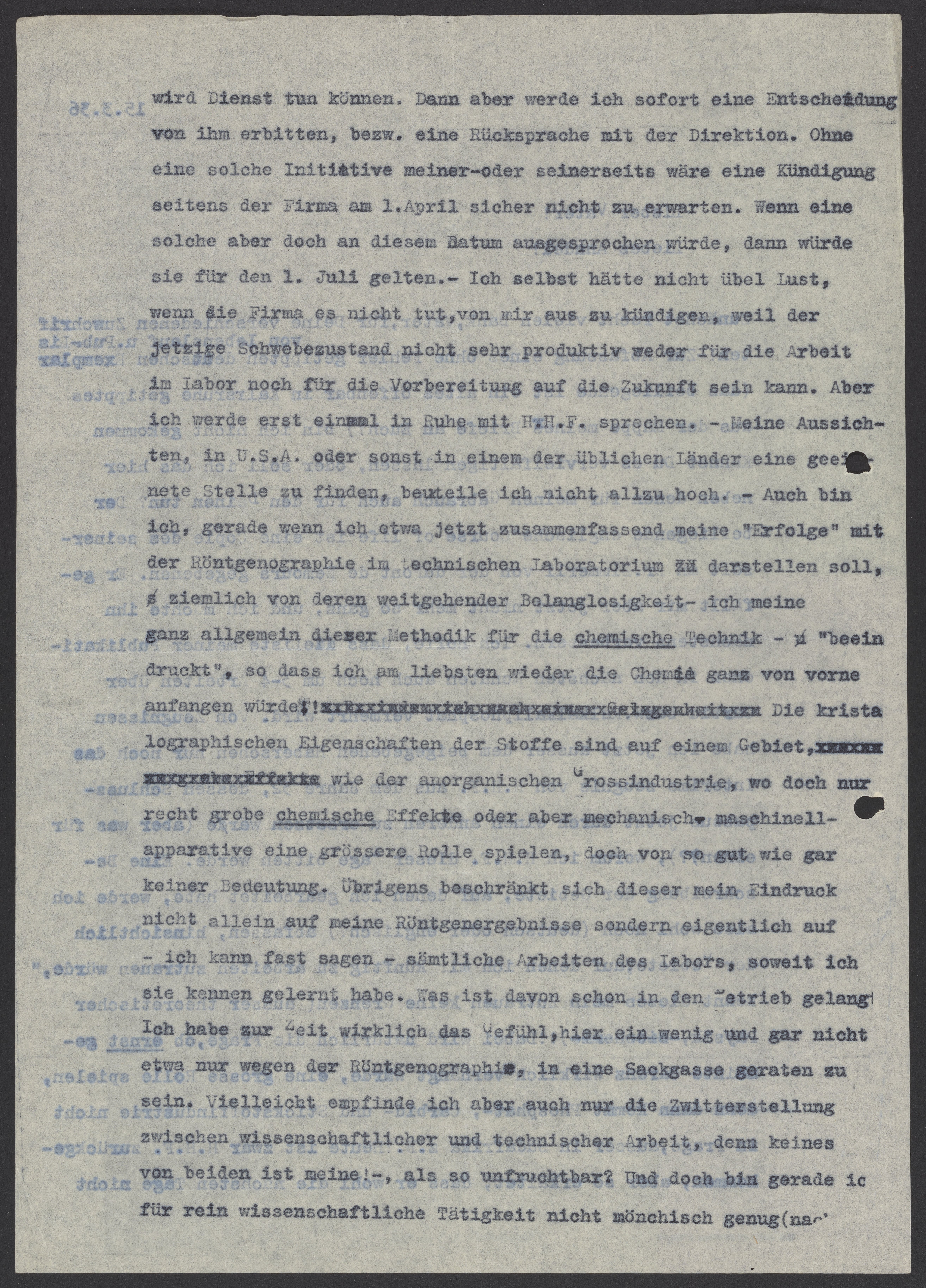 Small JPG1200 x 1669px — 420 KBLarge JPG2880 x 4005px — 2.4 MBFull-sized JPG5259 x 7313px — 7.2 MBOriginal fileTIFF — 5259 x 7313px — 110 MBMax Bredig (1902-1977) writes to his father, Georg Bredig (1868-1944), and his sister, Marianne Homburger (1903-1986). Max discusses his work and potential jobs in other countries. Max expresses that he feels like he is at a dead end in his current position.