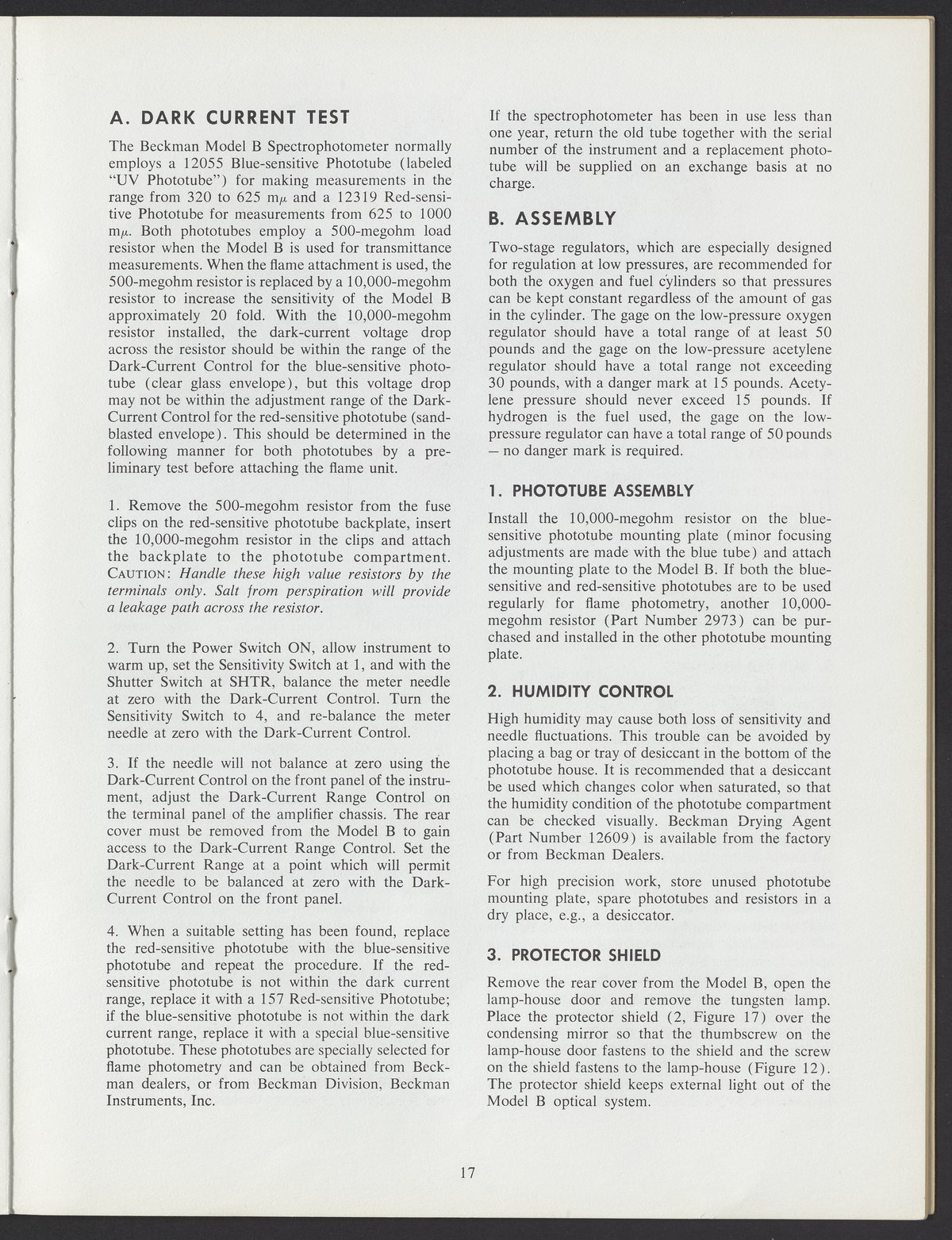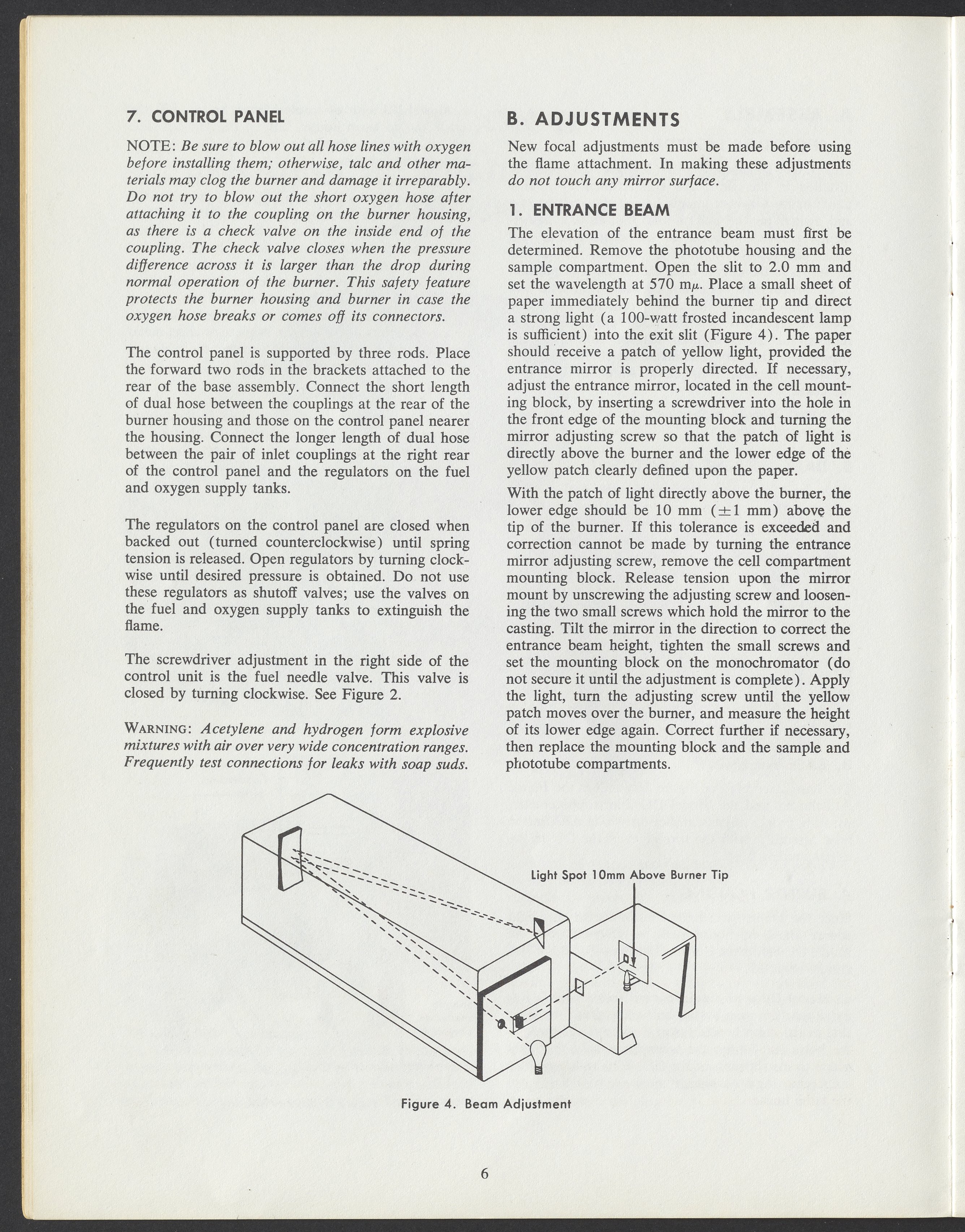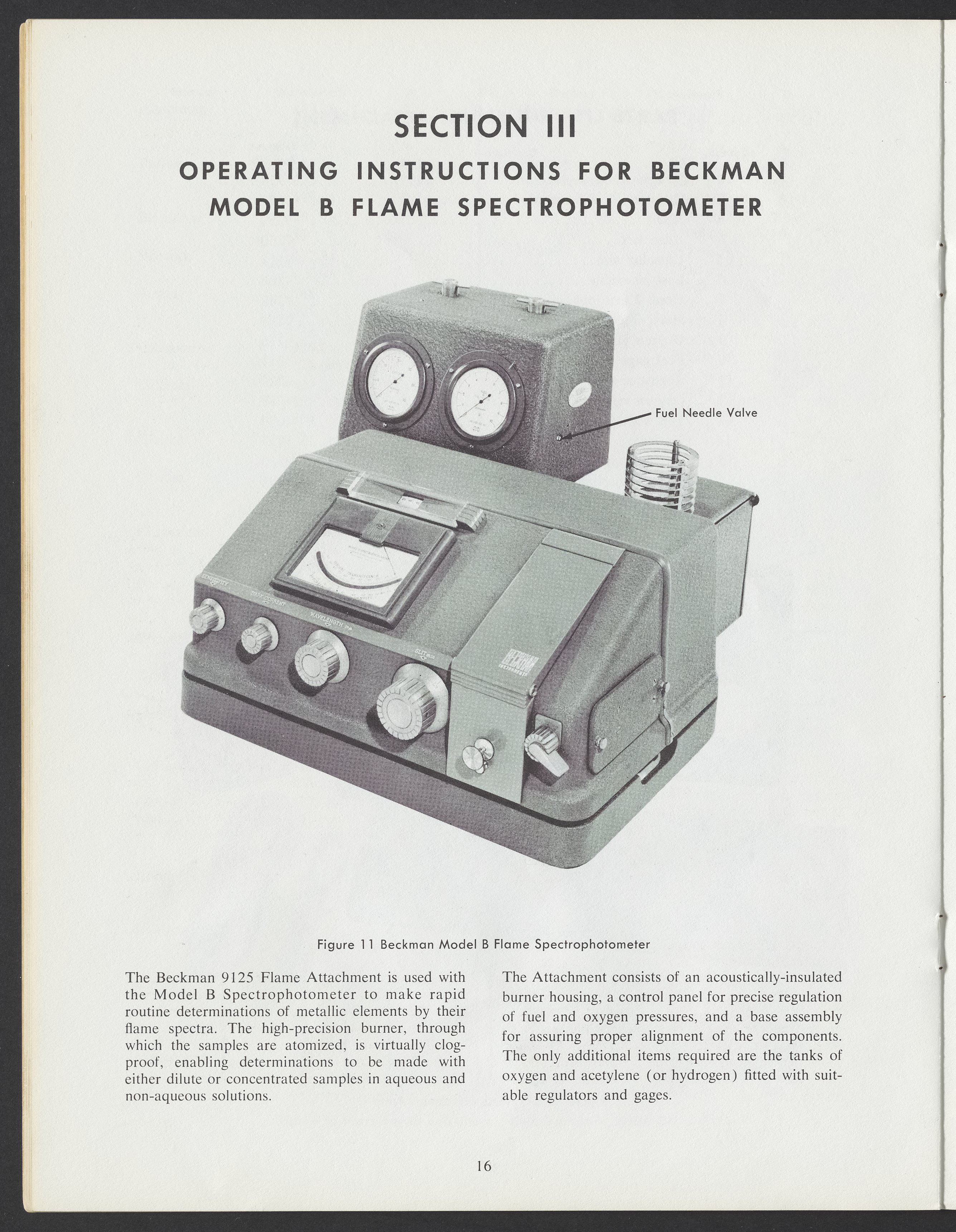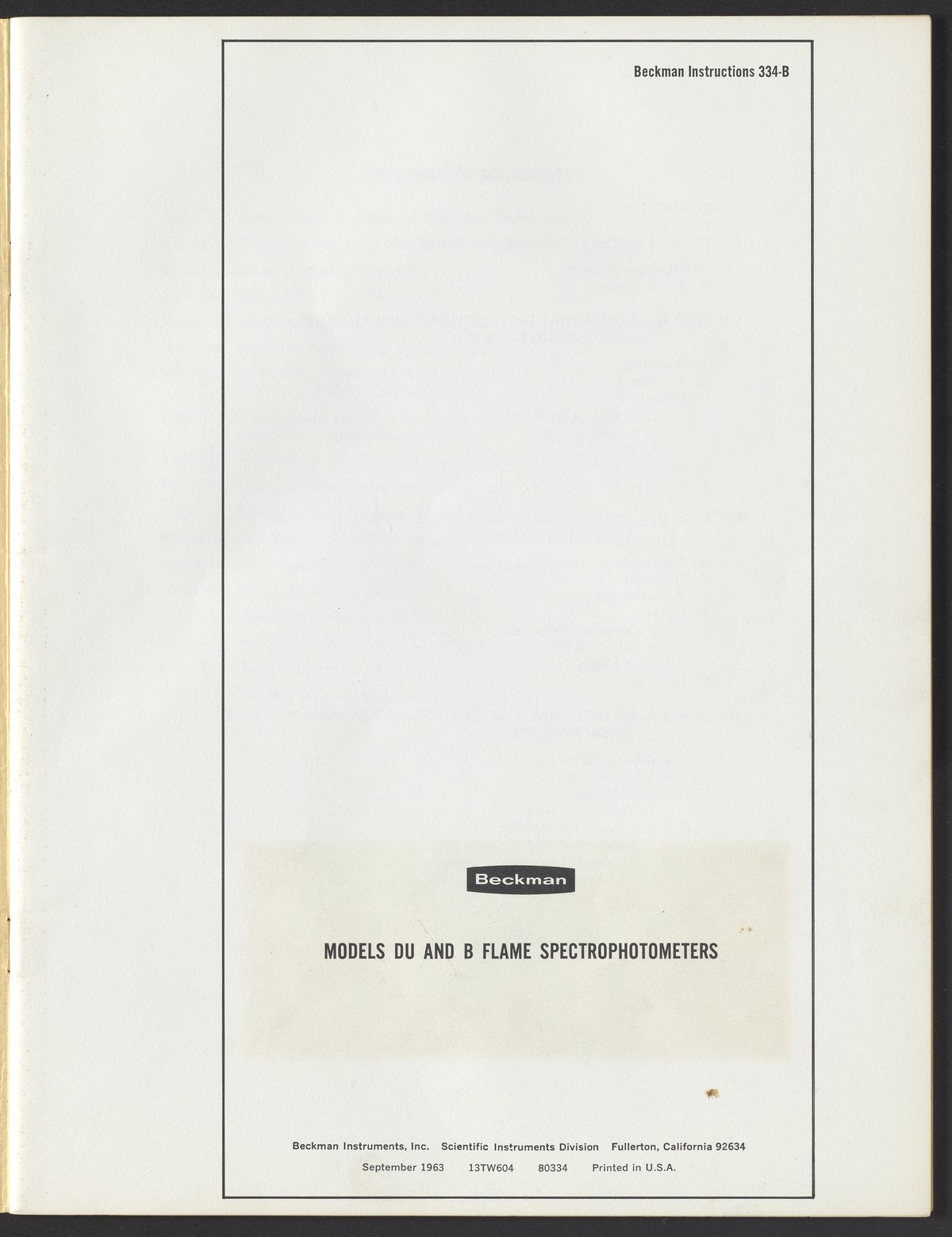 Beckman Instruments, Inc. “Instruction Manual, Beckman Models DU and B Flame Spectrophotometers,” September 1963. Beckman Historical Collection, Box 104, Folder 215. Science History Institute. Philadelphia. https://digital.sciencehistory.org/works/9w0323862.