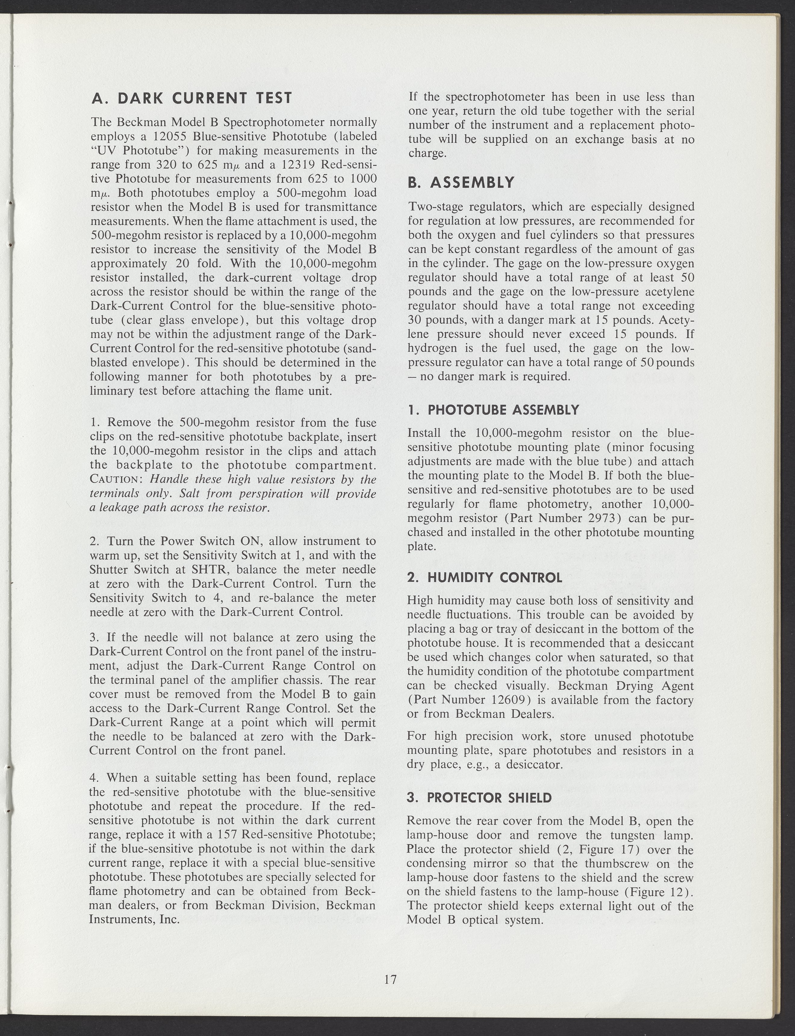 Instruction Manual, Beckman Models DU and B Flame Spectrophotometers