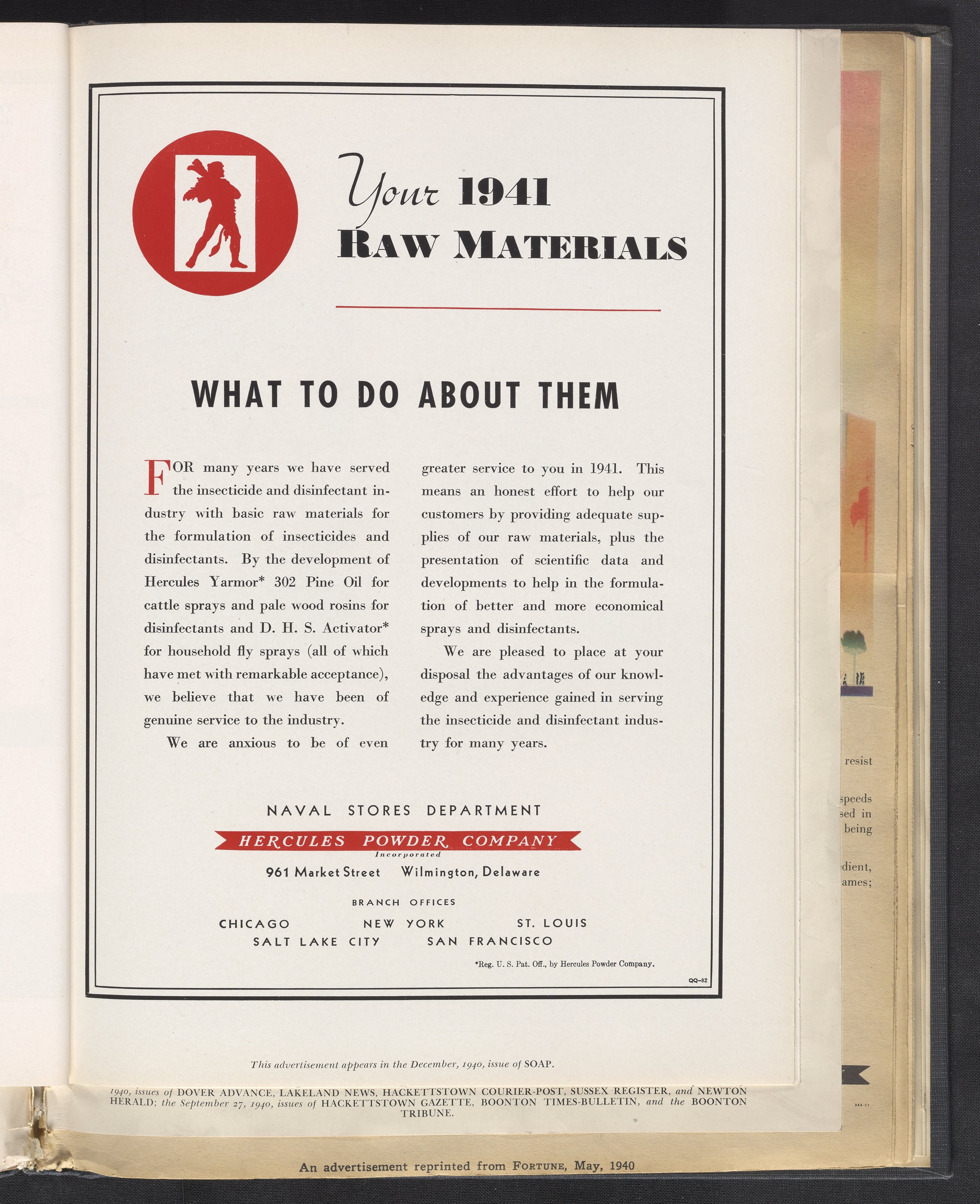 Hercules Incorporated. “Your 1941 Raw Materials: What To Do About Them.” 1940 Hercules Advertisements, 1940. Records of Hercules Incorporated, Volume 1940. Science History Institute. Philadelphia. https://digital.sciencehistory.org/works/9w032389w.