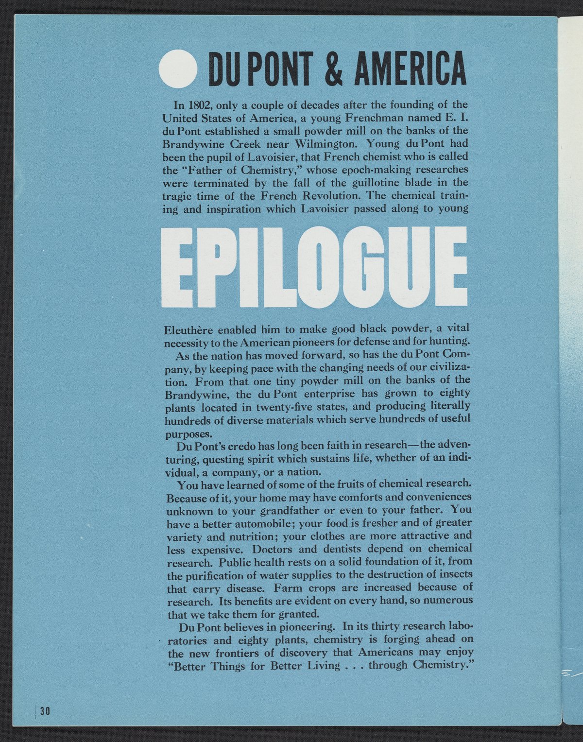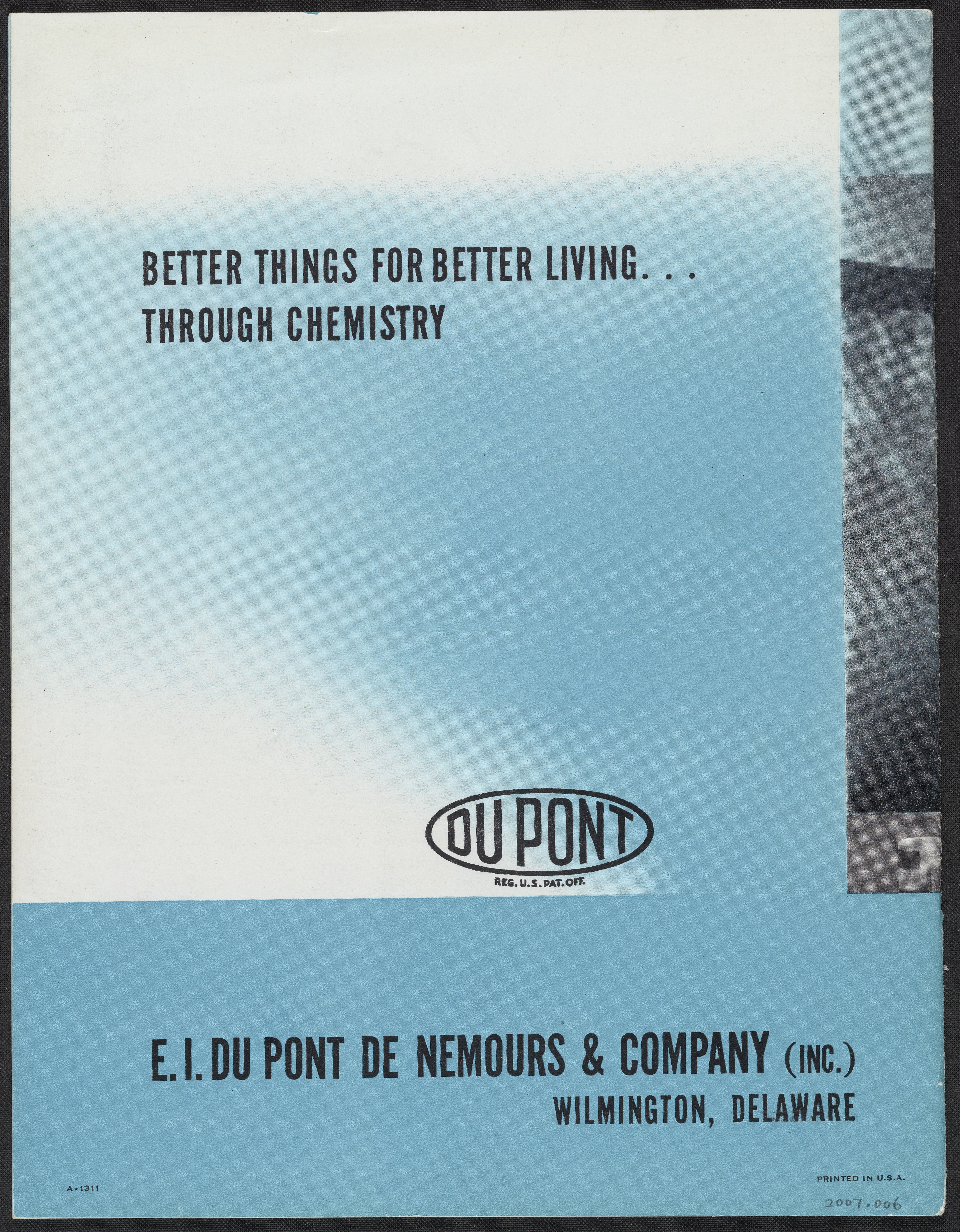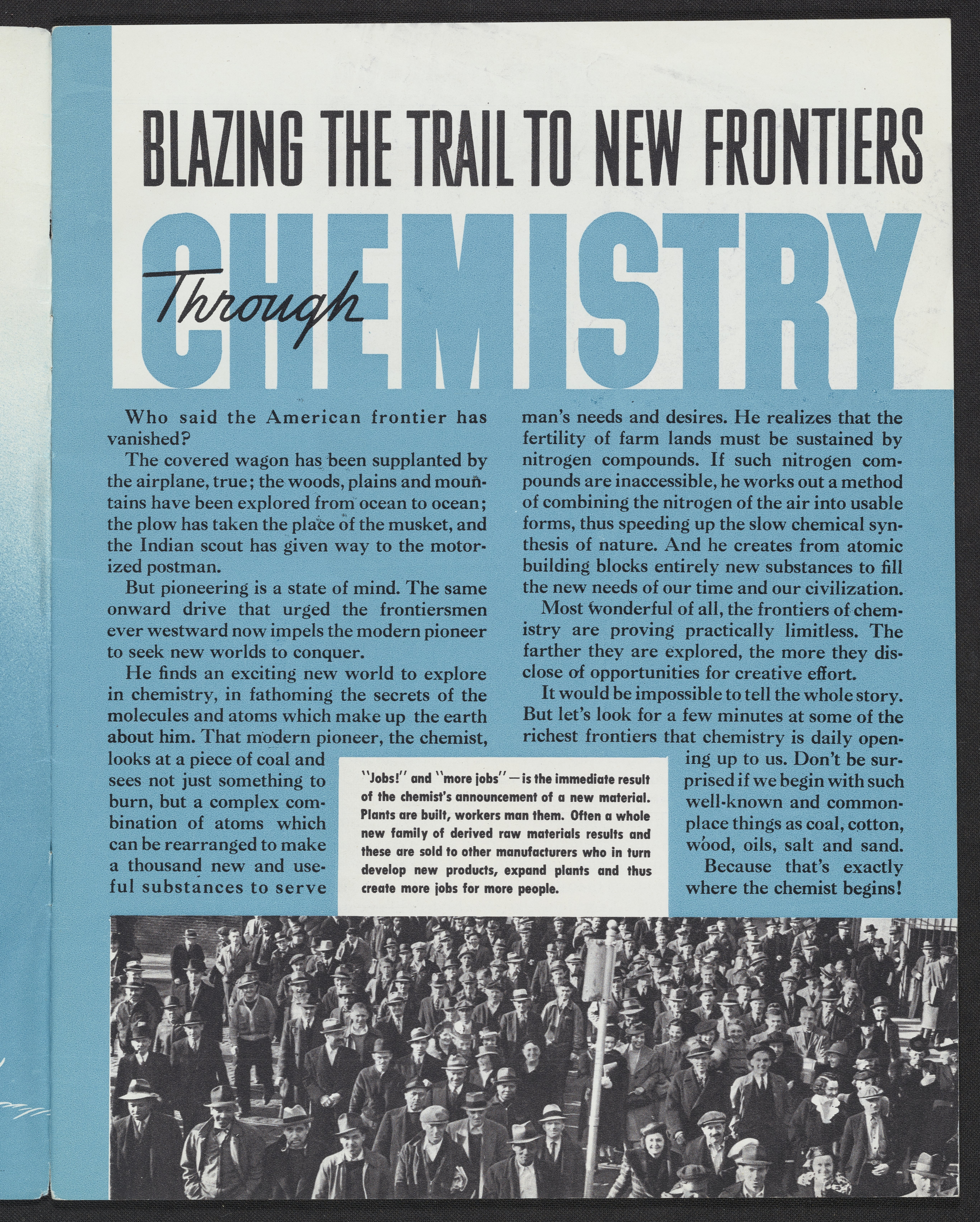 “Blazing the Trail to New Frontiers Through Chemistry.” Wilmington, Delaware: E.I. du Pont de Nemours & Company, 1940. Science History Institute. Philadelphia. https://digital.sciencehistory.org/works/9w032428c.