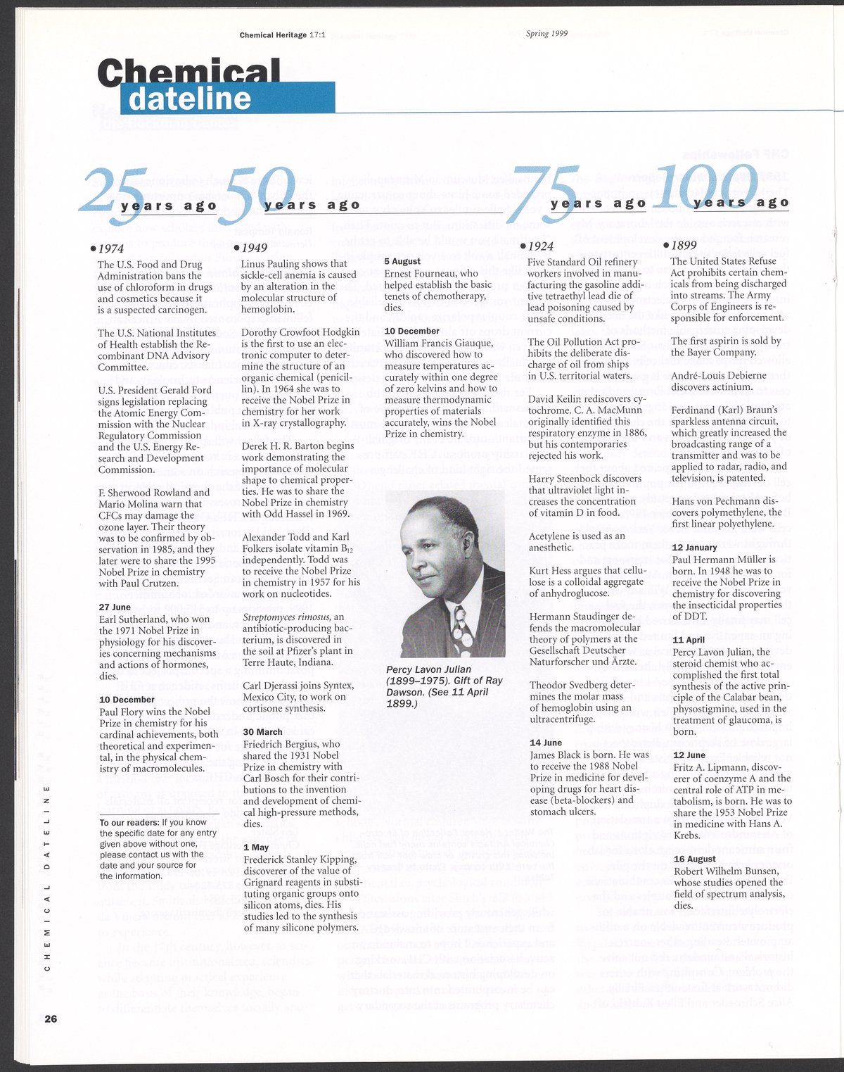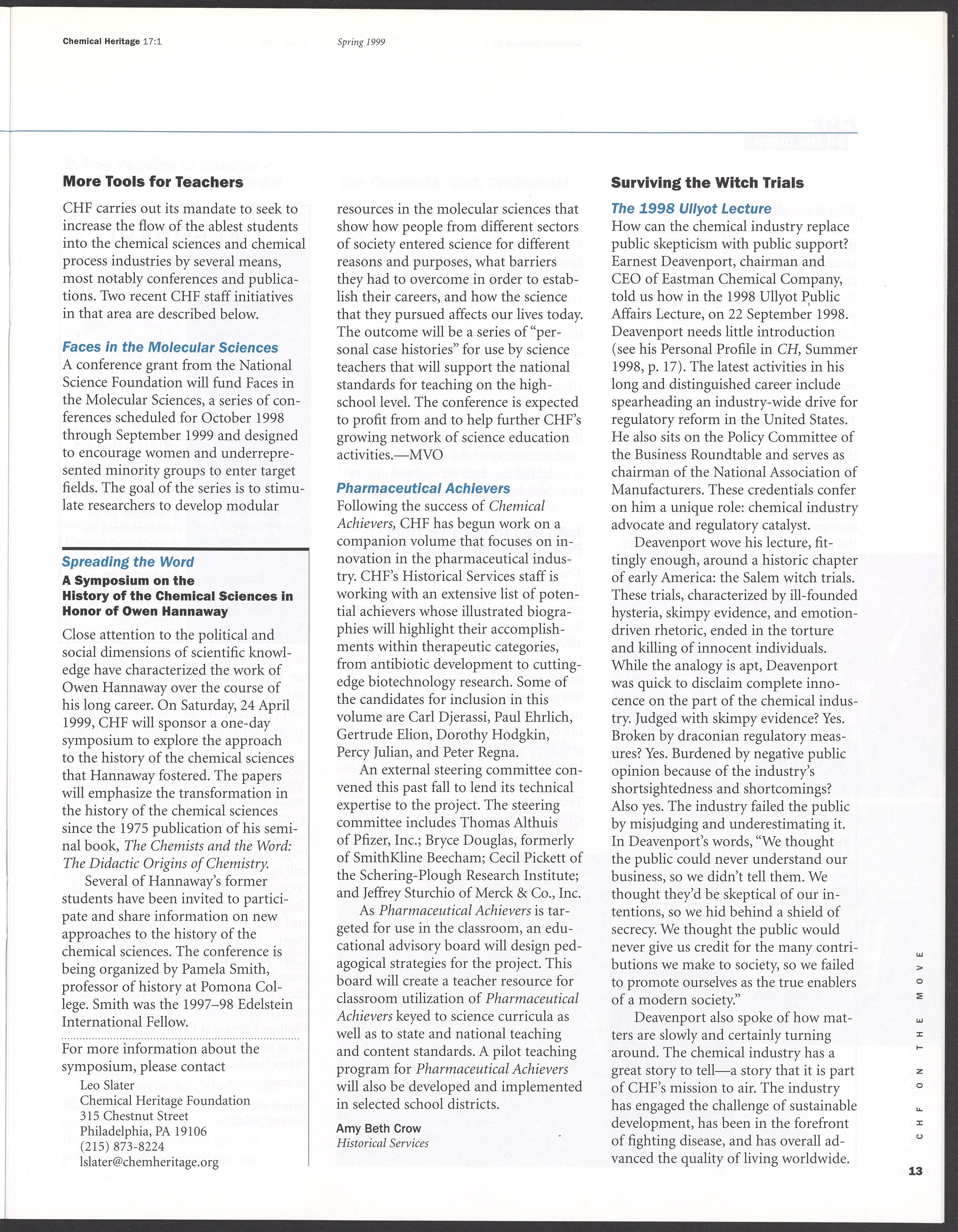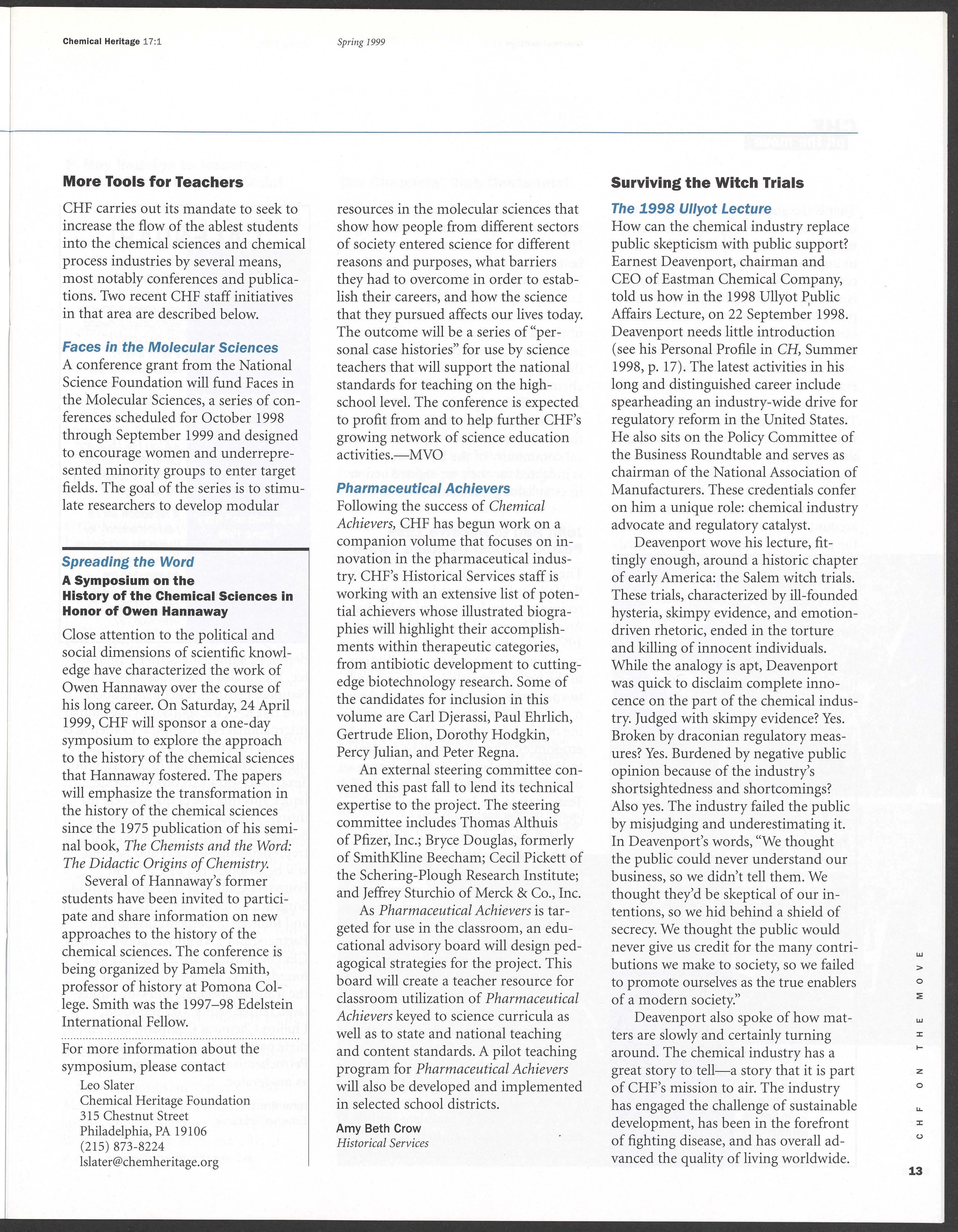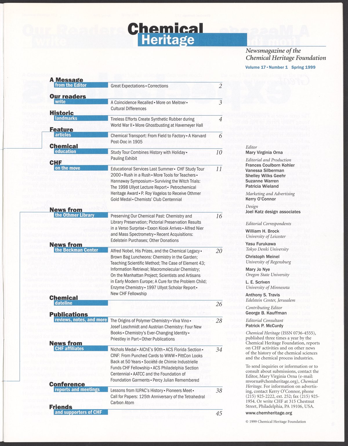 Chemical Heritage, Volume 17 Number 1