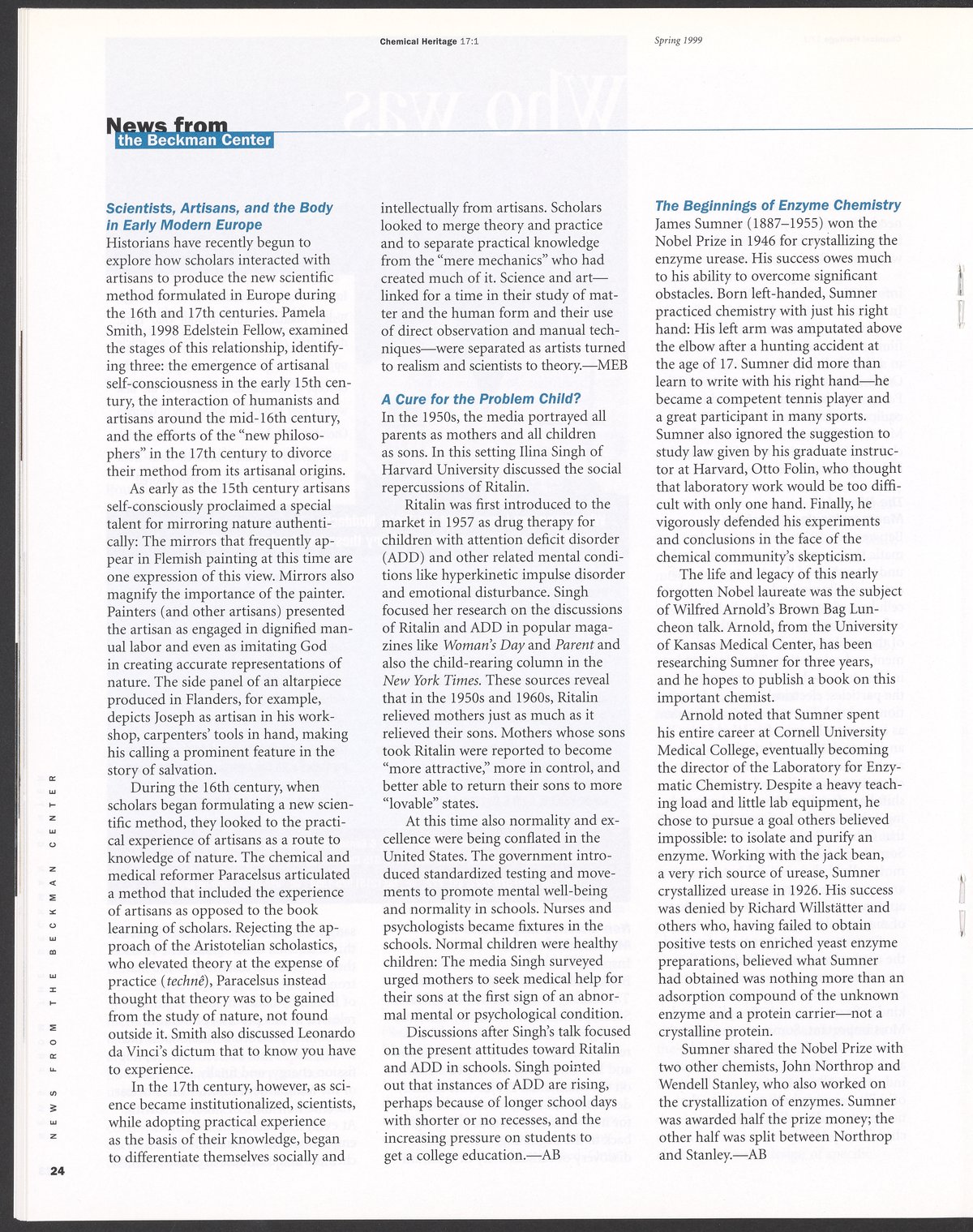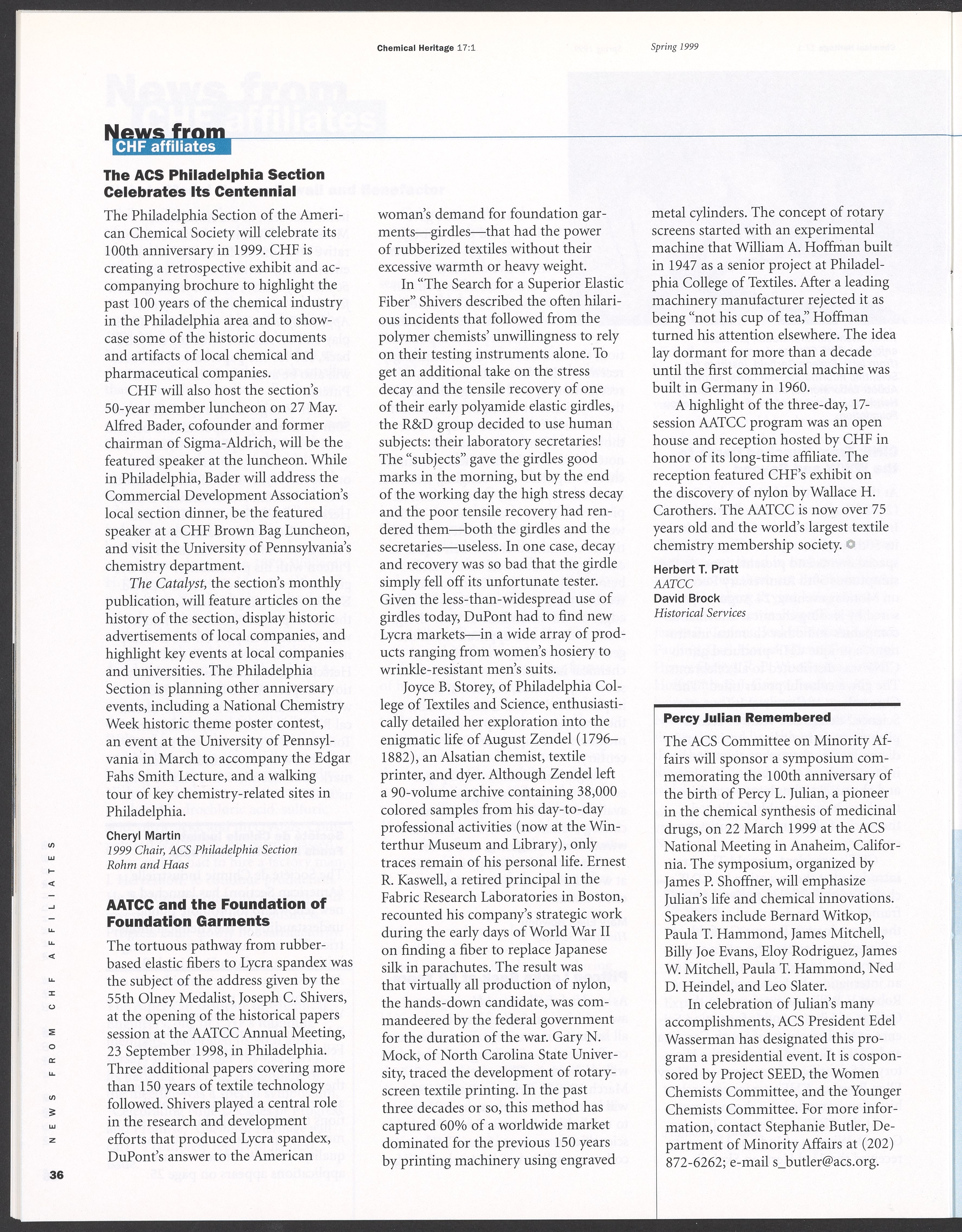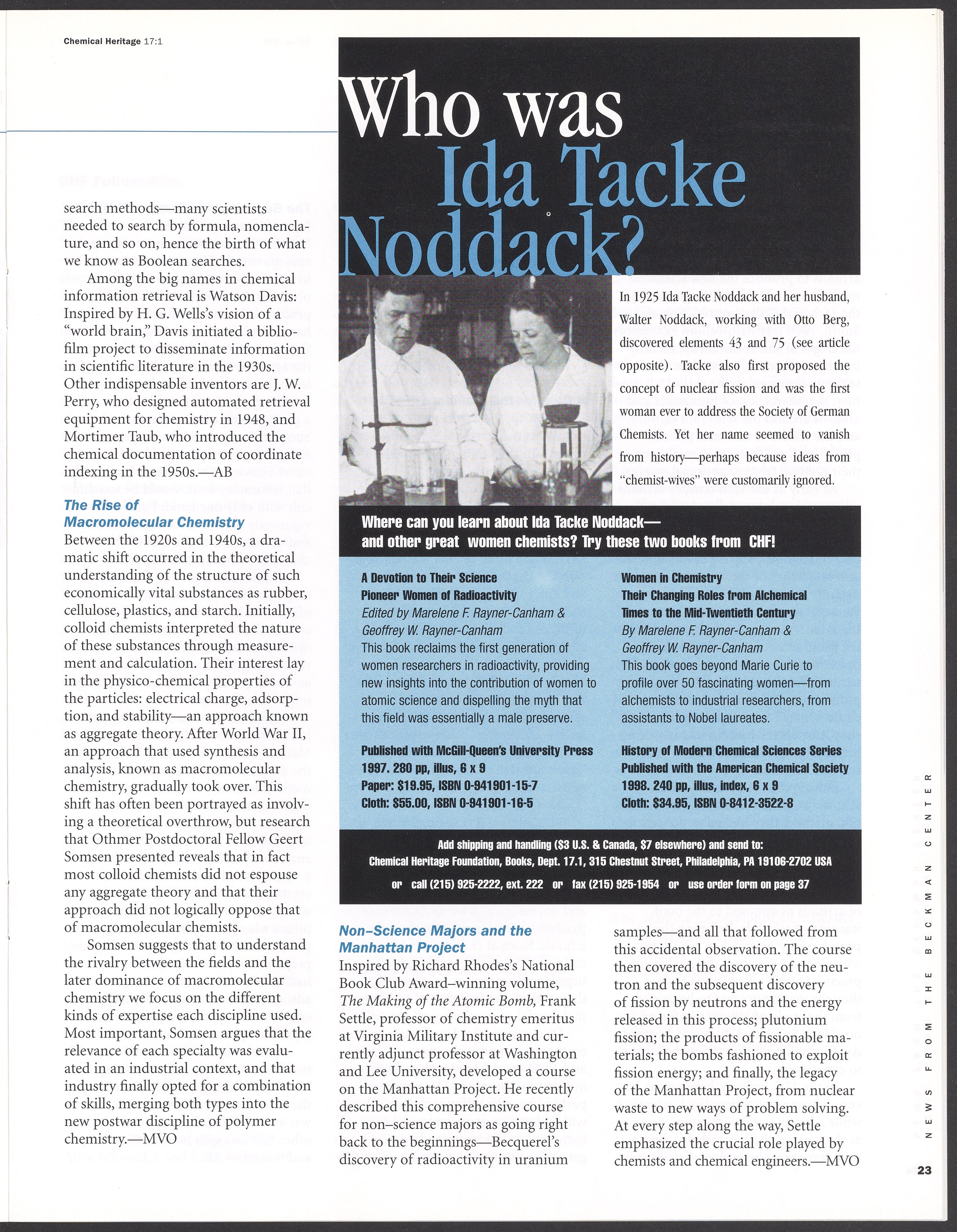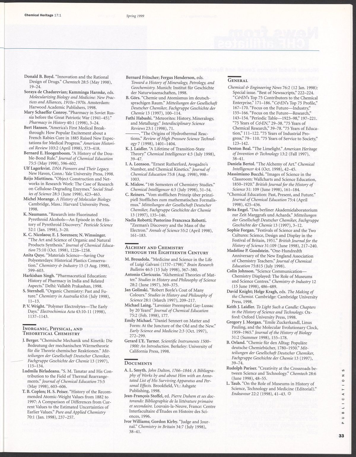Chemical Heritage, Volume 17 Number 1