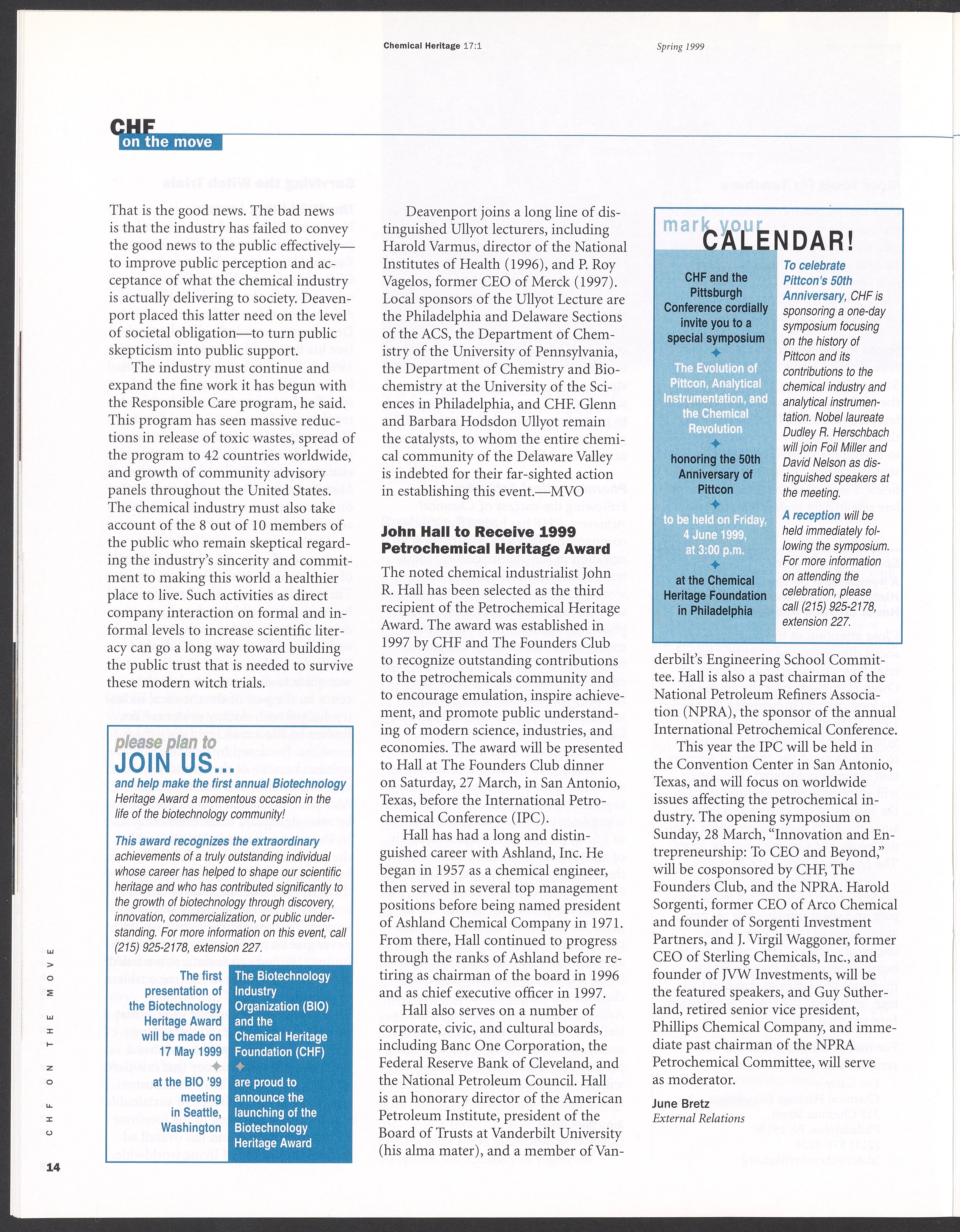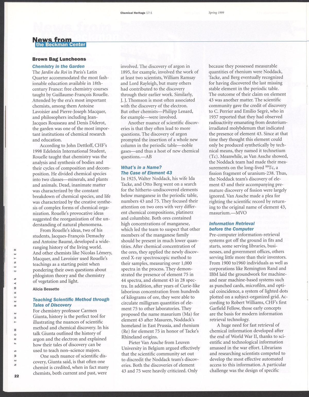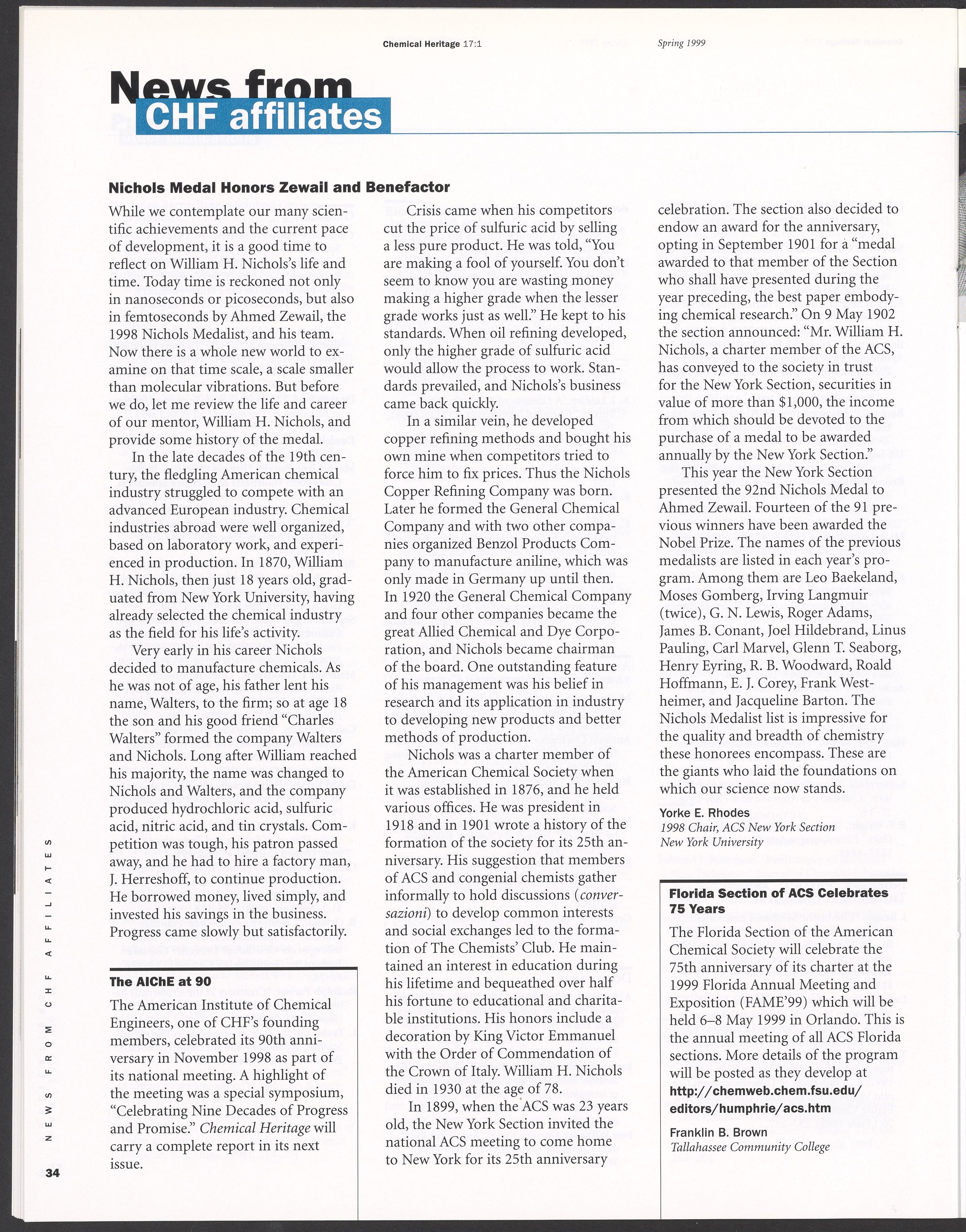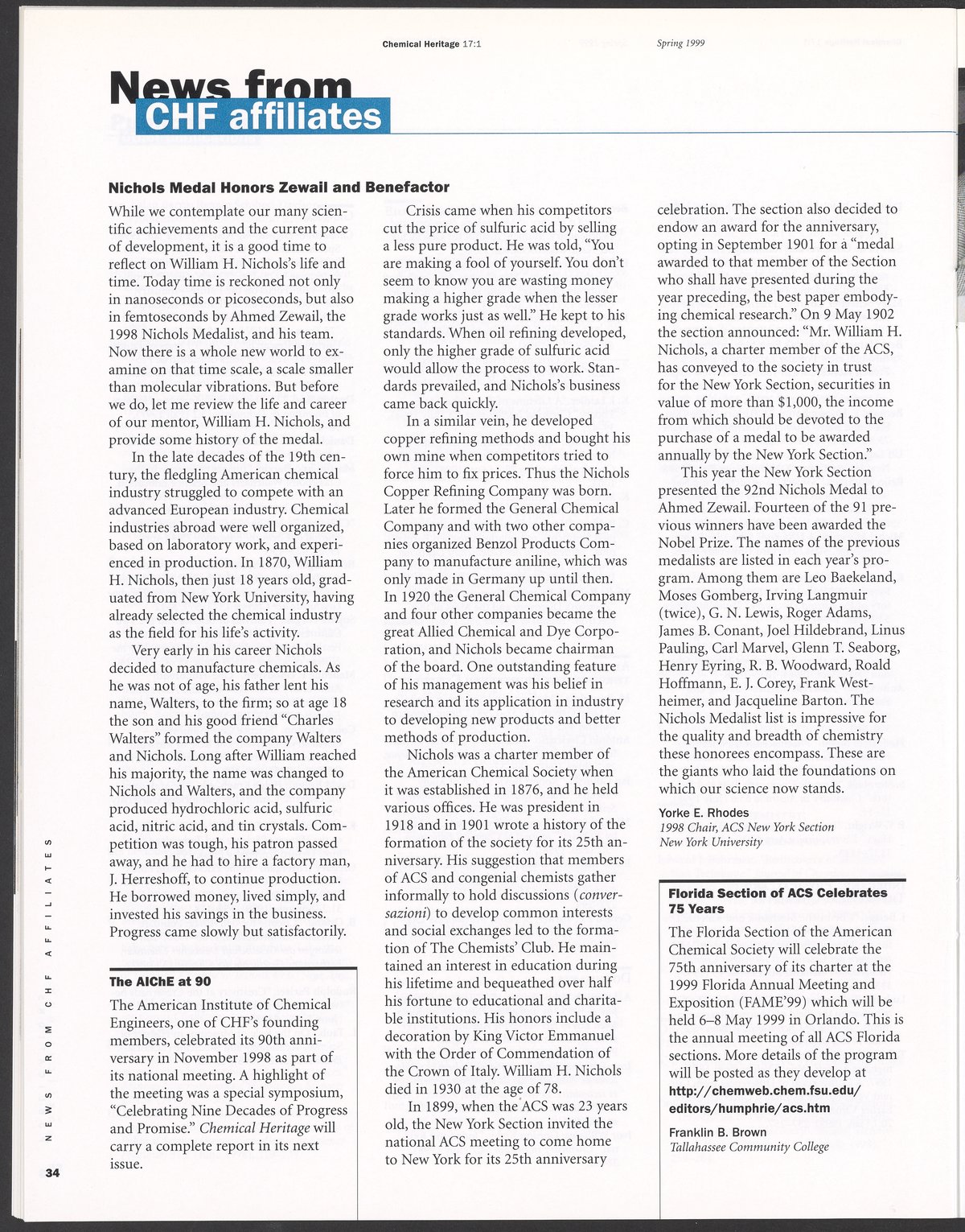 Chemical Heritage, Volume 17 Number 1
