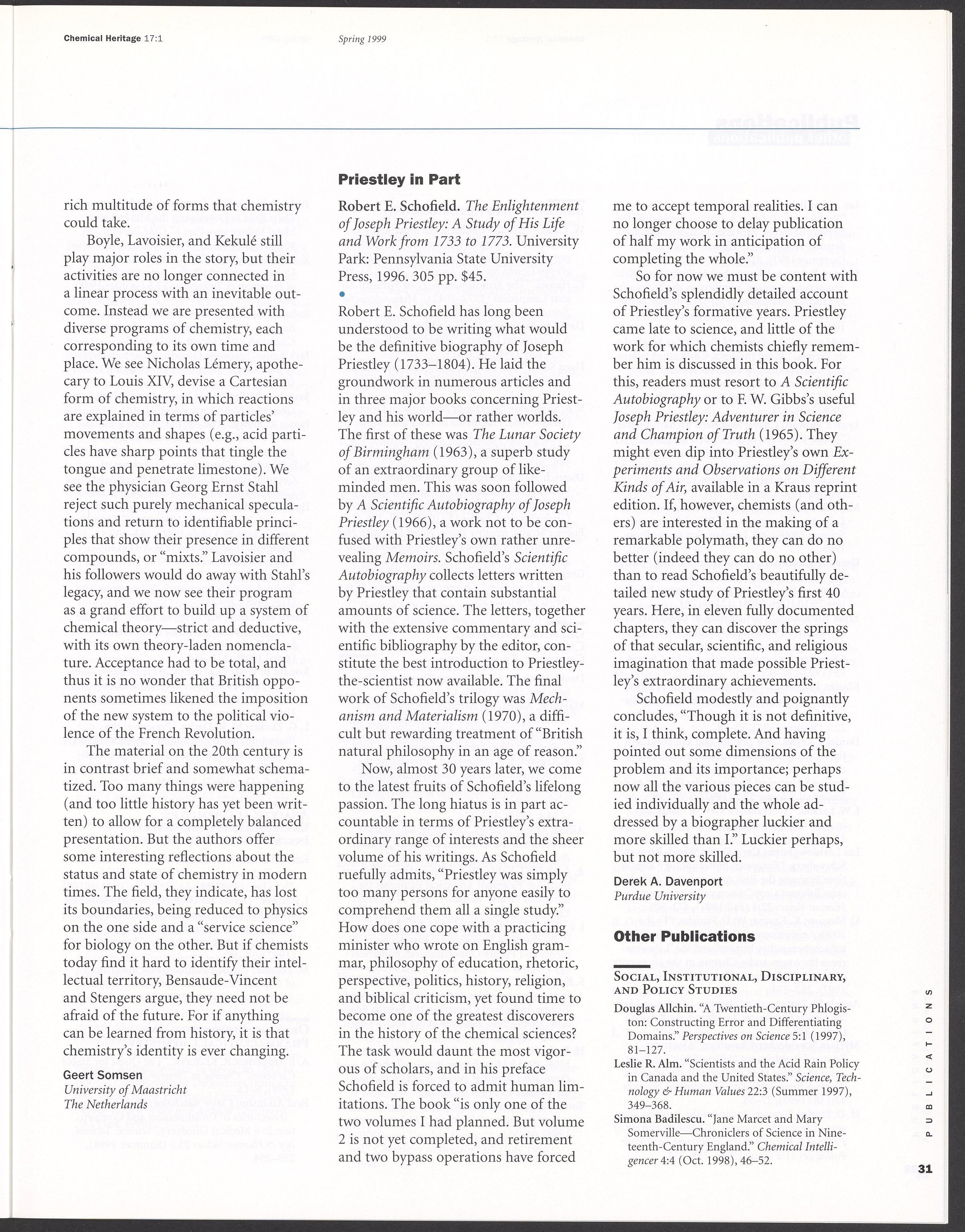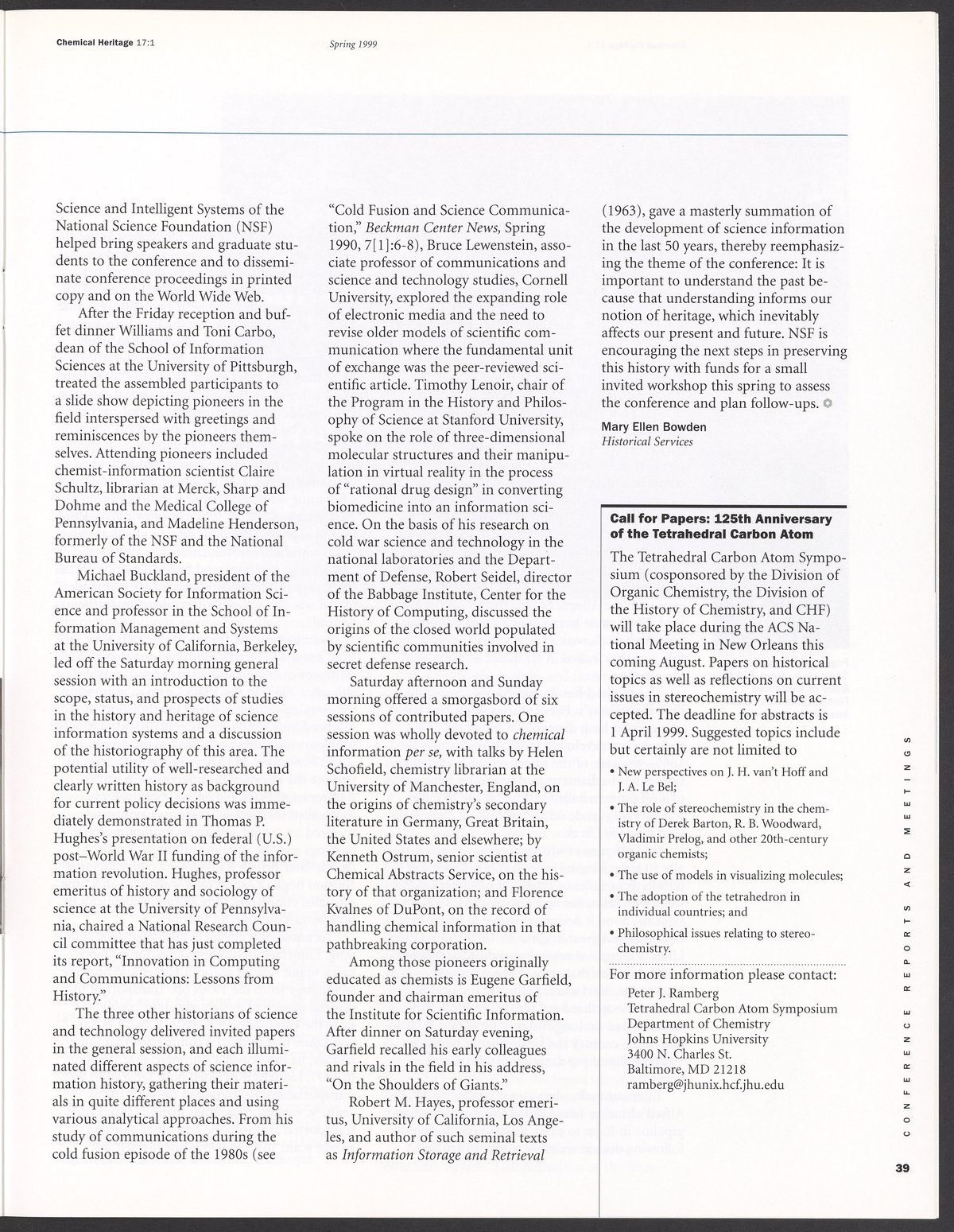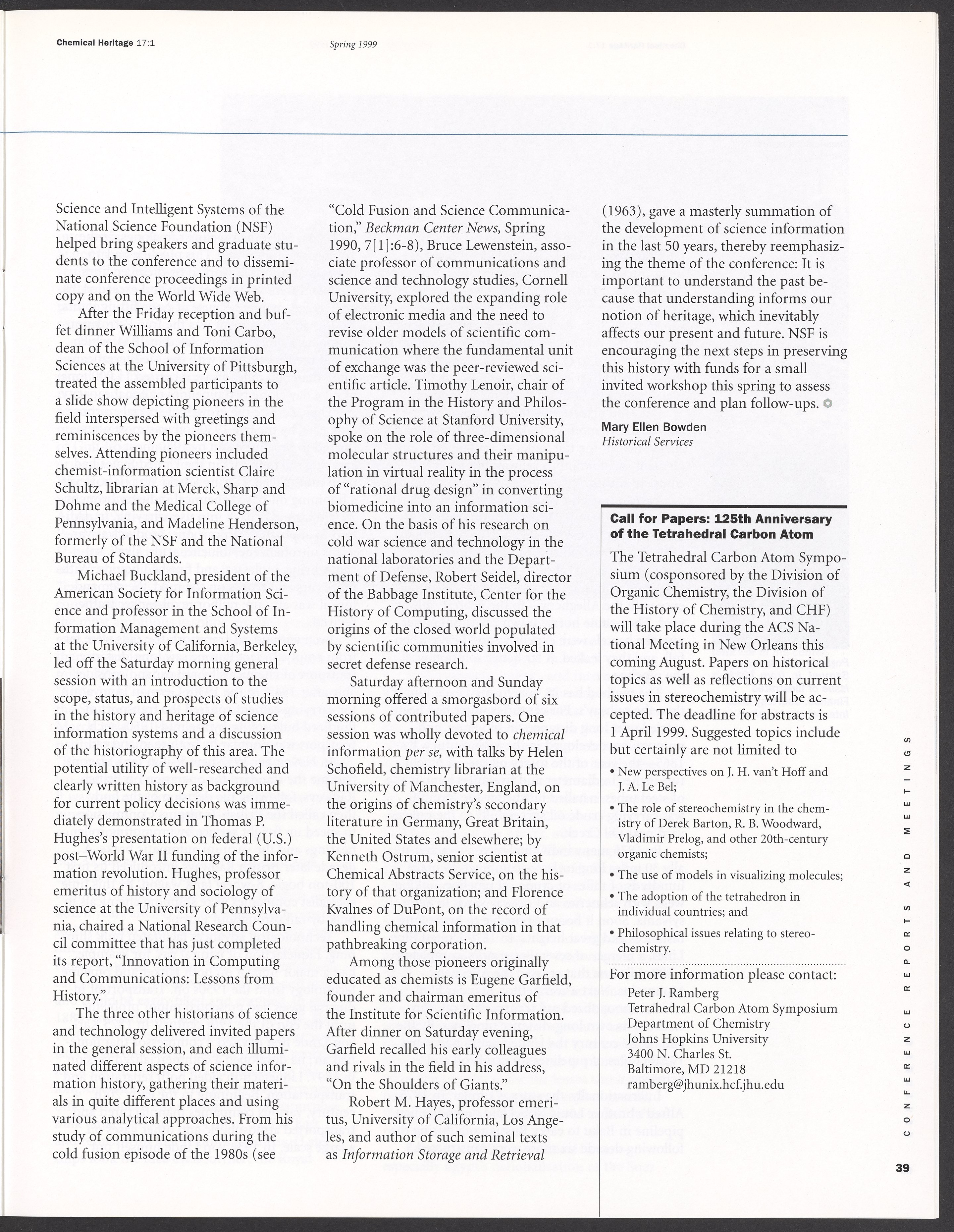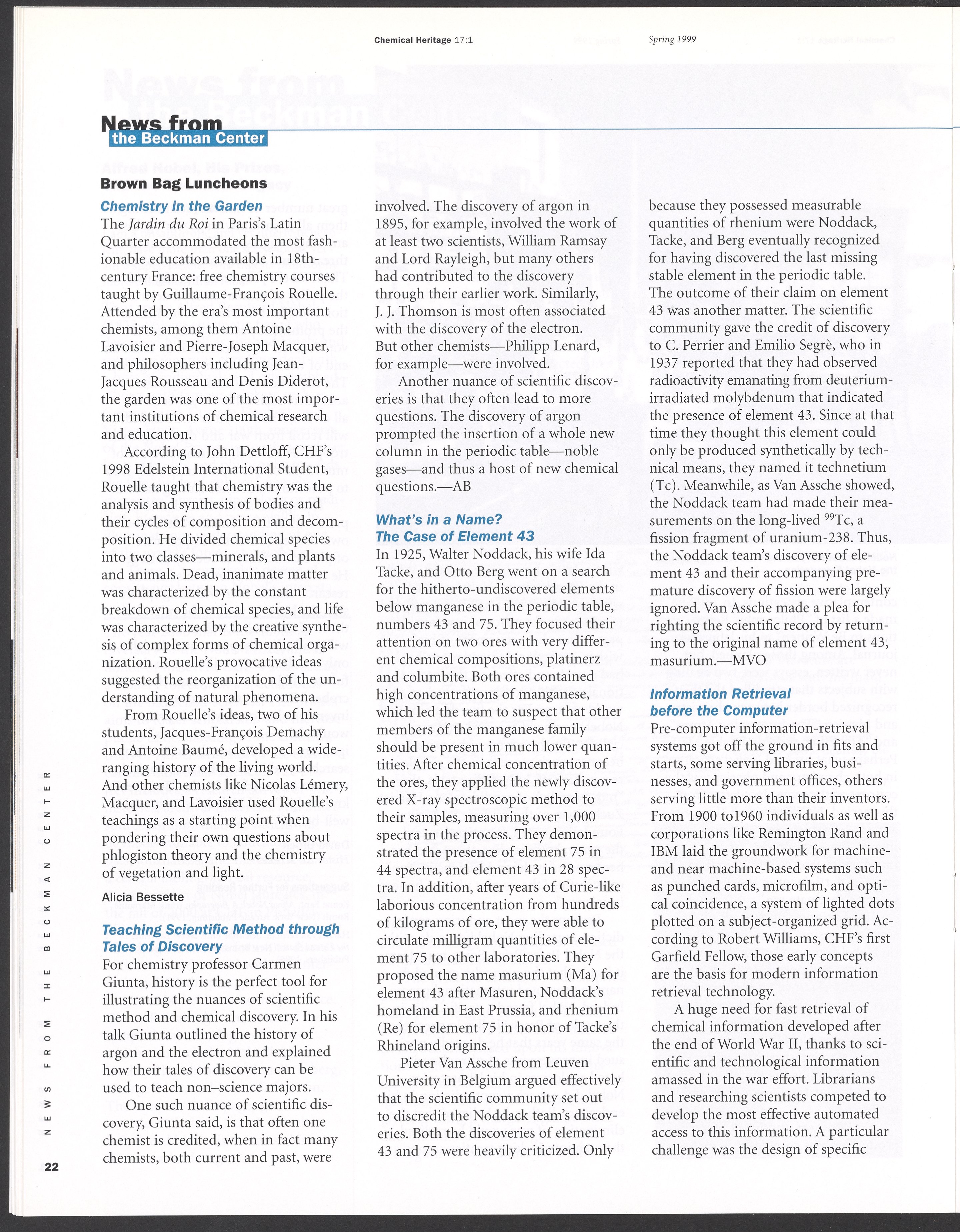 Chemical Heritage, Volume 17 Number 1