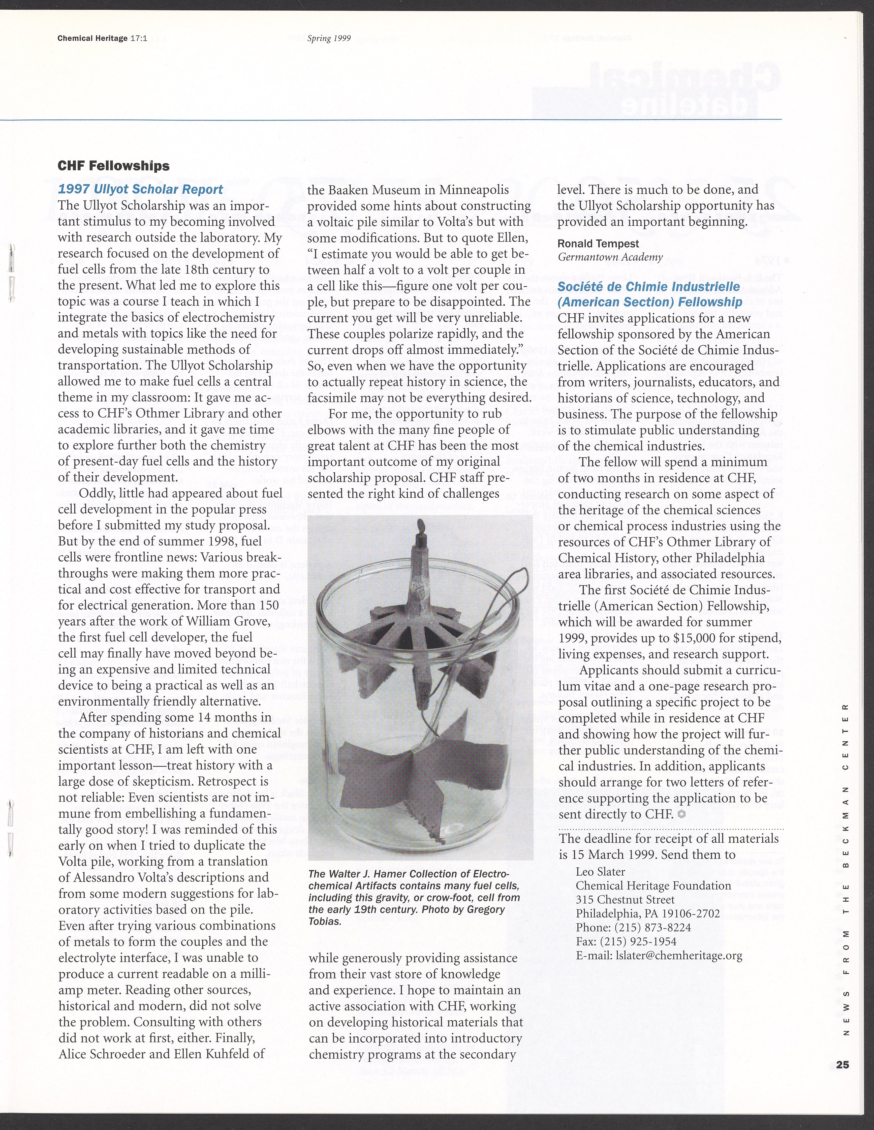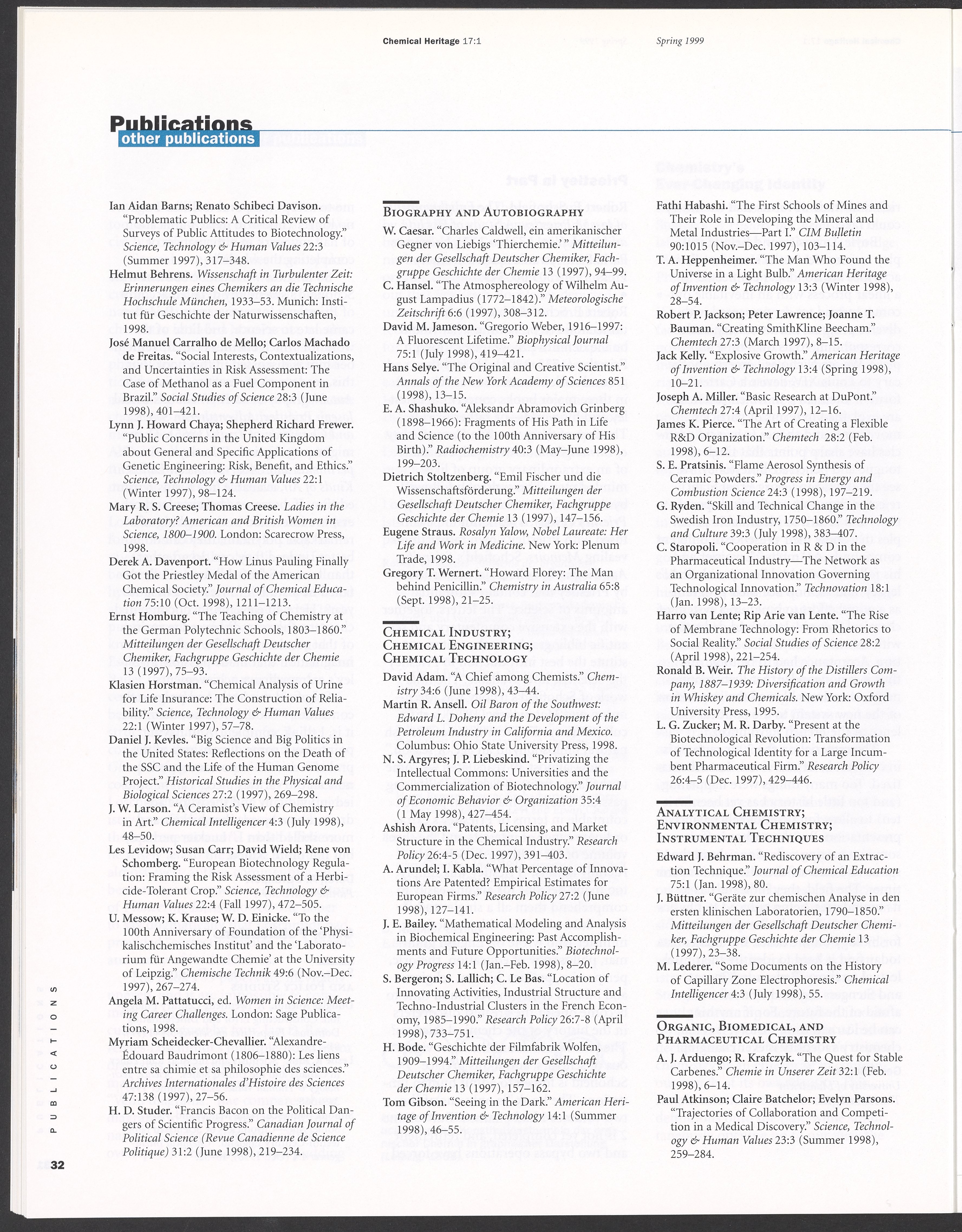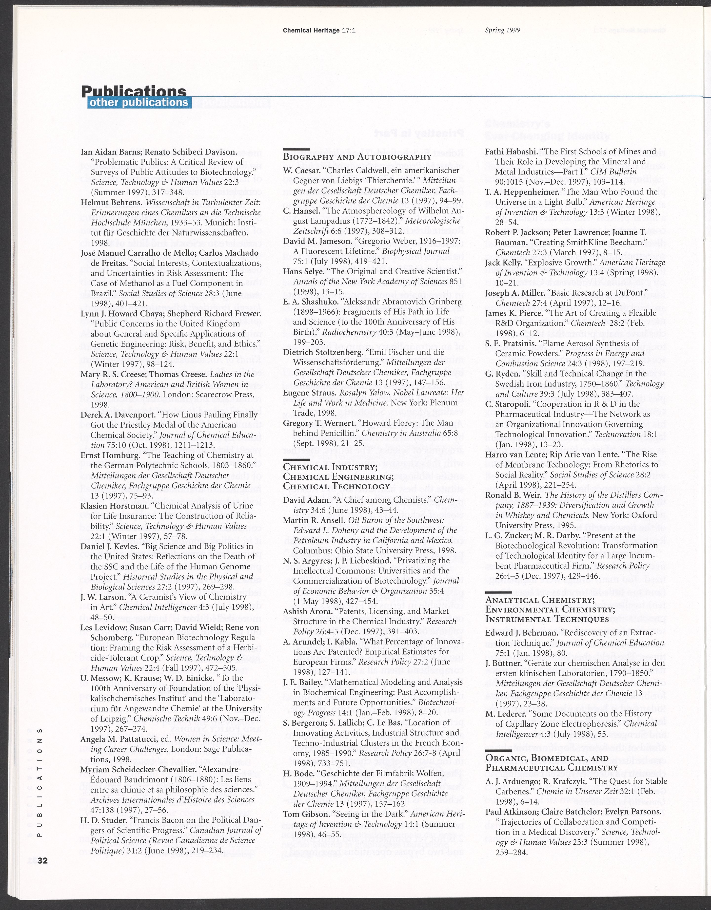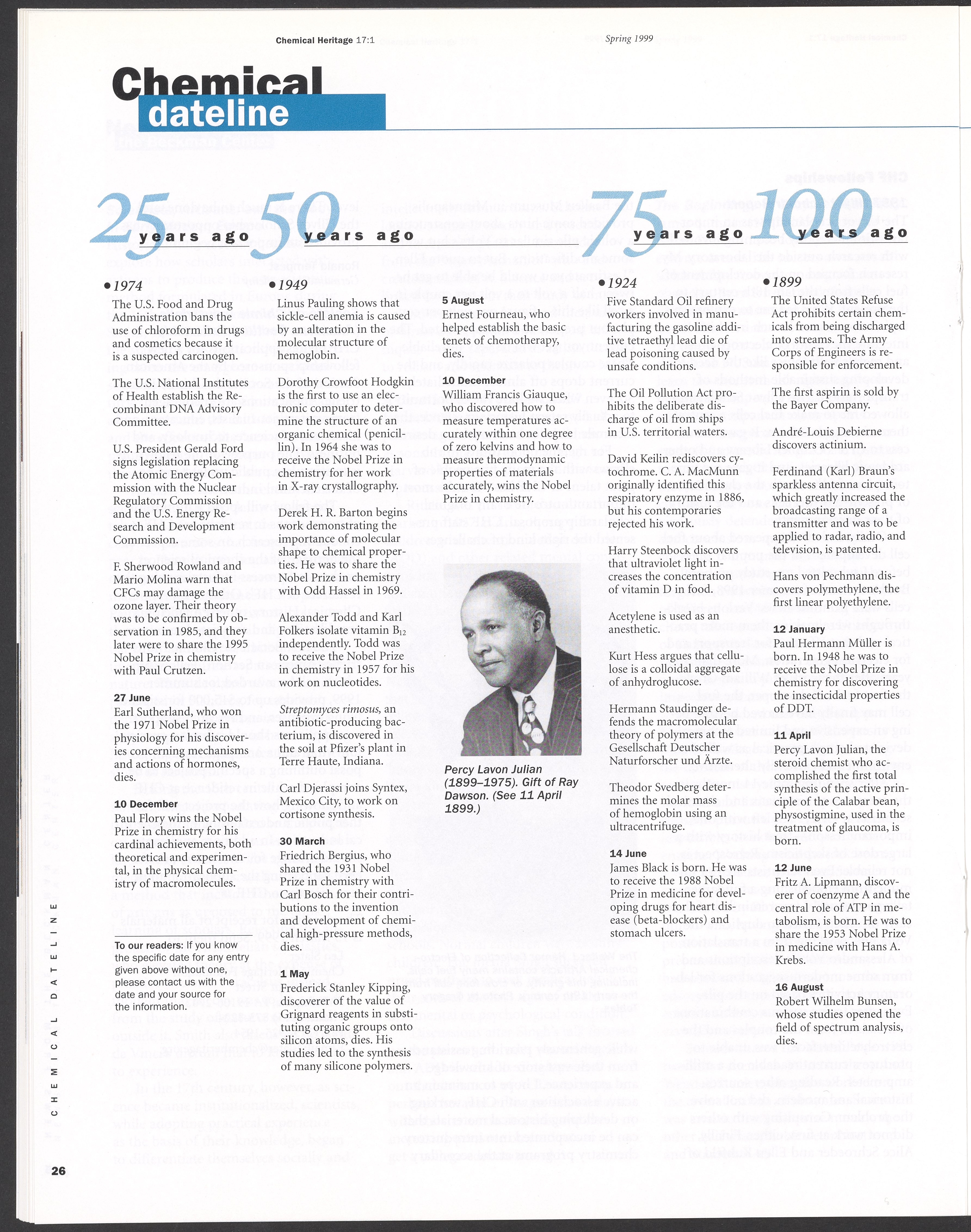 “Chemical Heritage, Volume 17 Number 1.” Philadelphia, Pennsylvania: Chemical Heritage Foundation, 1999. 099C001. Science History Institute. Philadelphia. https://digital.sciencehistory.org/works/9xpzix5.