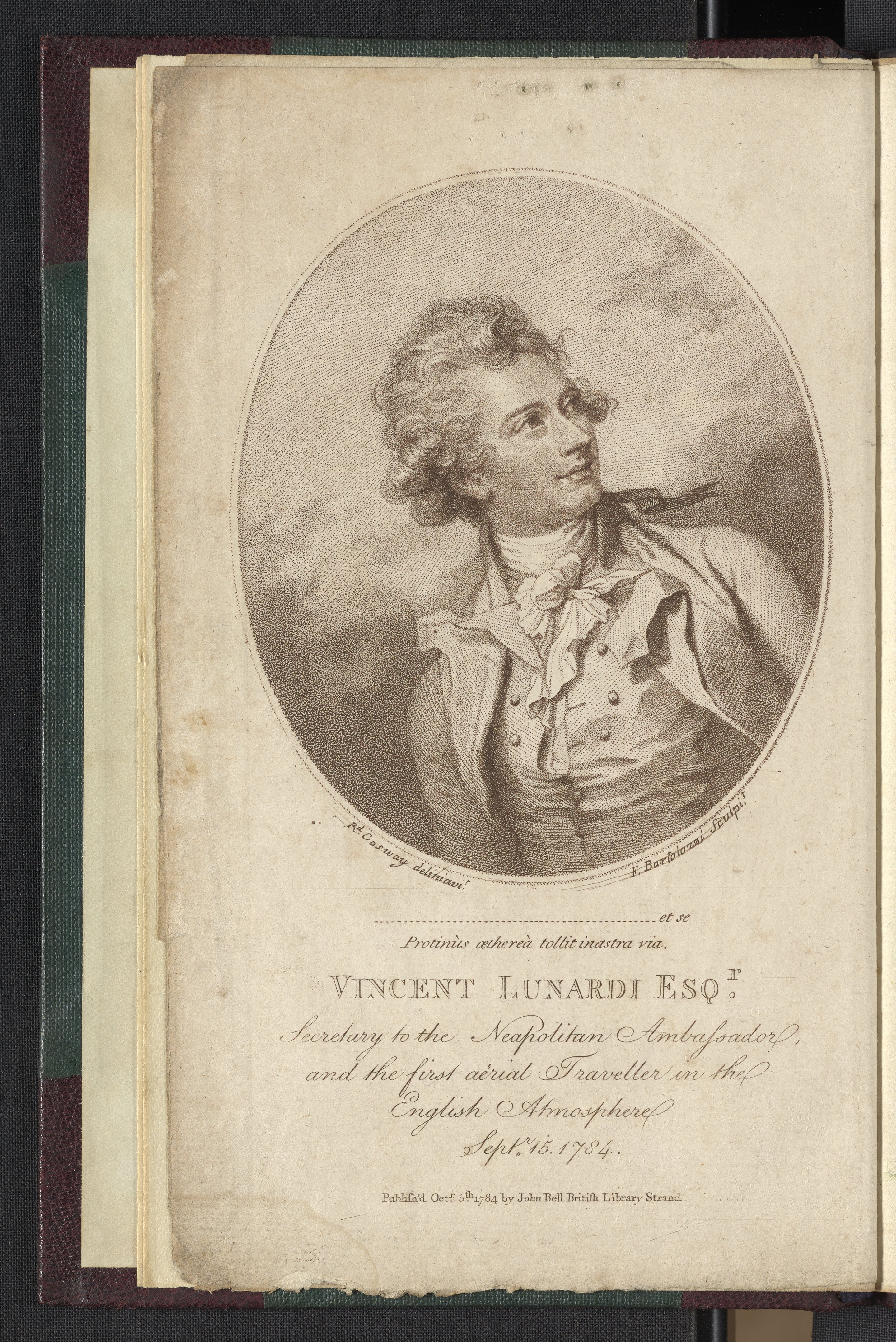 Lunardi, Vincent. “Frontispiece: Portrait of Vincent Lunardi.” In An Account of the First Aërial Voyage in England. London, England: John Bell, 1784. https://digital.sciencehistory.org/works/9z903047k.