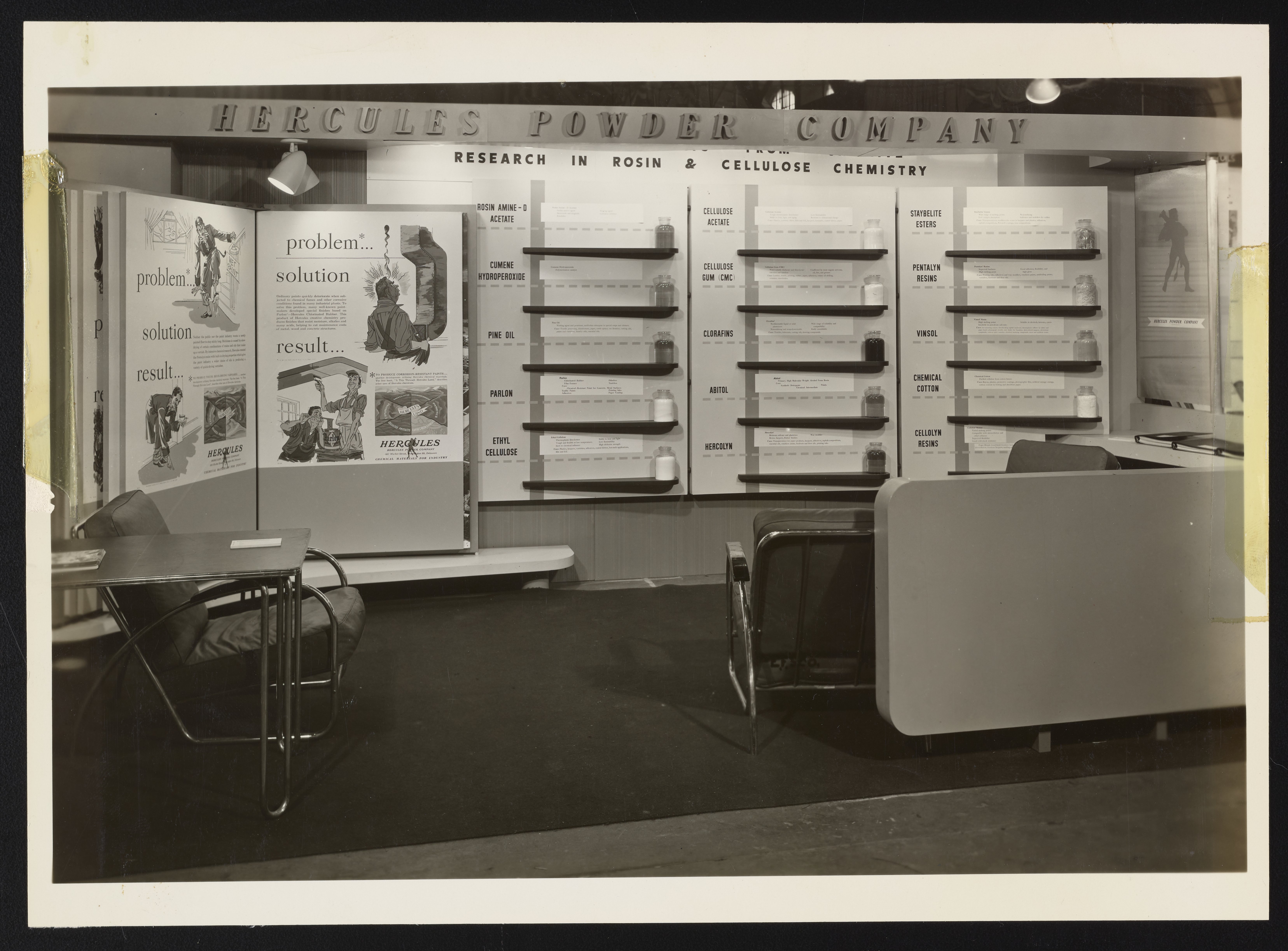 Hercules Incorporated. “Hercules Powder Company Exhibition Display (circa 1950s),” 1950–1959. Photographs from the Records & Ephemera of Hercules Incorporated, Box 27, Folder 20. Science History Institute. Philadelphia. https://digital.sciencehistory.org/works/a79epqh.