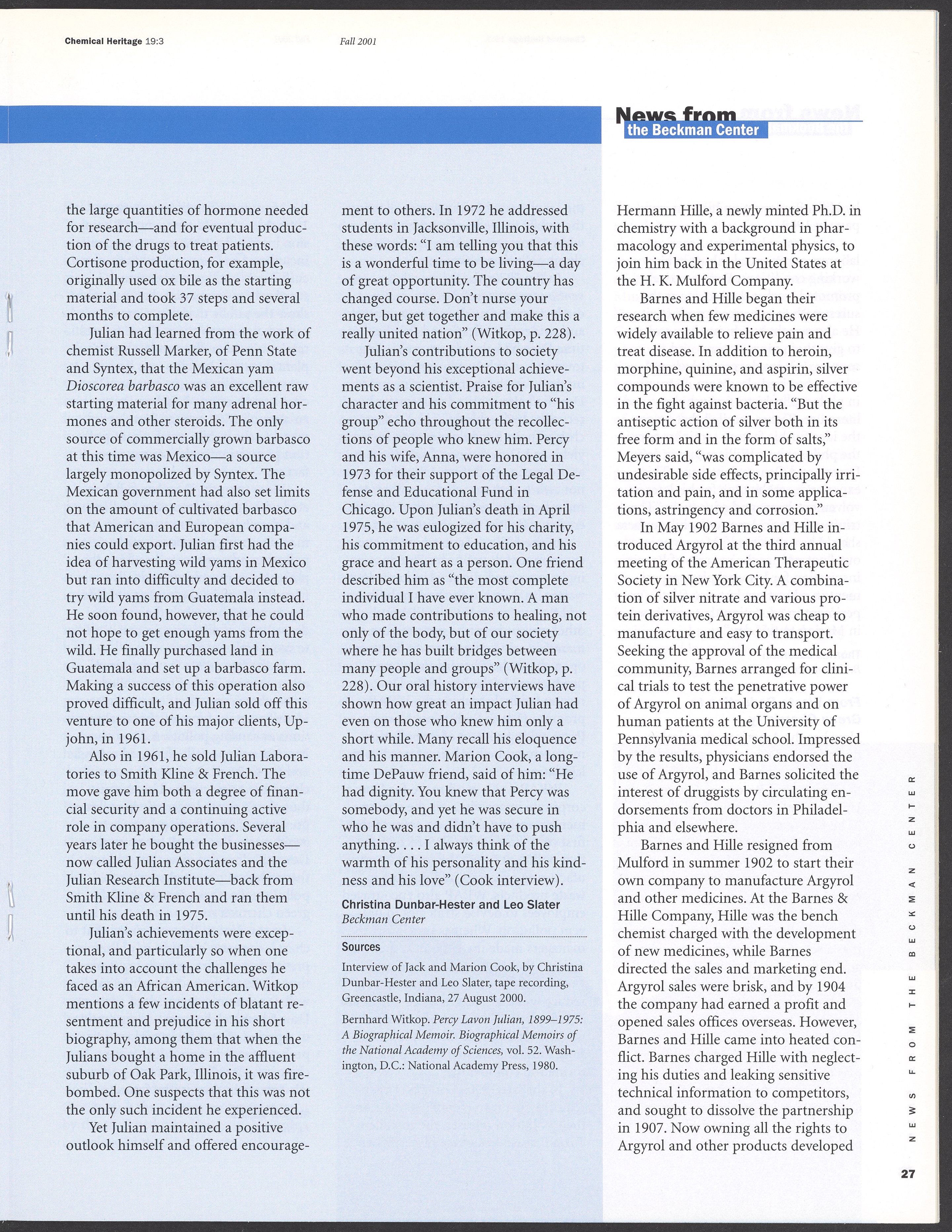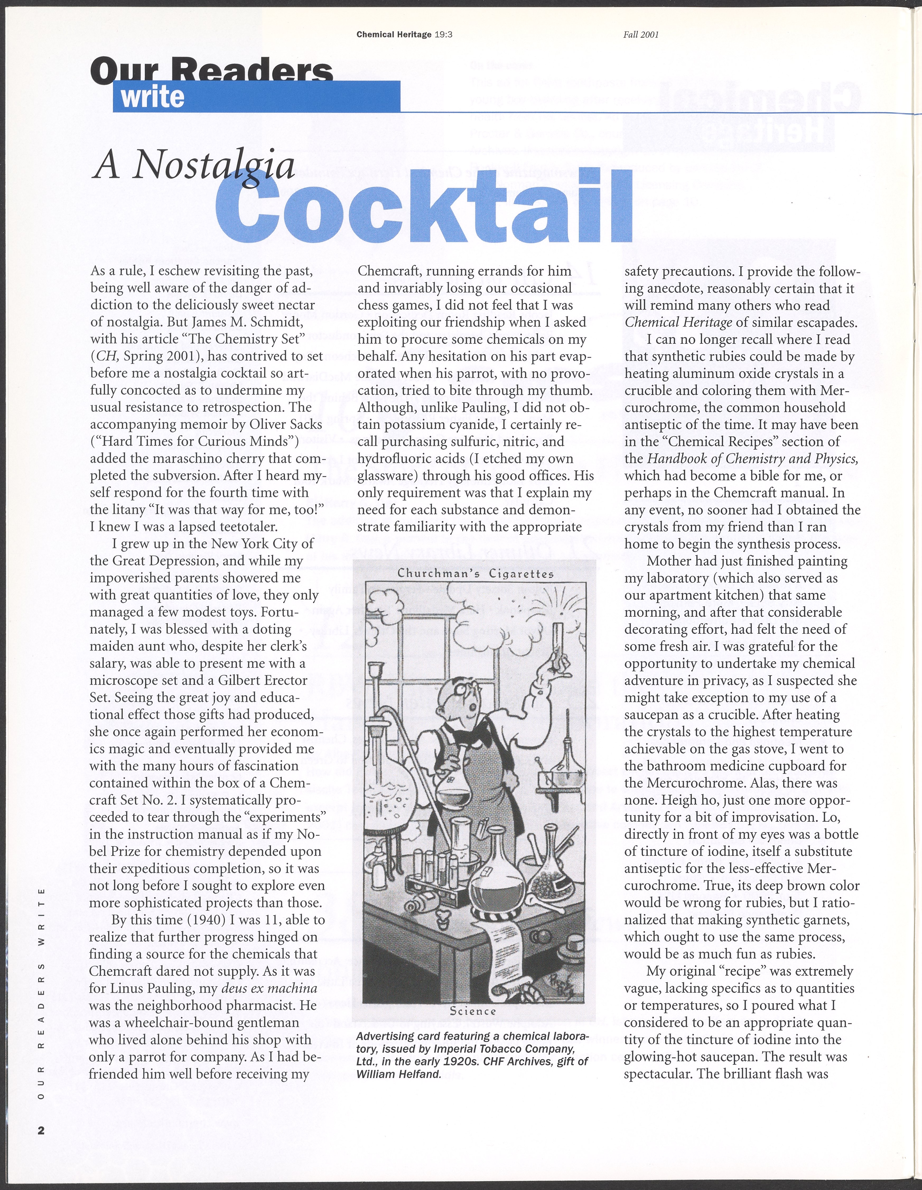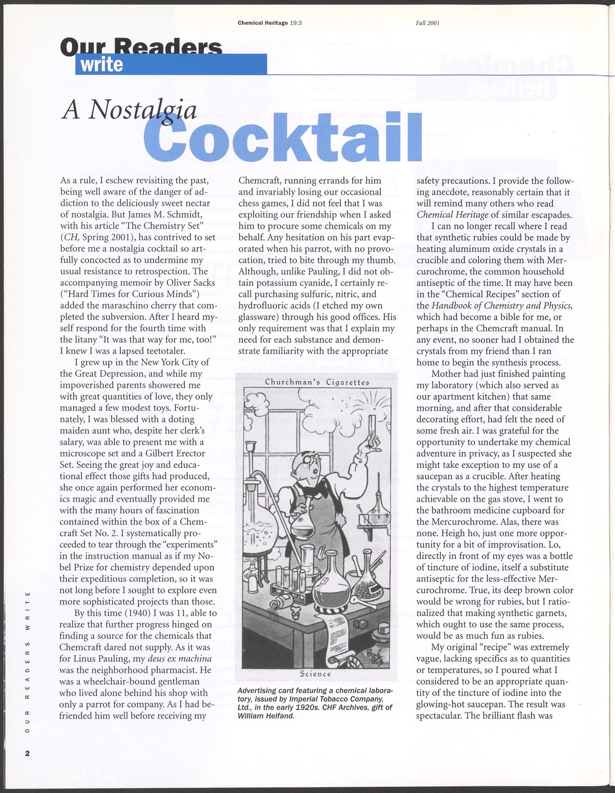 “Chemical Heritage, Volume 19 Number 3.” Philadelphia, Pennsylvania: Chemical Heritage Foundation, 2001. 099C001. Science History Institute. Philadelphia. https://digital.sciencehistory.org/works/ag18cip.