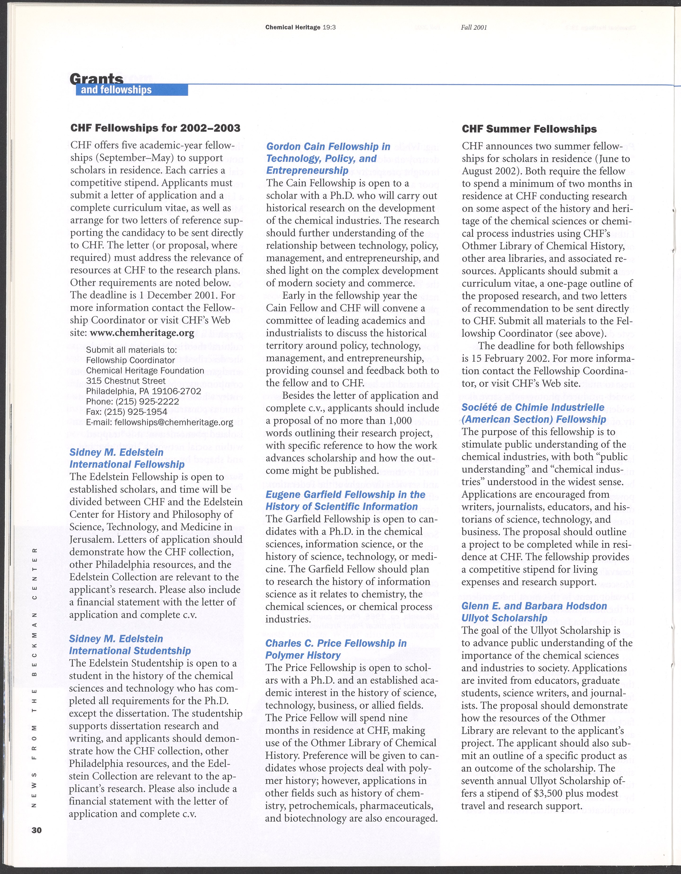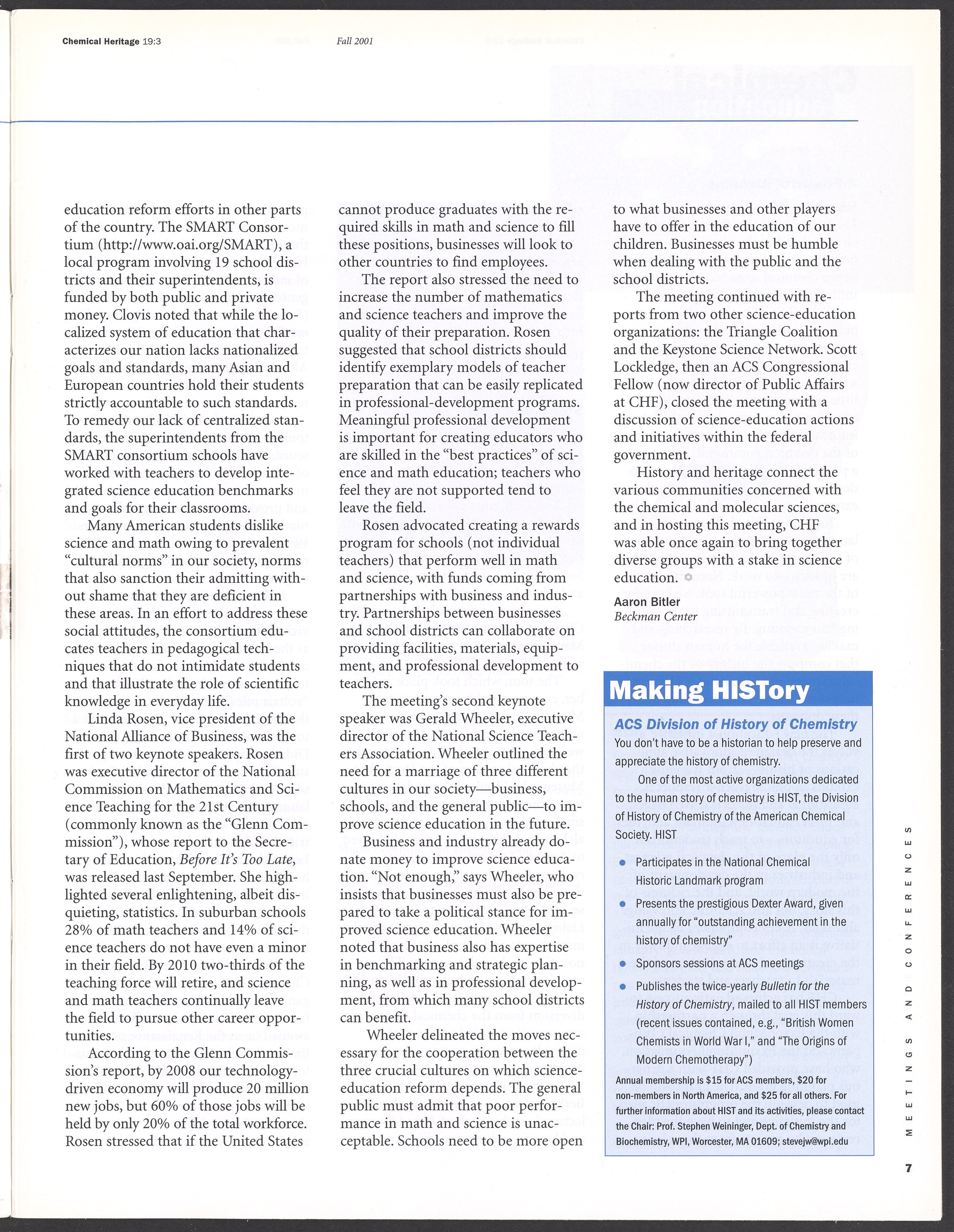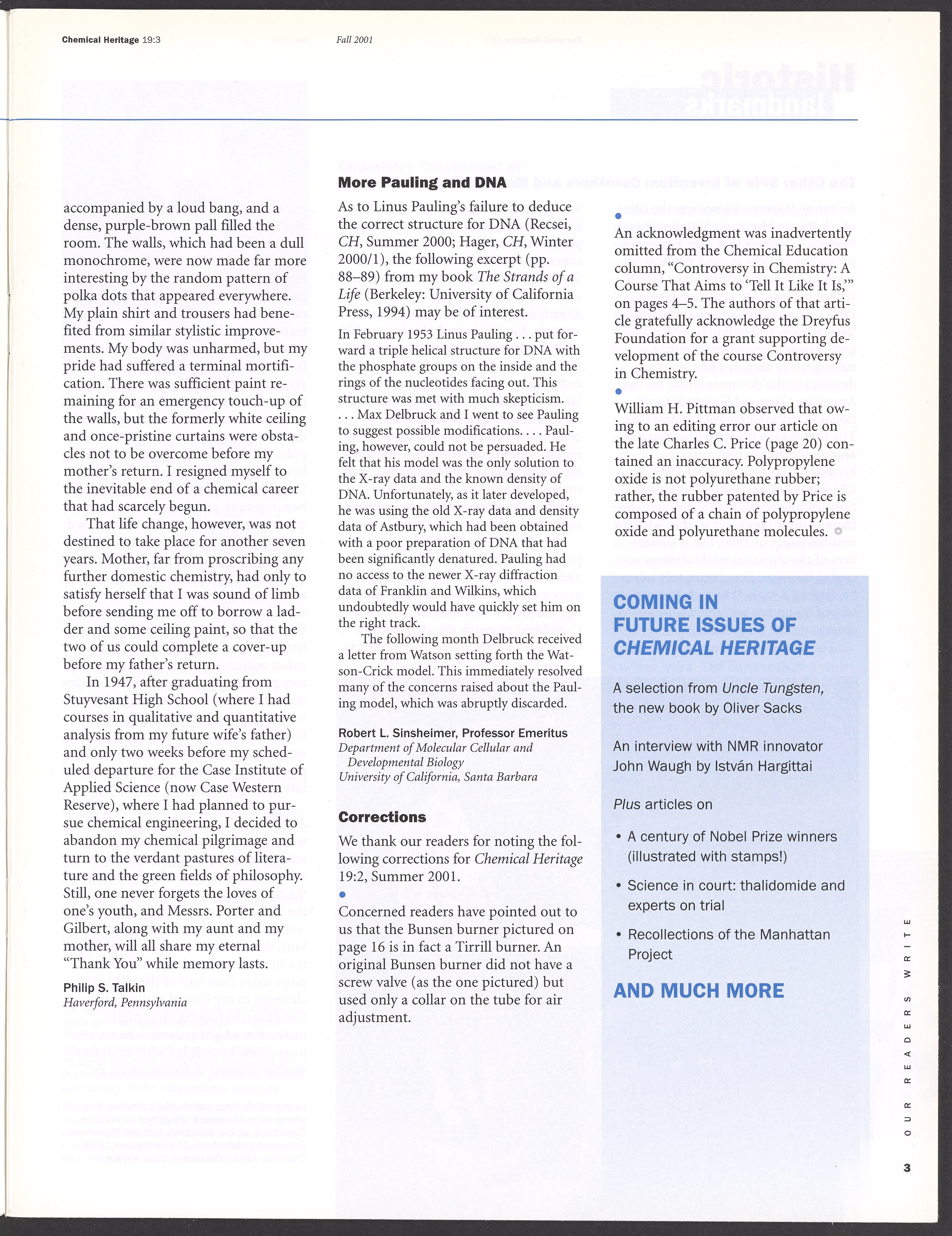 Chemical Heritage, Volume 19 Number 3