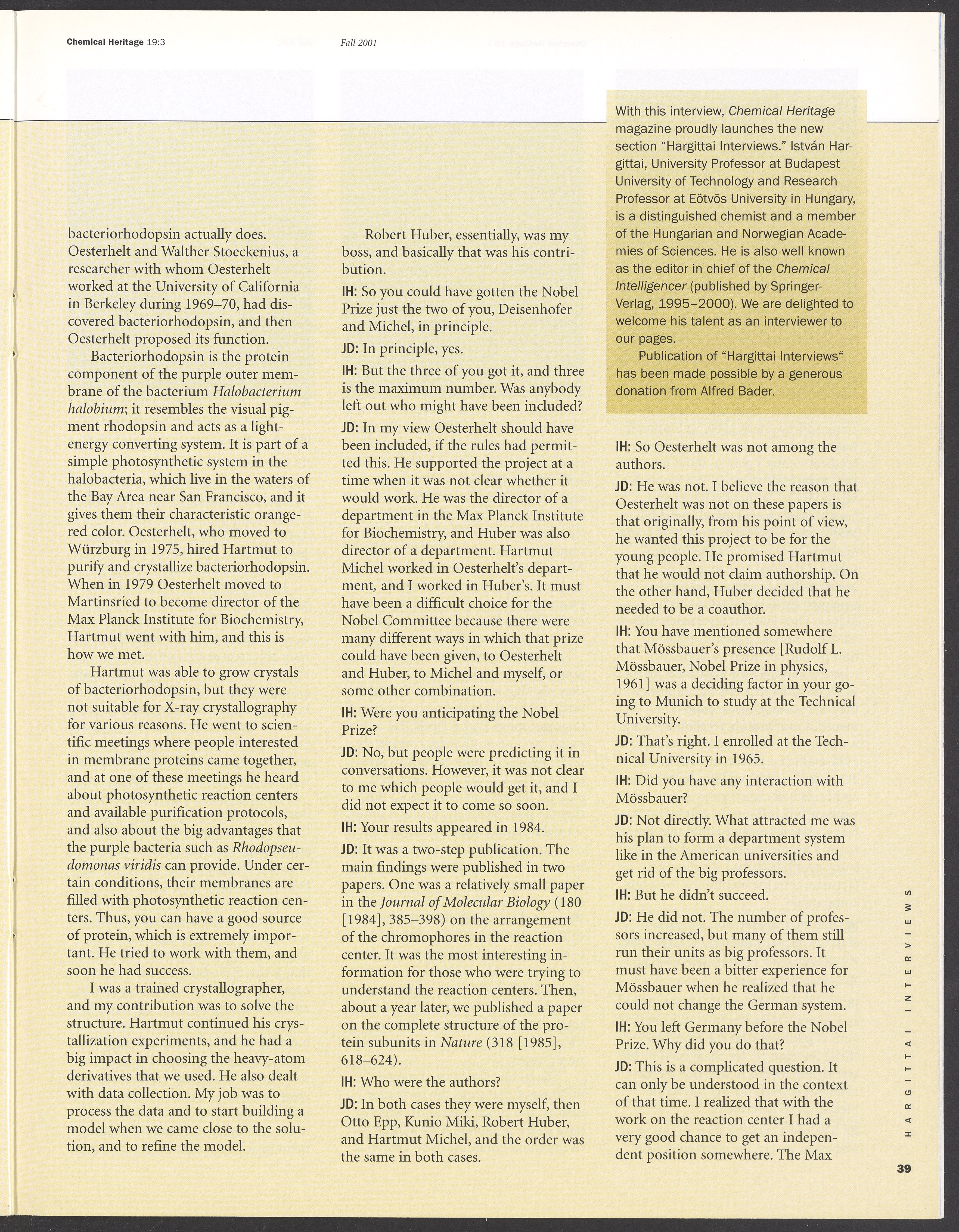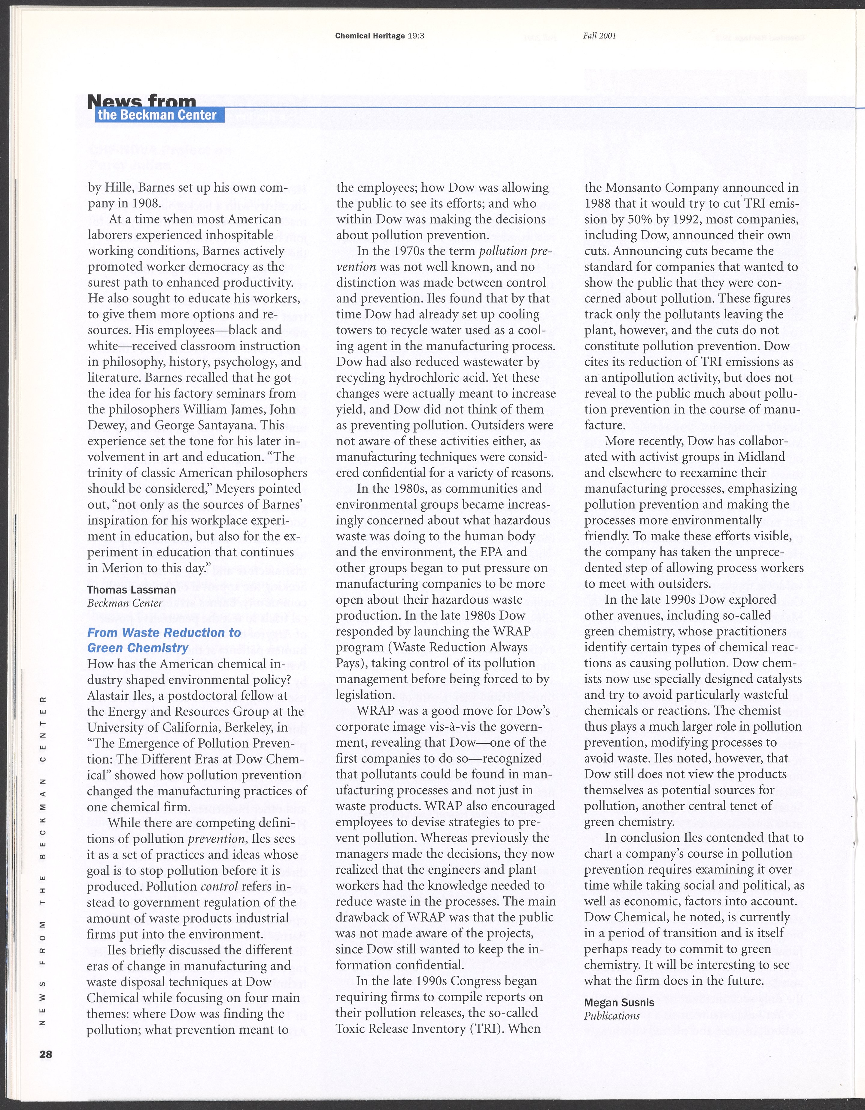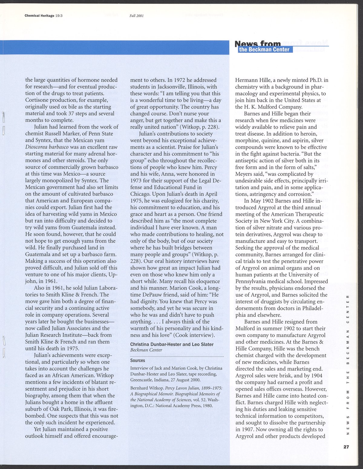 Chemical Heritage, Volume 19 Number 3