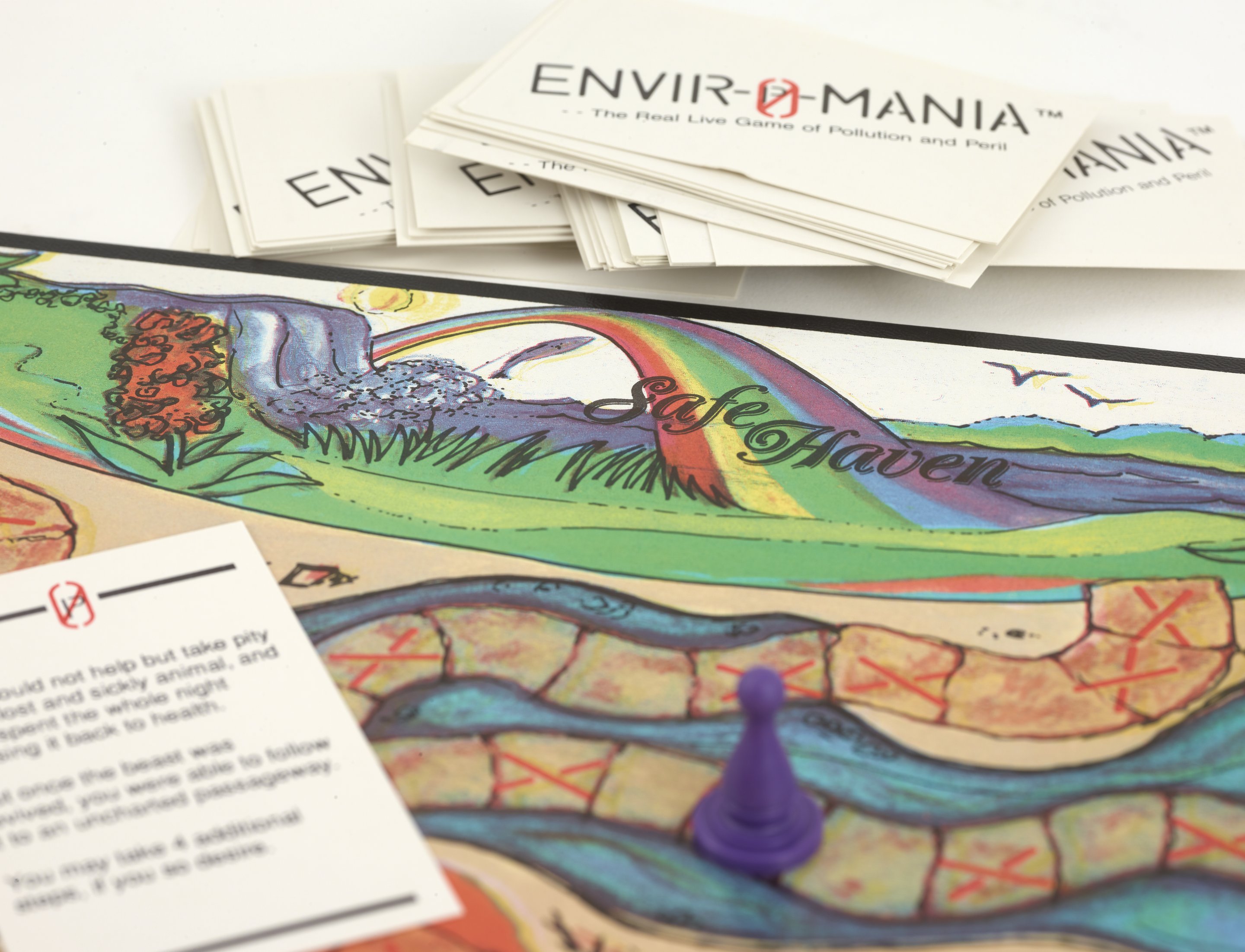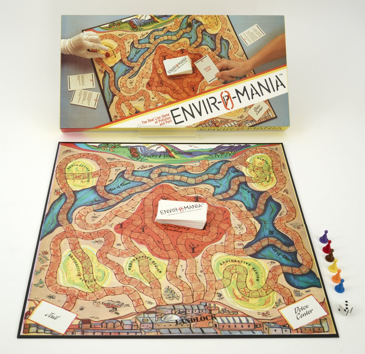 Small JPG1200 x 1163px — 296 KBLarge JPG2880 x 2790px — 1.2 MBFull-sized JPG7097 x 6875px — 5.6 MBOriginal fileTIFF — 7097 x 6875px — 140 MBA rectangular game box decorated by an image of two people playing the enclosed game. The box contains 1 instruction sheet, 1 game board, 6 white cloth gloves, 6 plastic player pieces, 1 plastic die, and 1 deck of cards. This low-print independently published game requires players to wear pairs of white gloves. Players roll die to move through a perilous toxic wasteland to reach the pollution-free "Safe Haven."