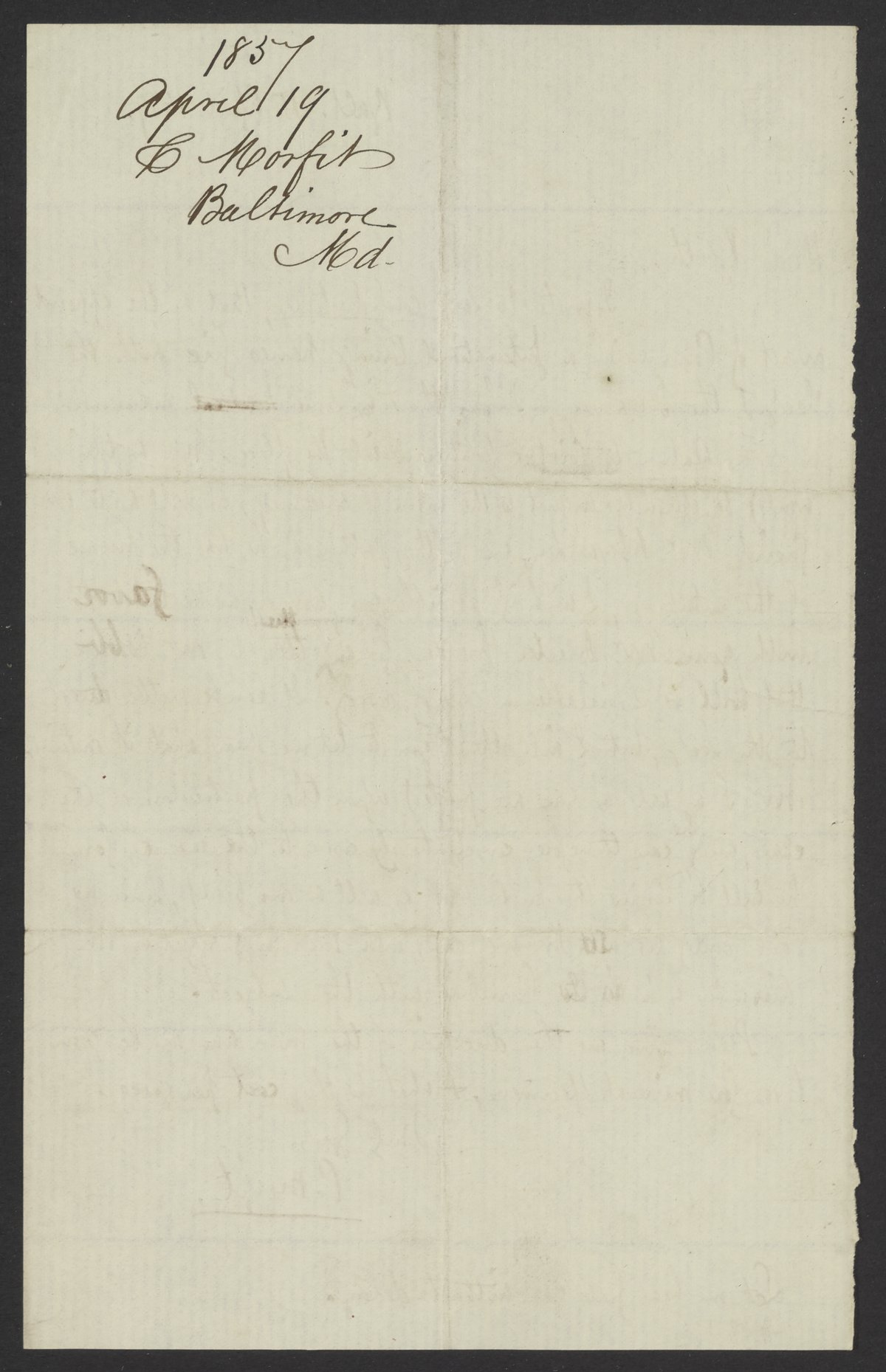 Morfit, Campbell. “Letter from Campbell Morfit to James Curtis Booth, April 11, 1859,” April 11, 1859. Papers of James Curtis Booth, Box 1, Folder 10. Science History Institute. Philadelphia. https://digital.sciencehistory.org/works/ajqls2p.
