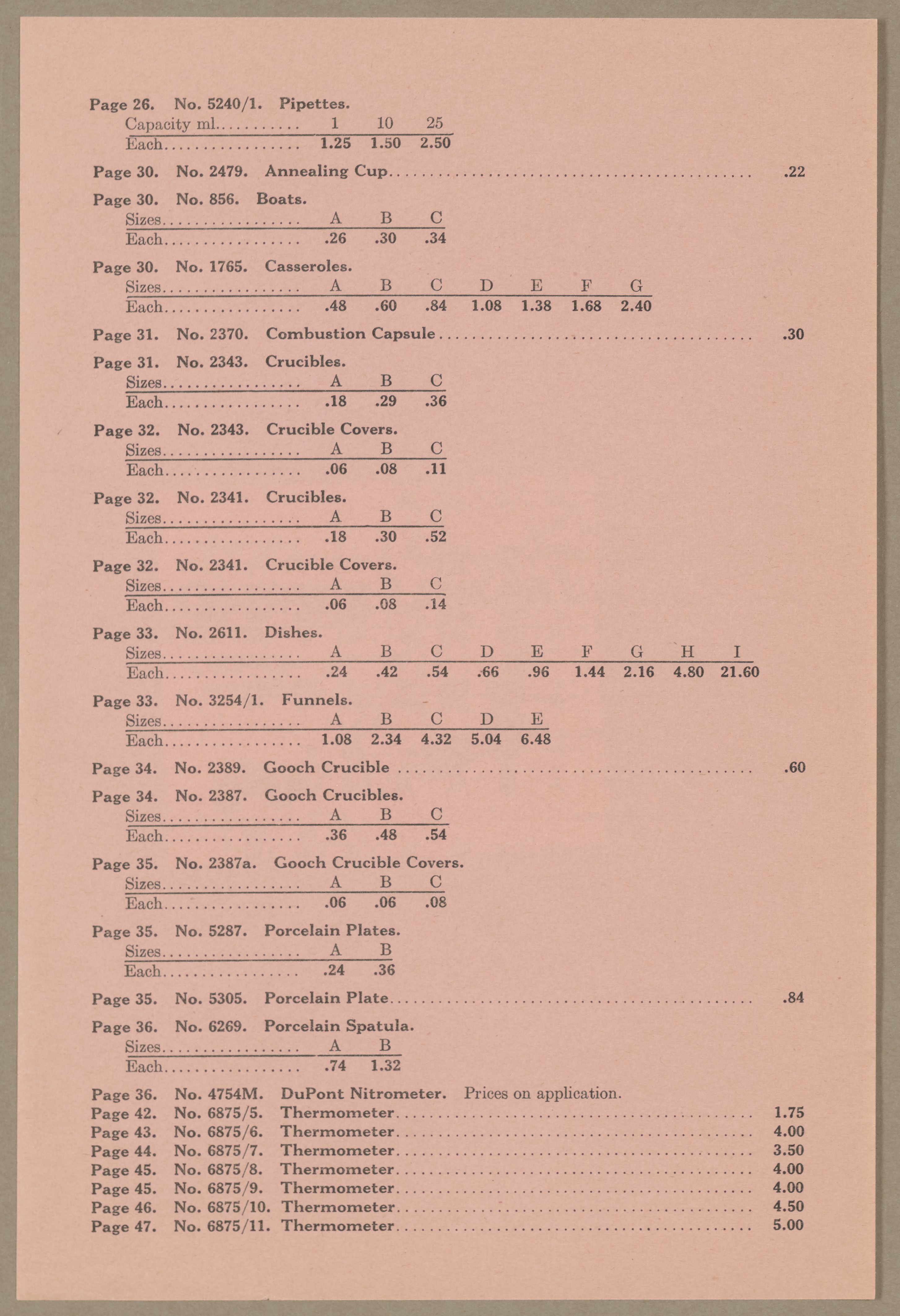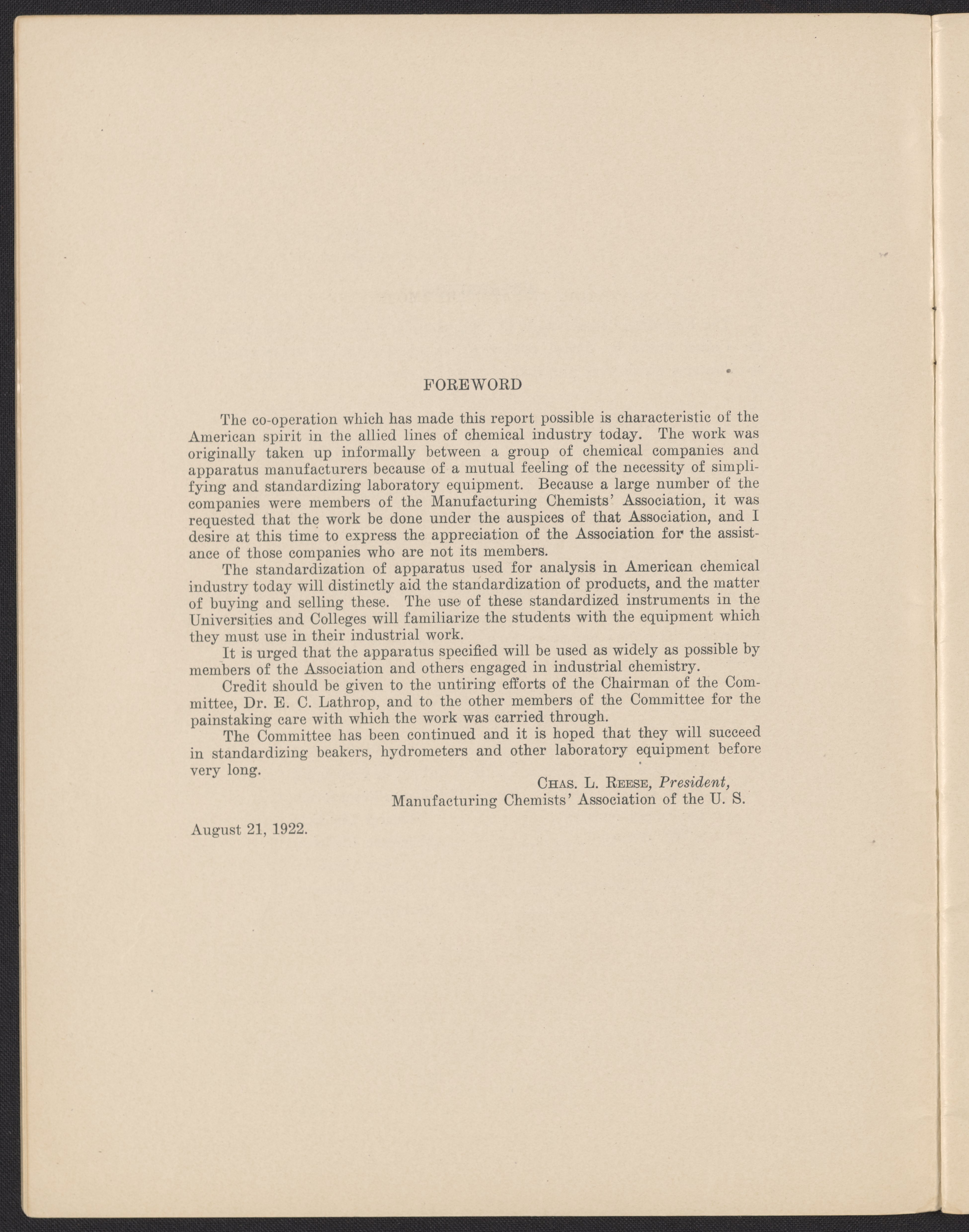 “Standard Laboratory Apparatus Adopted by the Manufacturing Chemists Association of the United States Part 1.” New York, New York: Eimer & Amend, 1922. Q184 .E56 1922. Science History Institute. Philadelphia. https://digital.sciencehistory.org/works/altvkck.