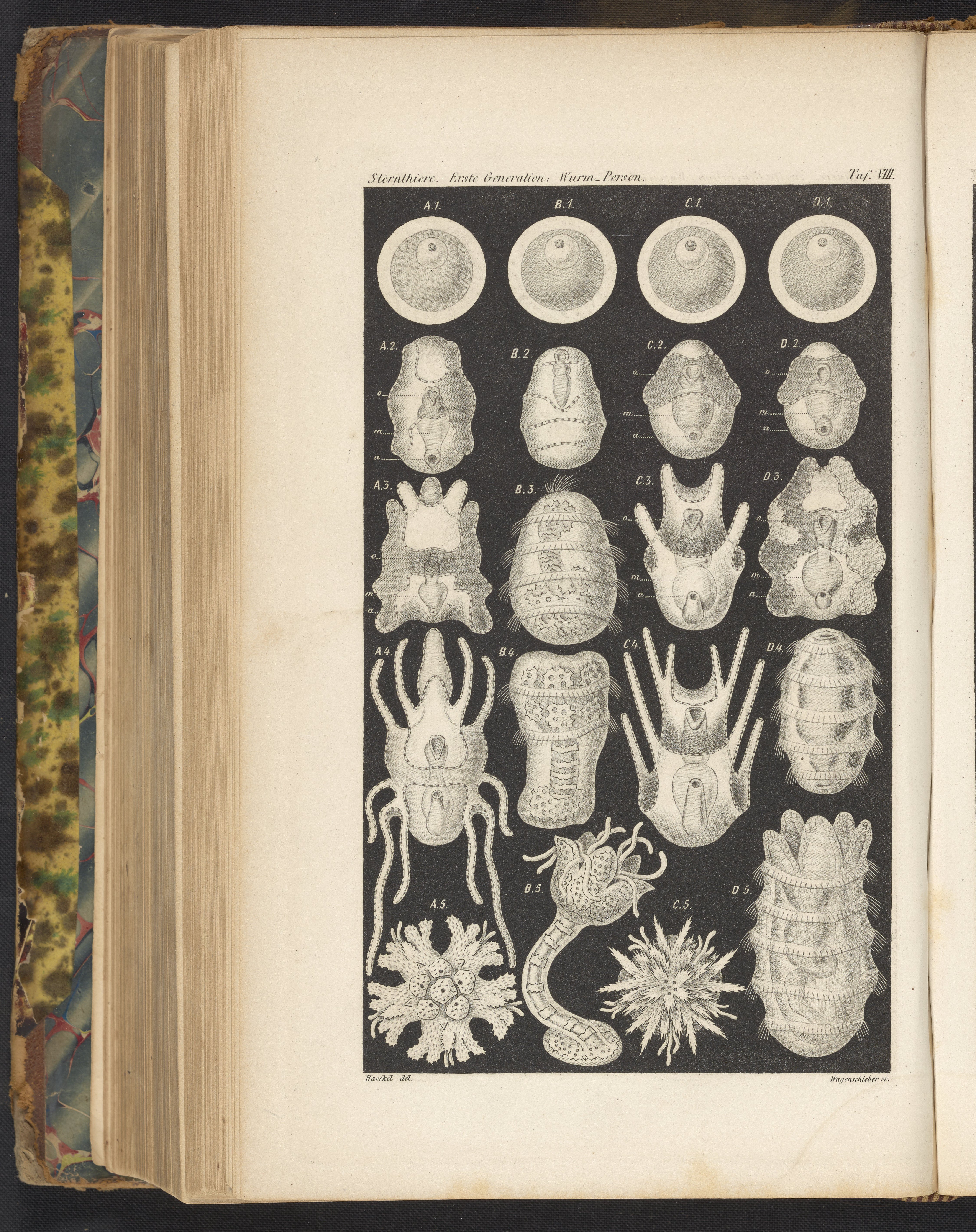 Haeckel, Ernst. “Plate VIII: Invertebrate Development.” Natürliche Schöpfungsgeschichte: Gemeinverständliche Wissenschaftliche Vorträge Über Die Entwickelungslehre. Berlin, Germany: G. Reimer, 1872. Science History Institute. Philadelphia. https://digital.sciencehistory.org/works/anyl20z.