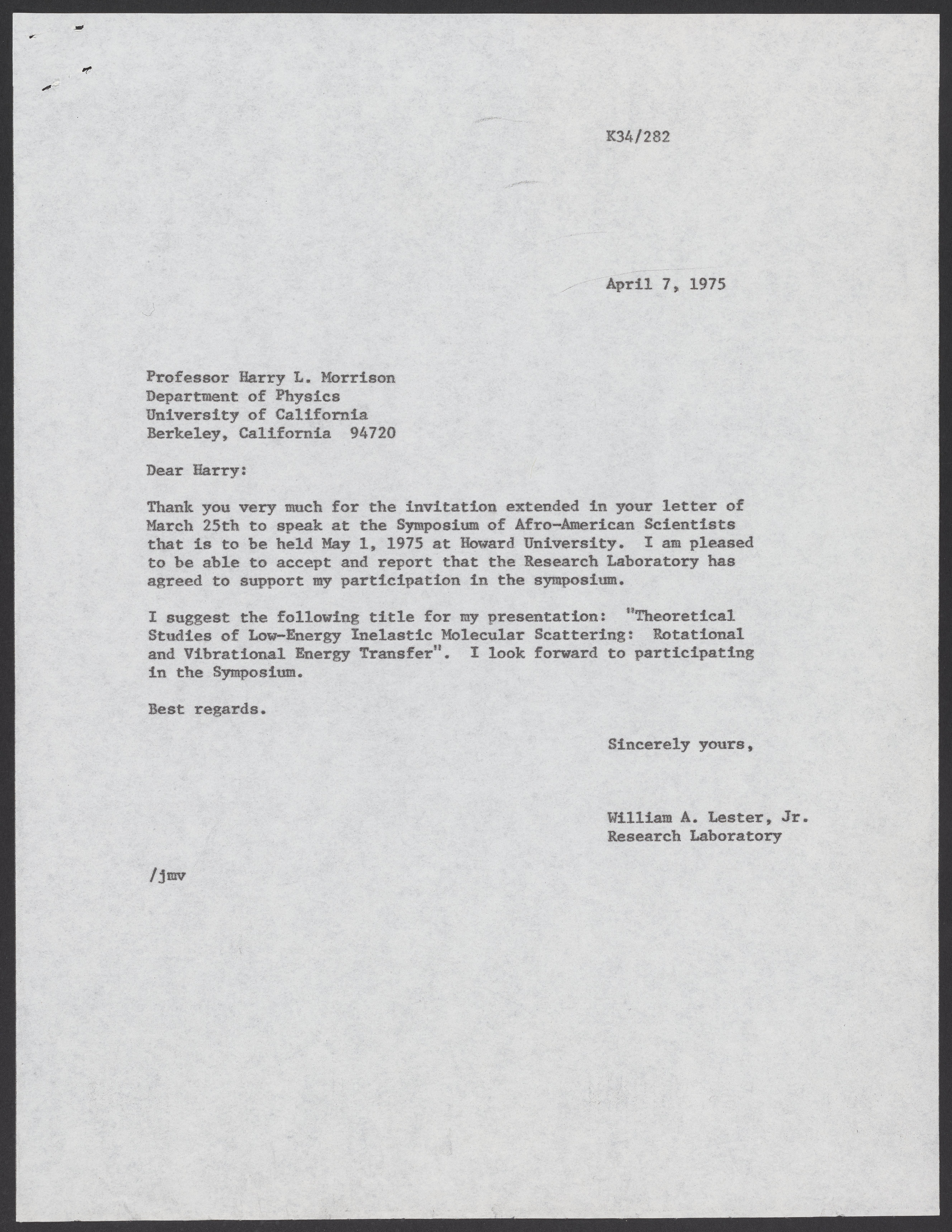 Letter from William A. Lester, Jr. to Harry L. Morrison, April 7, 1975