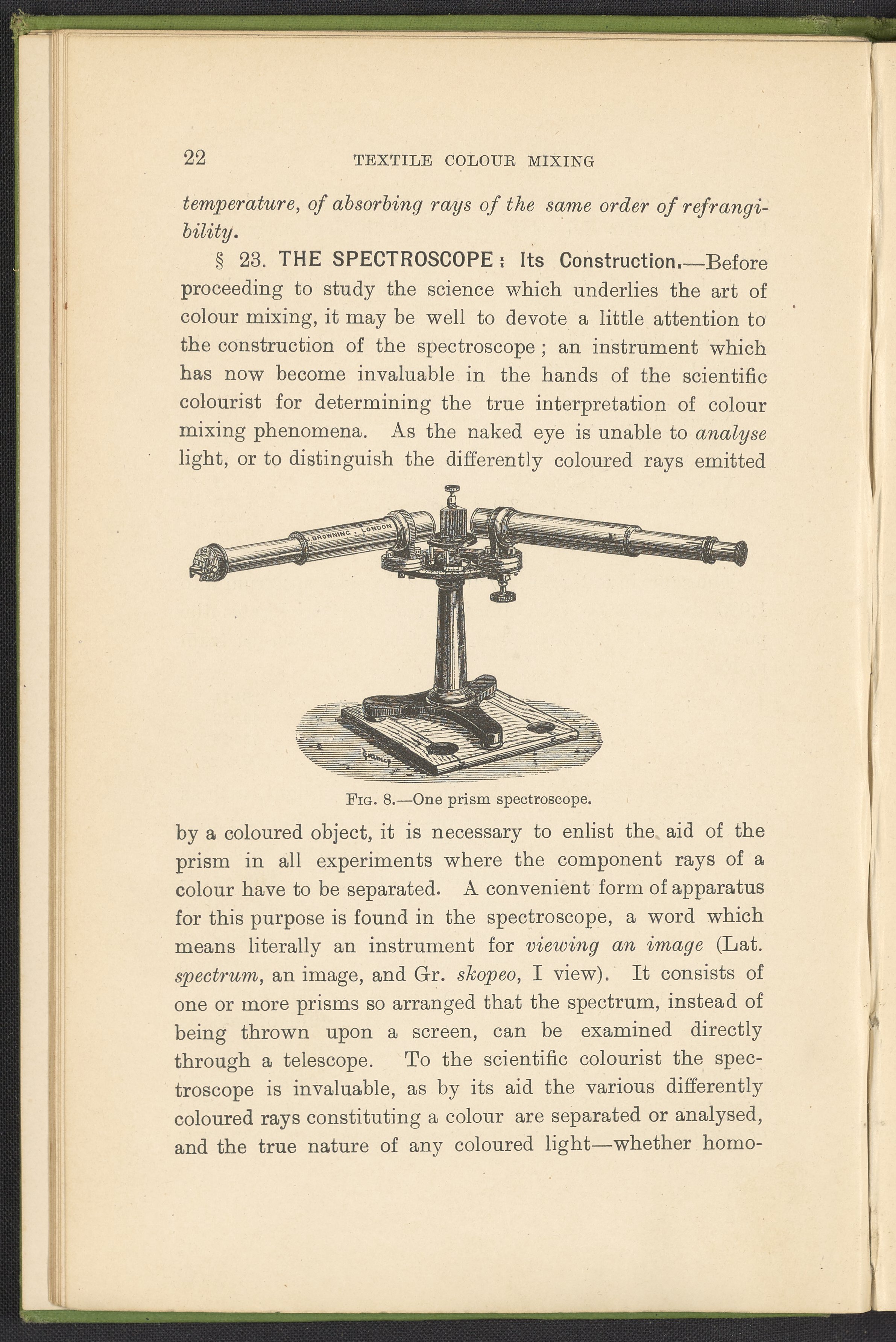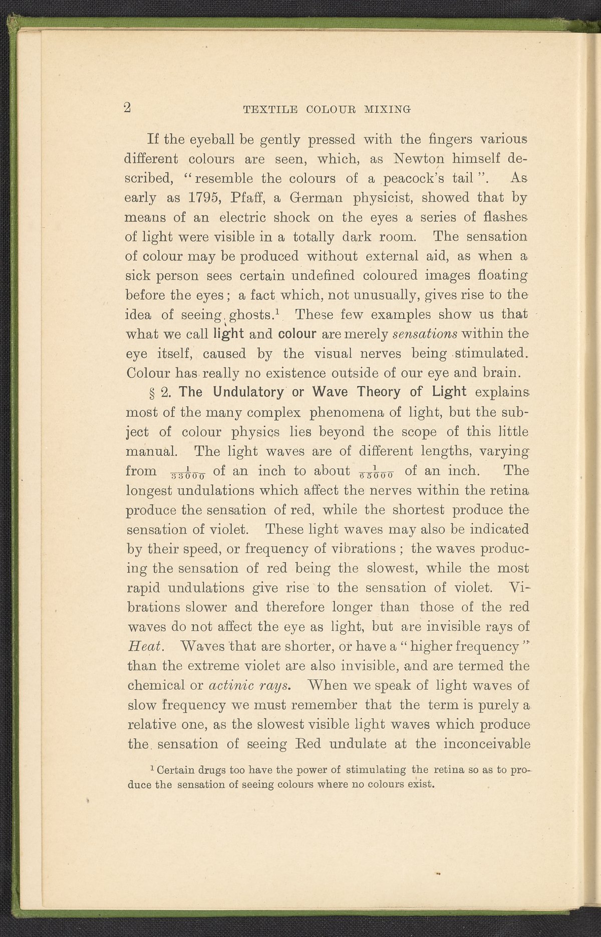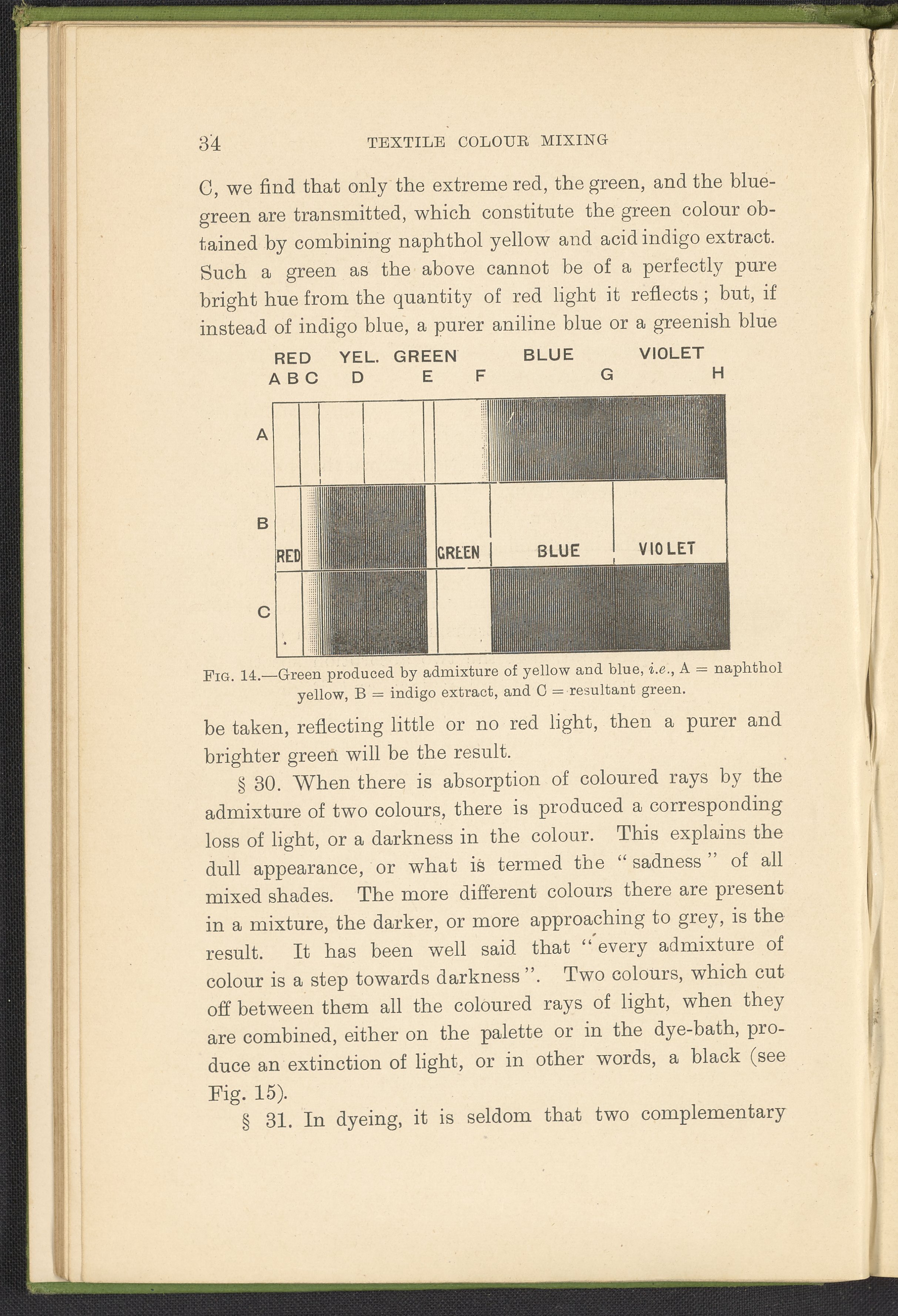 Small JPG1200 x 1784px — 330 KBFull-sized JPG2446 x 3636px — 1.2 MBOriginal fileTIFF — 2446 x 3636px — 25.5 MBA second revised edition of a text on color science. According to the author in his preface, this work deals “in a practical manner with the science of mixing ordinary colours and dyes… thus made applicable to the common everyday duties of the dyer and the colourist.” The work was written to complement the coursework of students enrolled in Textile Colleges as well as to provide technical context for color professionals. Contents include absorption spectroscopy, light waves and analysis, color mixing, primary colors, secondary colors, and tertiary shades. Includes five colored plates, four plates with dye samples, and 40 figures and illustrations. Work is digitized in its entirety.