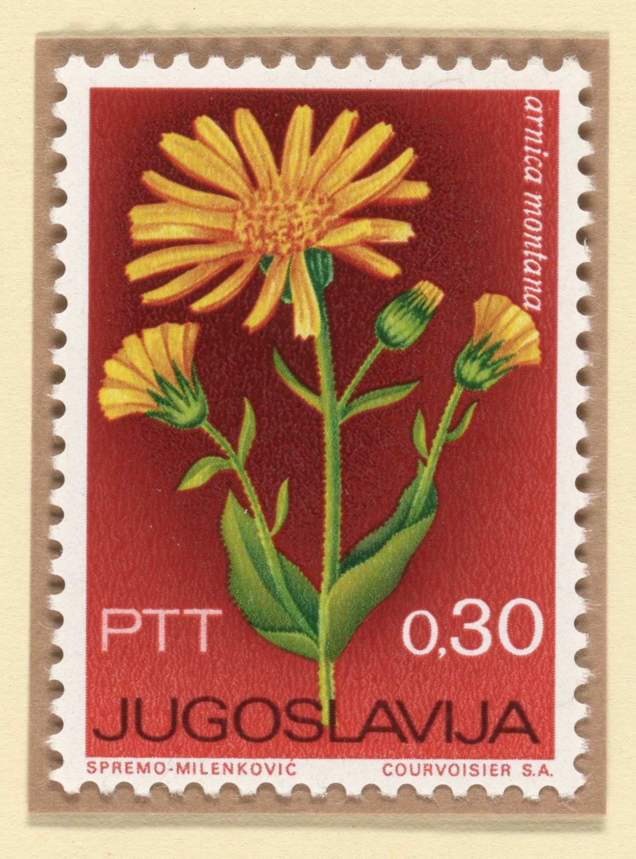 Mountain arnica (Arnica montana) postage stamp, Yugoslavian