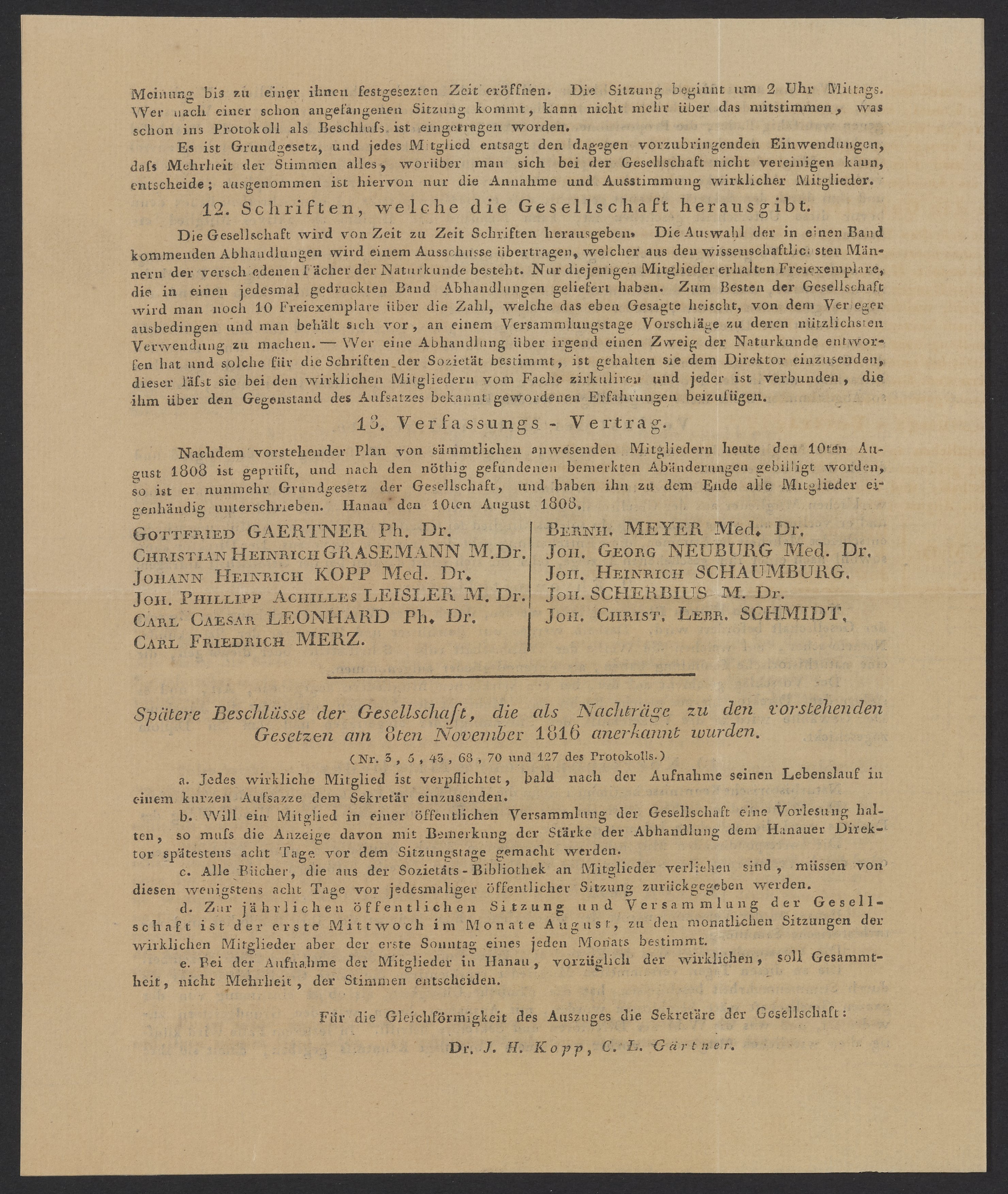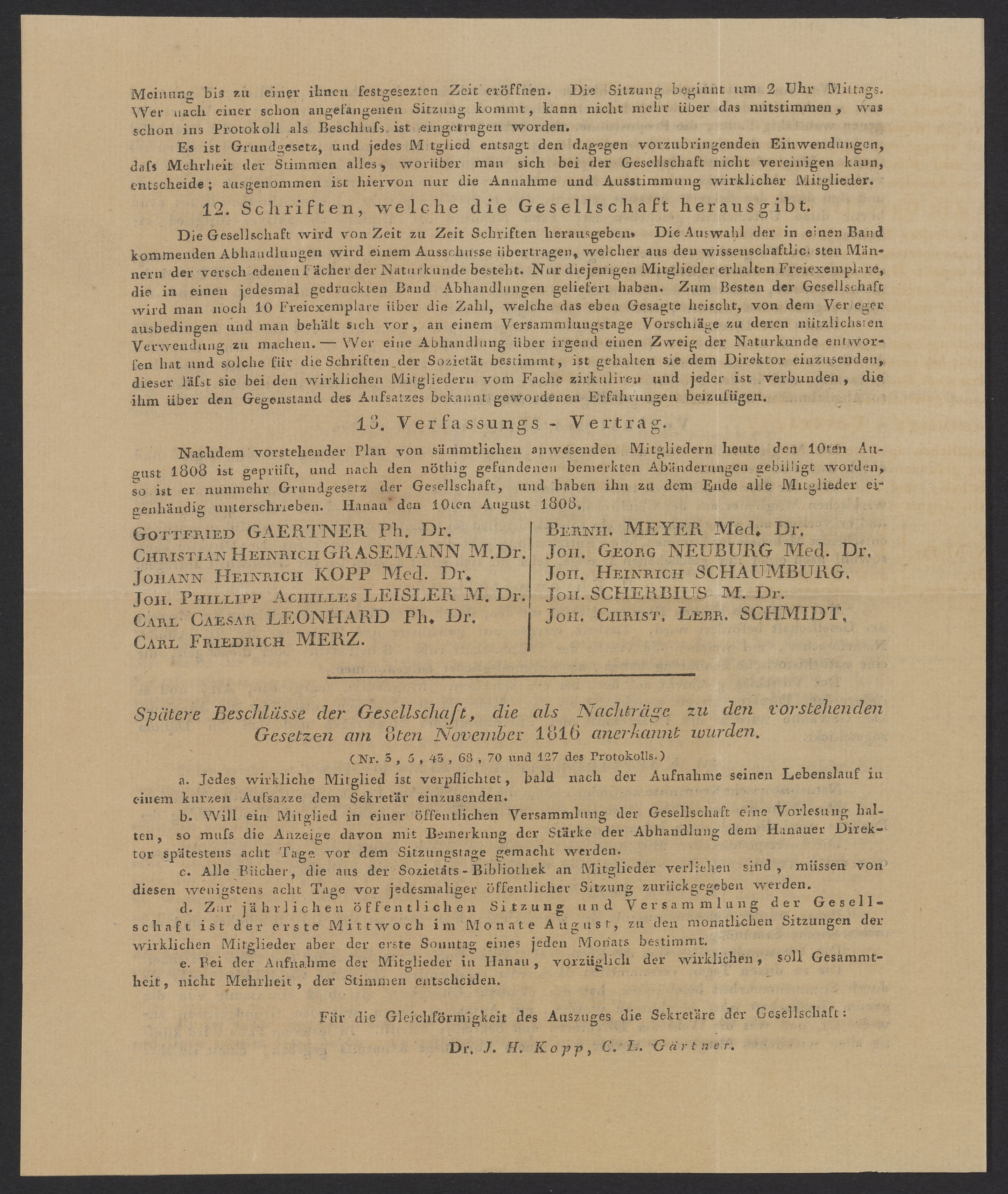 Small JPG1200 x 1427px — 183 KBLarge JPG2880 x 3425px — 1.1 MBFull-sized JPG3571 x 4247px — 1.6 MBOriginal fileTIFF — 3571 x 4247px — 43.5 MBJames Curtis Booth (1810-1888) is elected a member of the Wetterauische Gesellschaft für der Naturkunde zu Hanau, one of the oldest natural history societies in Germany and Hesse's oldest registered association. Includes a typewritten letter from the secretary of the Society, a handwritten letter, and a typed outline of the society's constitution and laws.