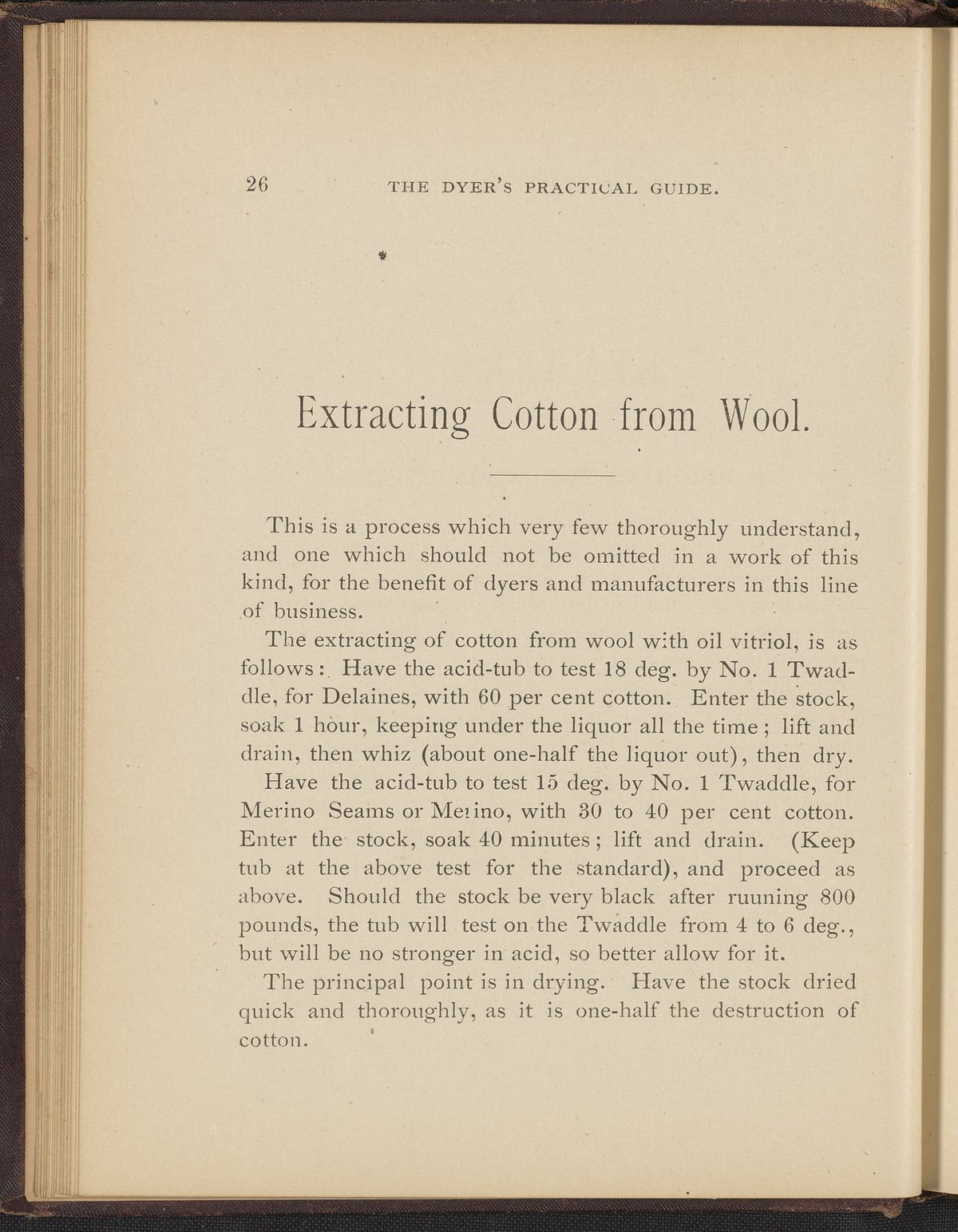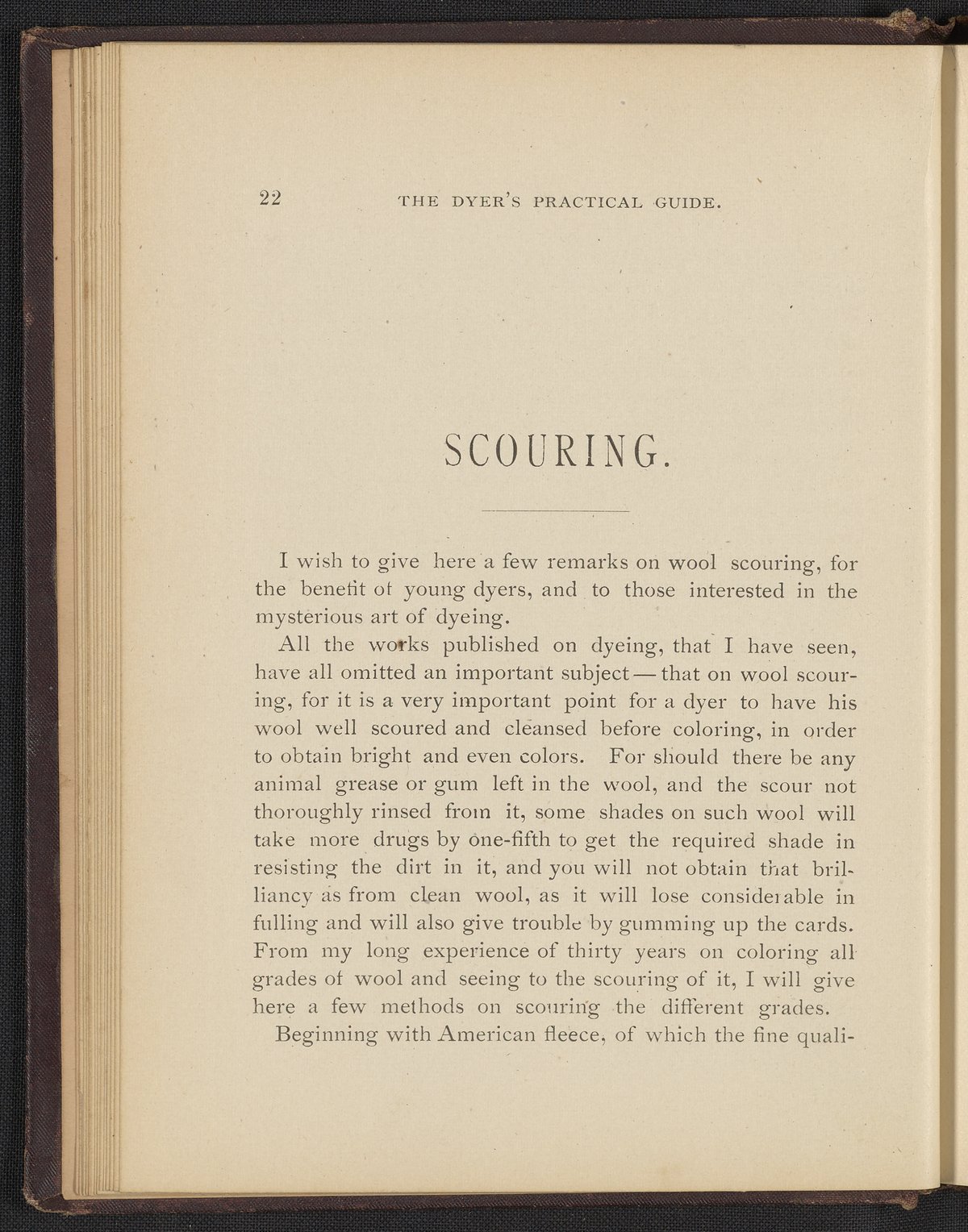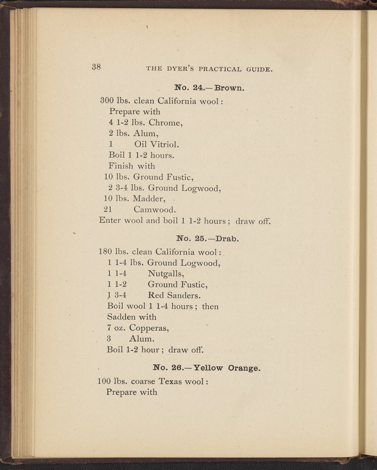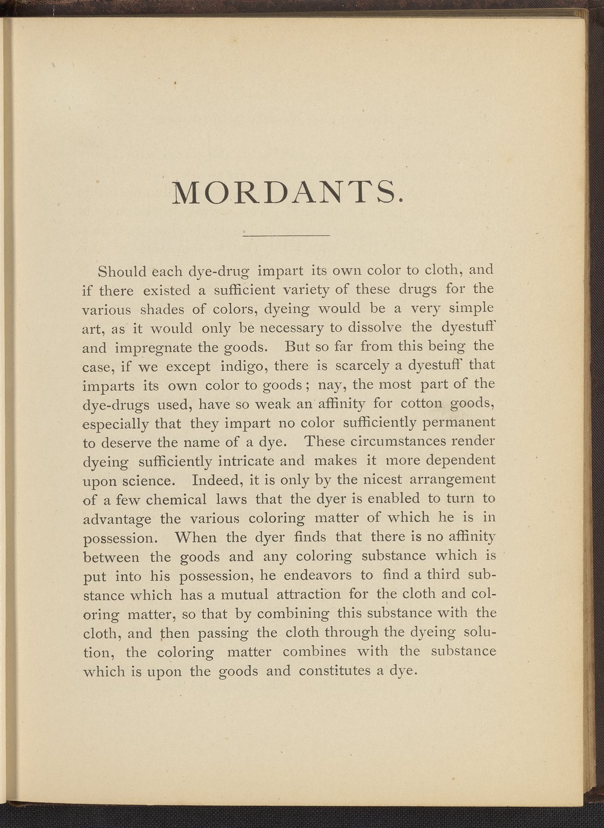 Small JPG1200 x 1496px — 493 KBFull-sized JPG2356 x 2937px — 1.7 MBOriginal fileTIFF — 2356 x 2937px — 19.8 MBTreatise containing "practical knowledge" on dyeing for manufacturers, with sections on mordants, chemicals used in dyeing, wool scouring, extracting cotton from wool, and 253 dye recipes for wool, cotton, and shoddy (recycled wool).