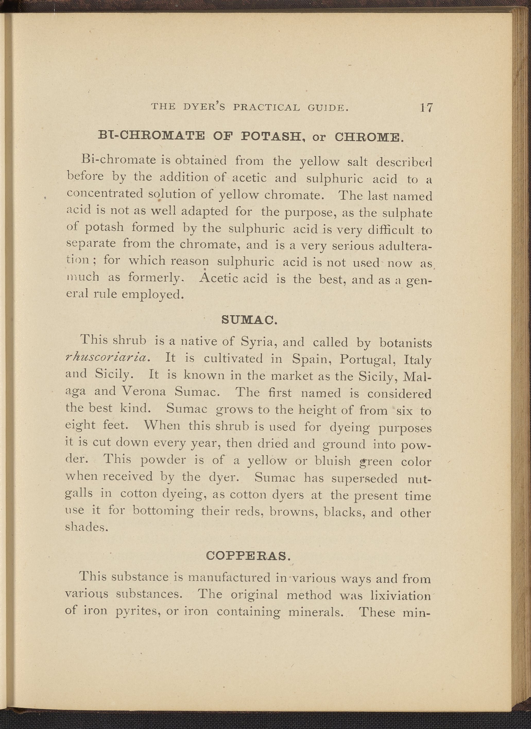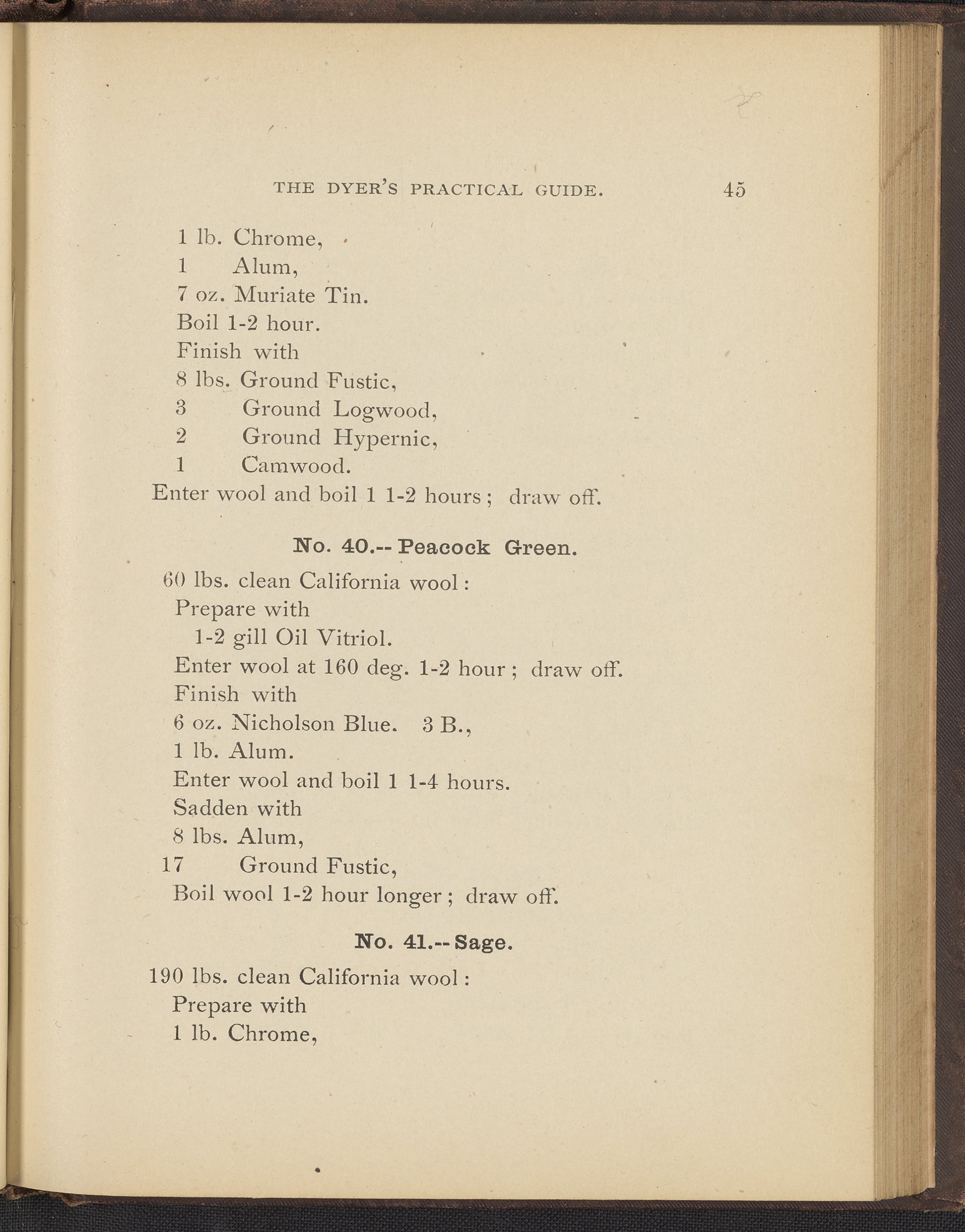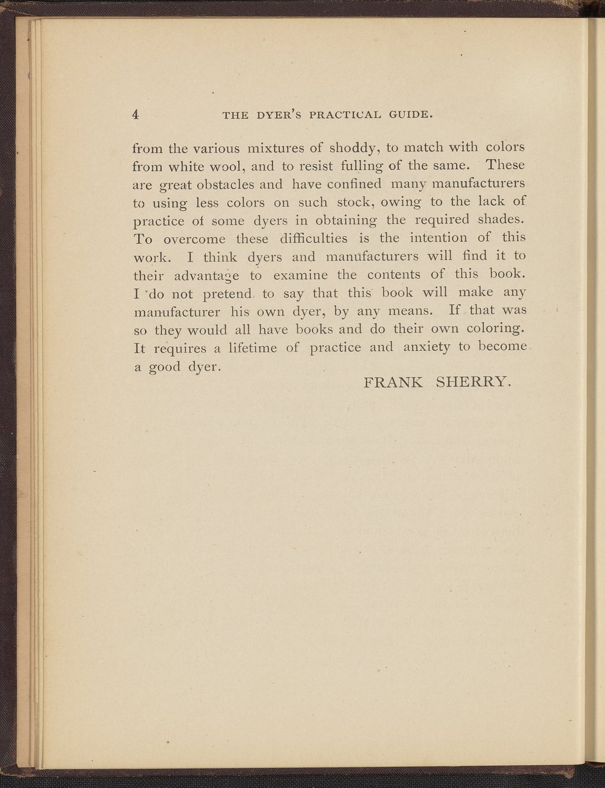 Sherry, Frank. “The Dyer's Practical Guide : A Treatise on the Art of Dyeing Wool, Shoddy and Cotton.” Franklin, Massachusetts: Franklin Steam Printing House, 1884. TP897 .S54 1884. Science History Institute. Philadelphia. https://digital.sciencehistory.org/works/aznpi7s.
