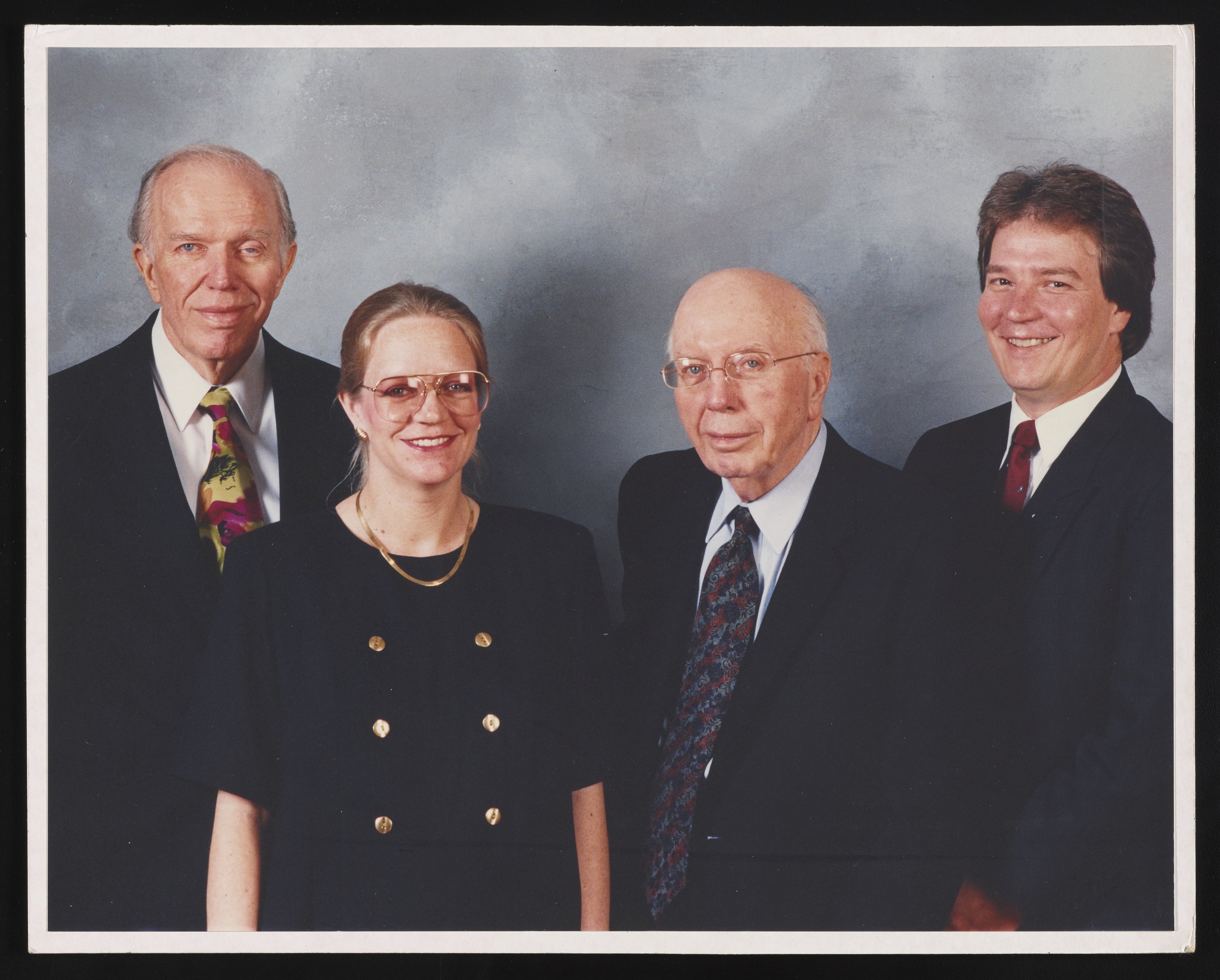 Joseph Coulter, Jr., Laura Coulter-Jones, Wallace Coulter, and Joseph Coulter III pose for a family portrait.