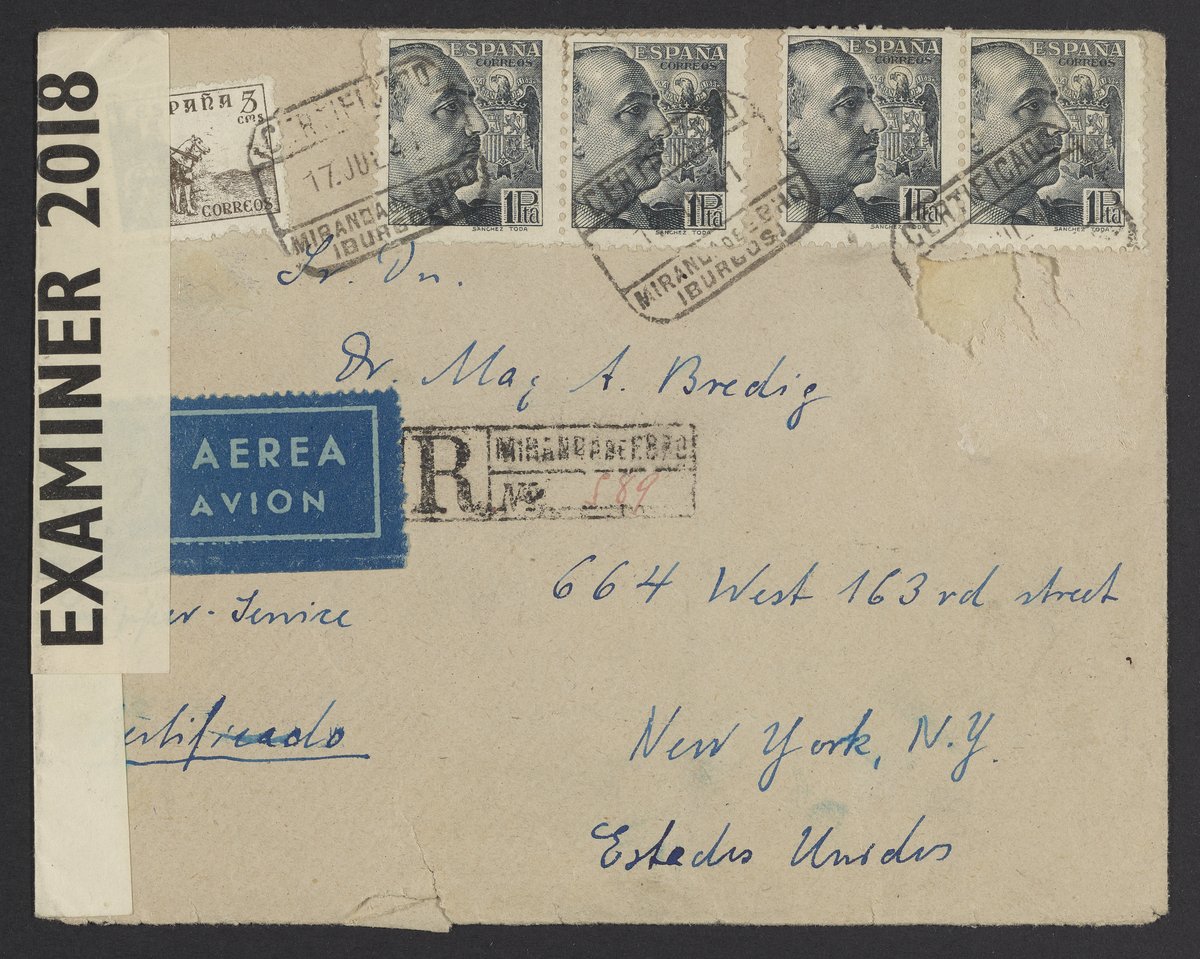 Hochwald, Fritz G. “Envelopes from Fritz Hochwald to Max Bredig,” 1941–1942. Papers of Georg and Max Bredig, Box 8, Folder 16. Science History Institute. Philadelphia. https://digital.sciencehistory.org/works/barnfzi.