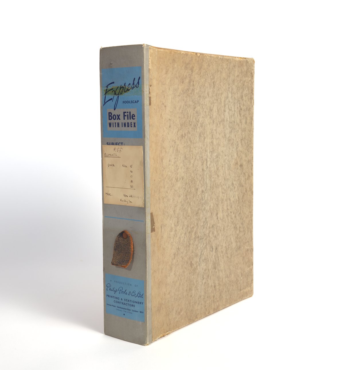 Small JPG1200 x 1664px — 207 KBLarge JPG2880 x 3994px — 975 KBFull-sized JPG4606 x 6387px — 2.2 MBOriginal fileTIFF — 4606 x 6387px — 168 MBFile box belonging to Rosalind Franklin (1920-1958). The box is labeled "REF Reprints. DNA Nos. 15, 16, 17, 18, 21. Misc. Nos 32 (no copies) Faraday Soc."