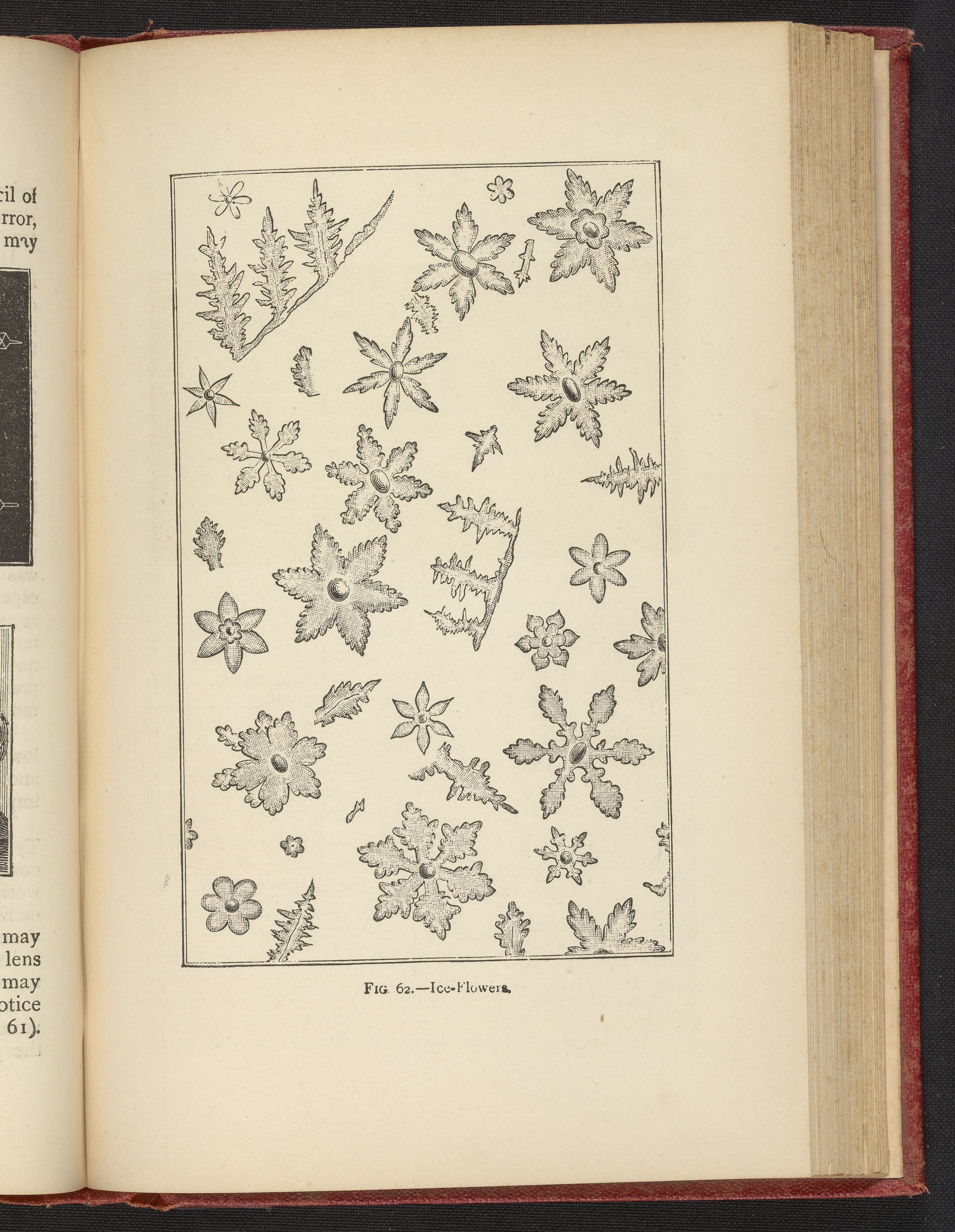 Entitled "Ice-Flowers," this plate illustrates snowflake-like patterns found in ice crystals under magnification.