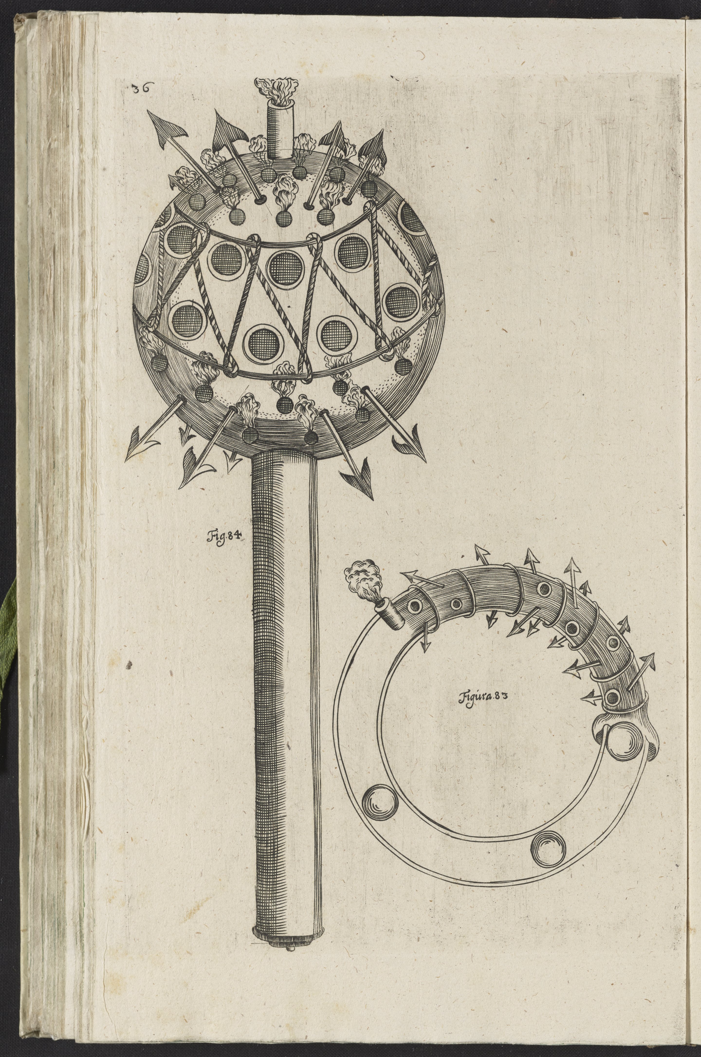 Brawe, Hermann. “Plate 36: Pyrotechnic Wreath and Ball.” In Vollenkommene Unterweisung, Wie Raketen, Feuer- Wasser- Sturm-Kugeln, Granaten, Pech-Sturm-Kräntze, Und Allerhand Lust Und Ernsthaffte Feuer-Wercke Zubereiten. Osnabrück, Germany: Johann Georg Schwänder, 1660. https://digital.sciencehistory.org/works/bc386j46g.