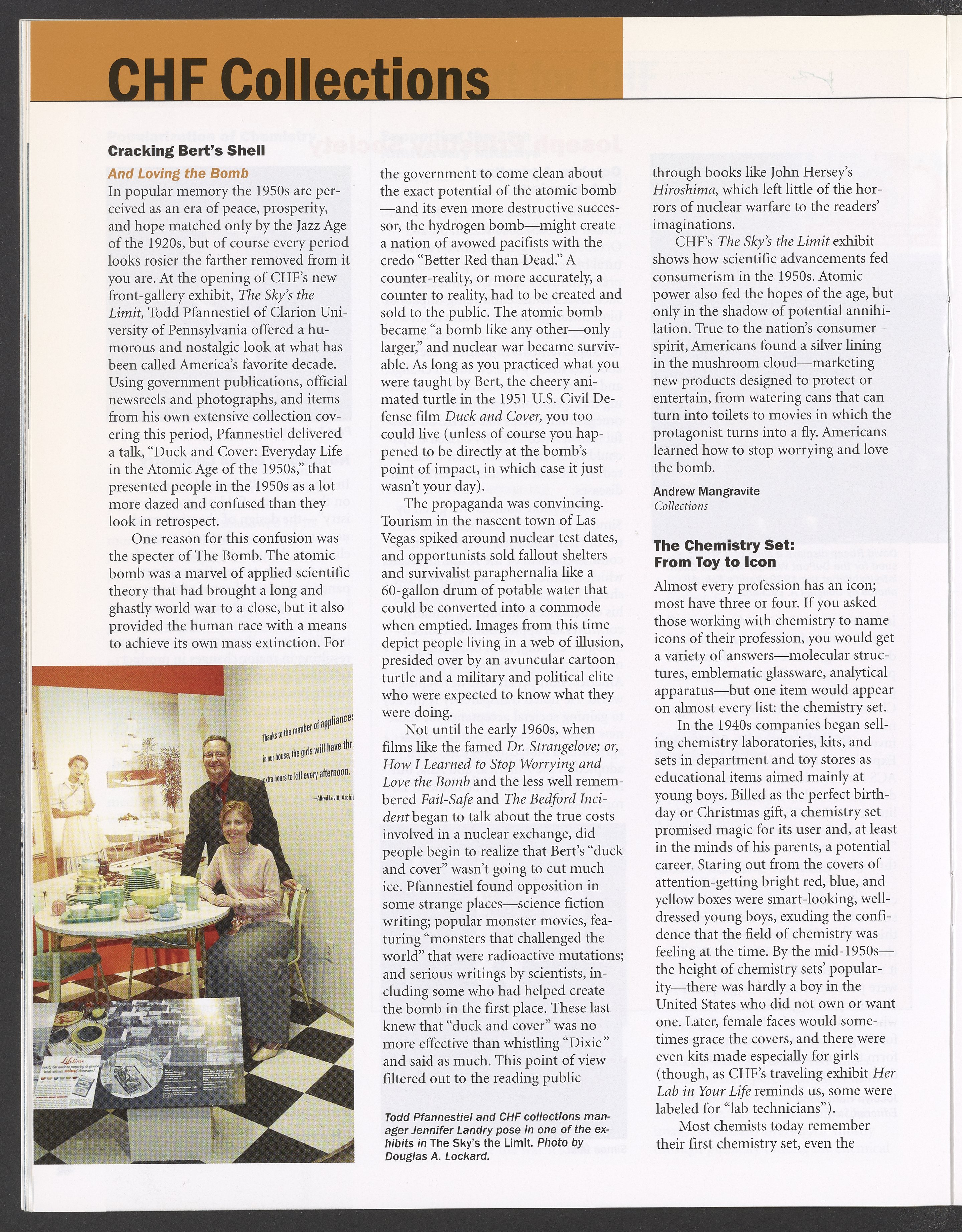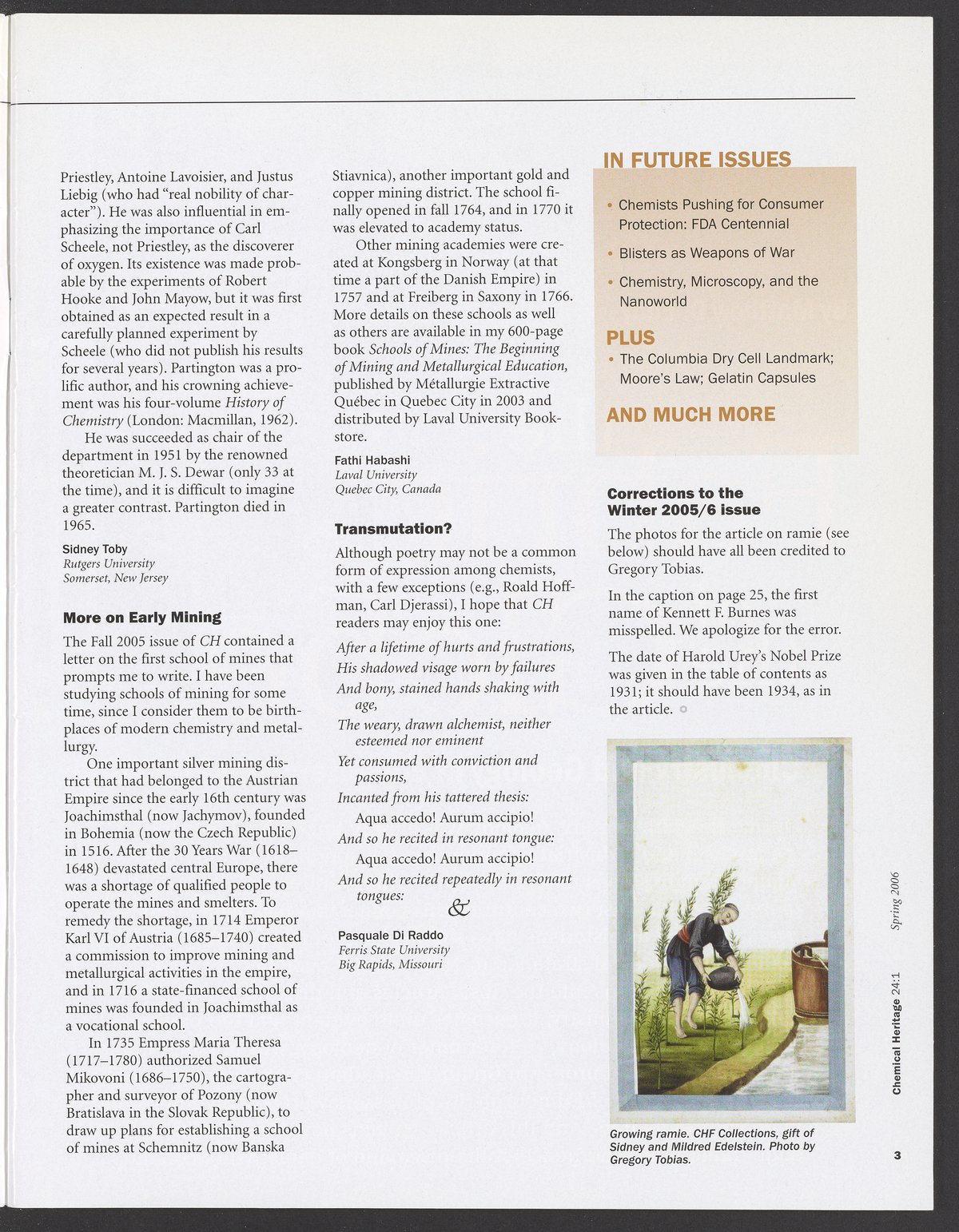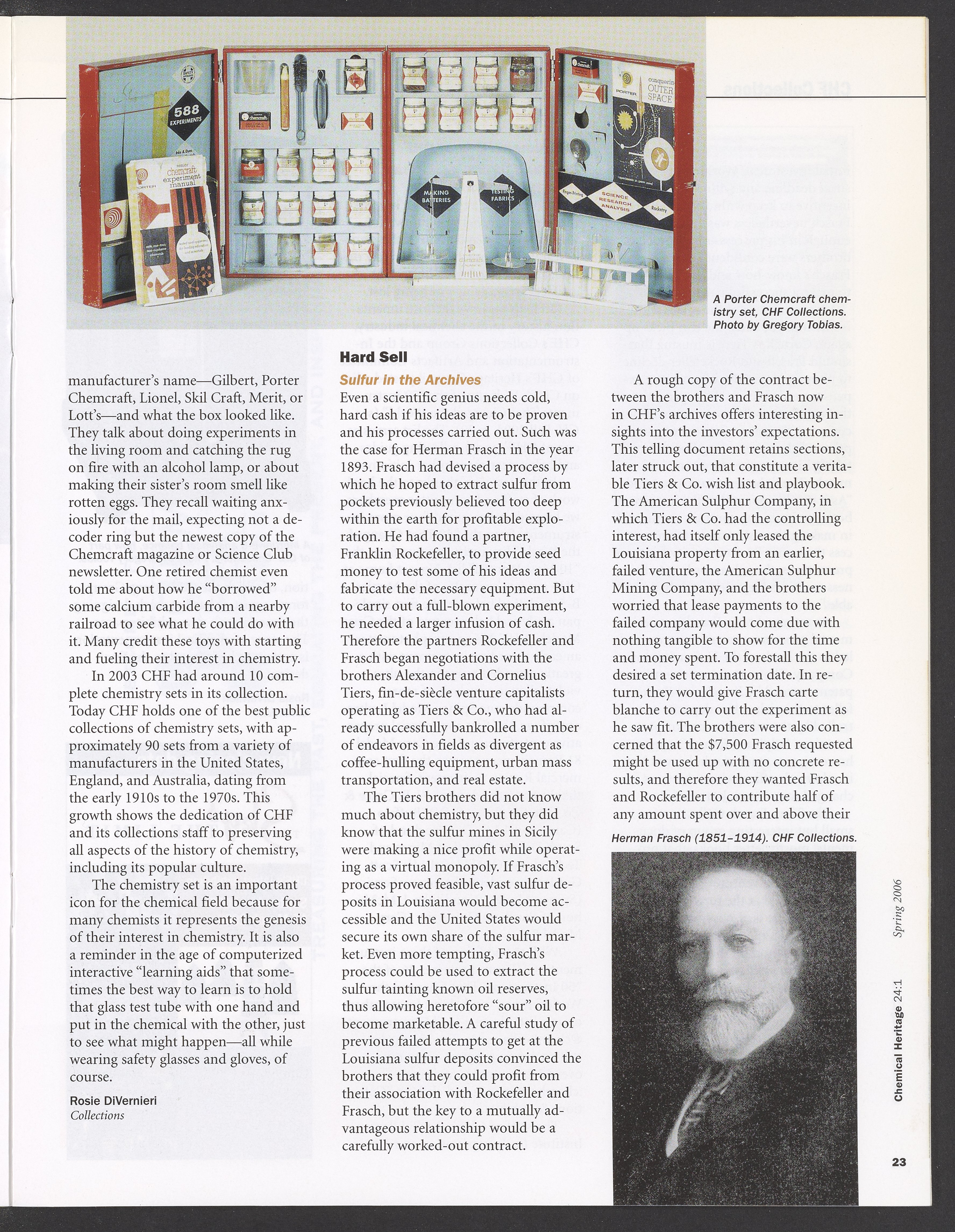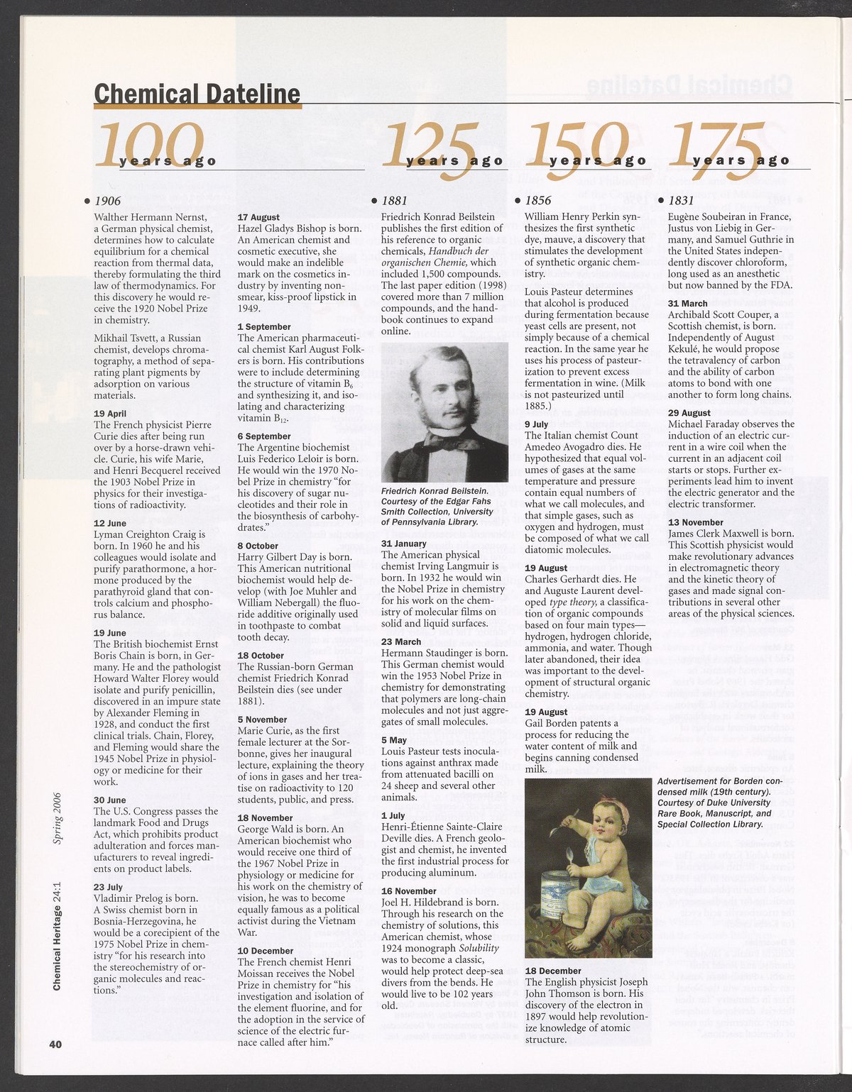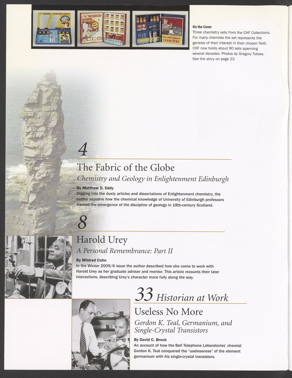 “Chemical Heritage, Volume 24 Number 1.” Philadelphia, Pennsylvania: Chemical Heritage Foundation, 2006. 099C001. Science History Institute. Philadelphia. https://digital.sciencehistory.org/works/bhh3qki.
