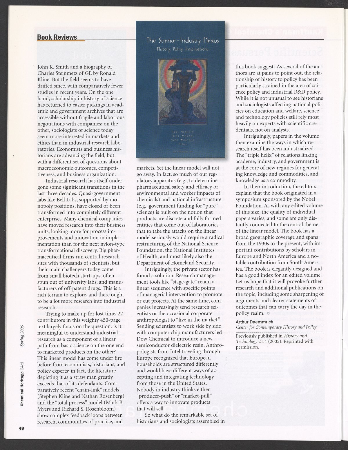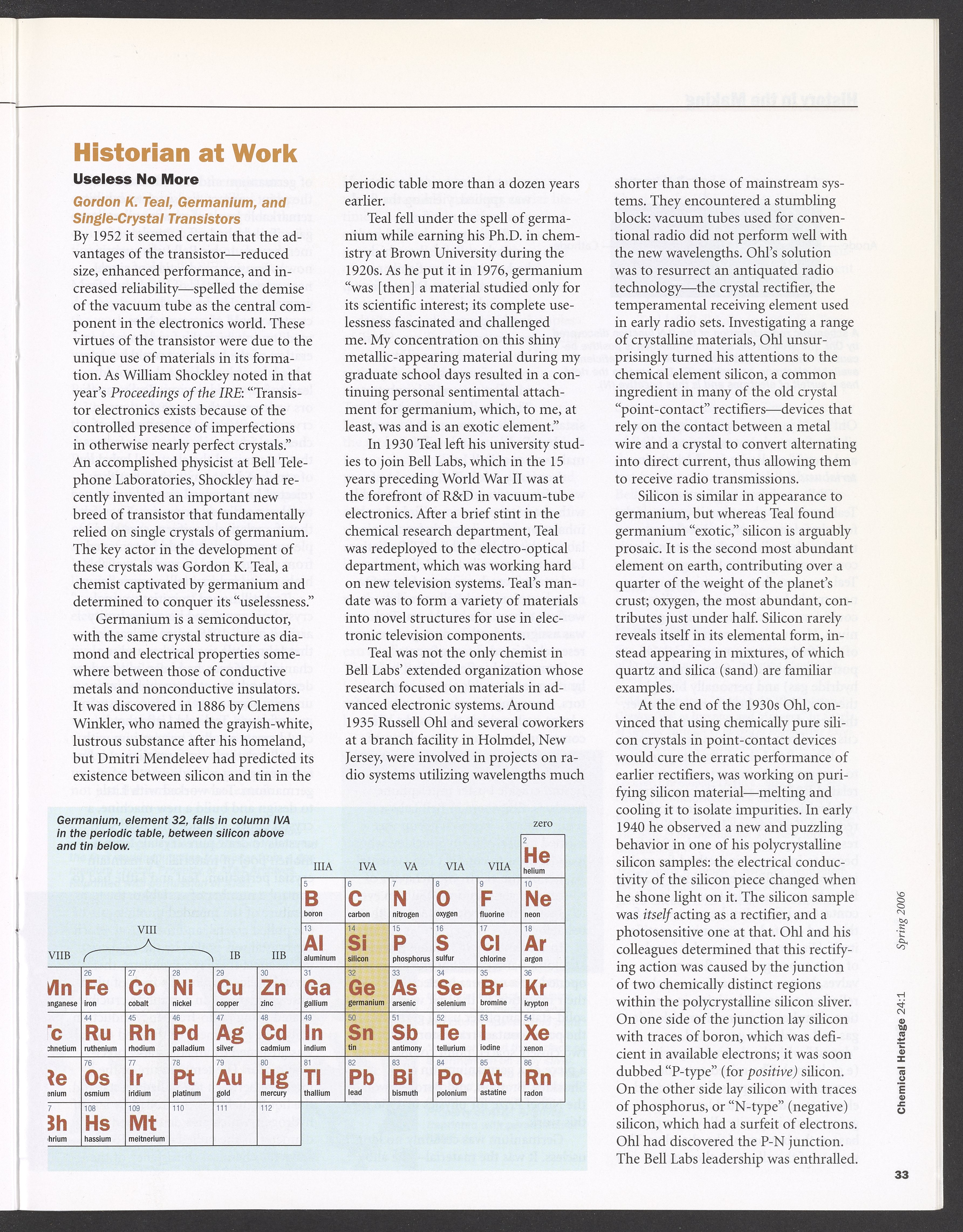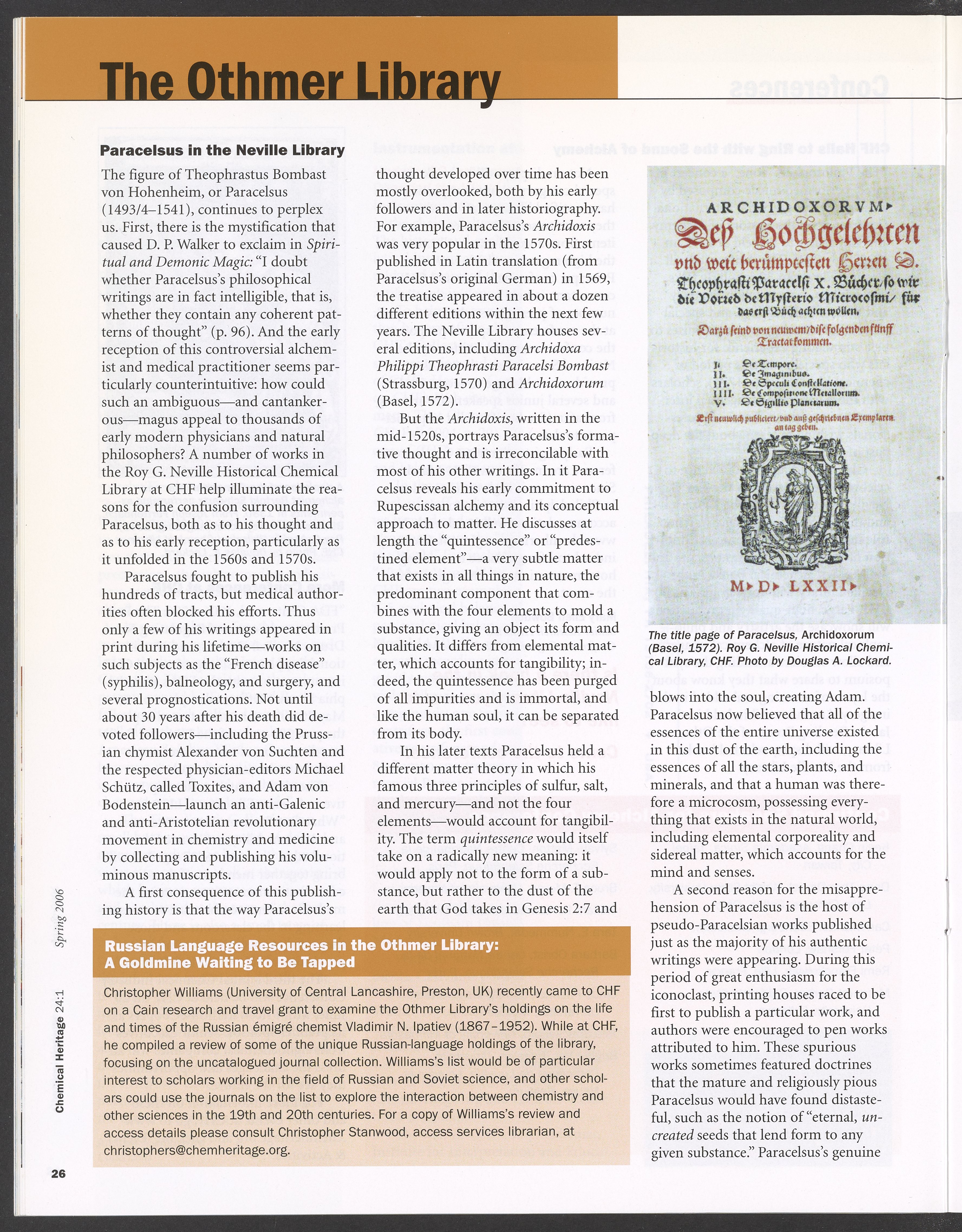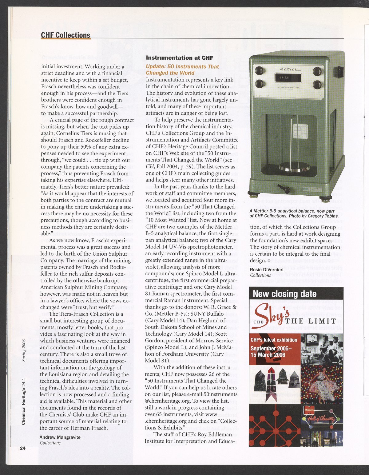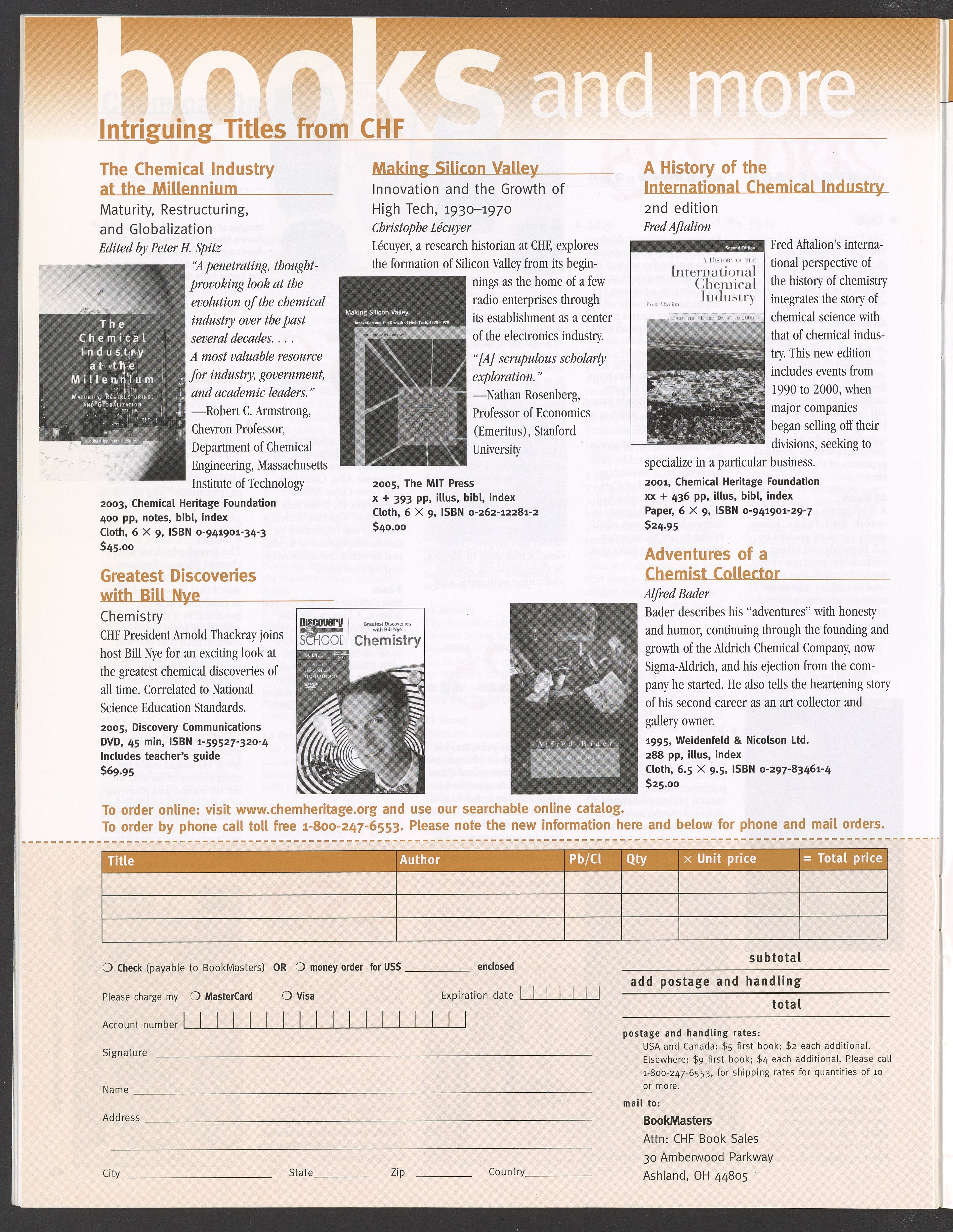 “Chemical Heritage, Volume 24 Number 1.” Philadelphia, Pennsylvania: Chemical Heritage Foundation, 2006. 099C001. Science History Institute. Philadelphia. https://digital.sciencehistory.org/works/bhh3qki.
