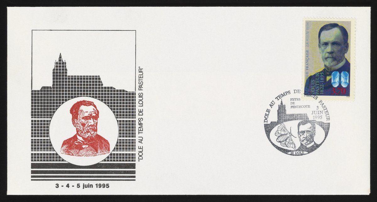 Cachet, stamp, and postmark depict Louis Pasteur.
