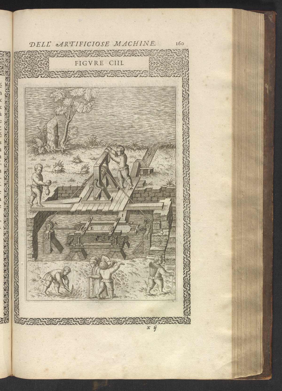 Ramelli, Agostino. “Plate 103: Device for Two Men to Drain Water from a Foundation.” In Le Diverse Et Artificiose Machine Del Capitano Agostino Ramelli. Paris, France, 1588. https://digital.sciencehistory.org/works/bk128b124.