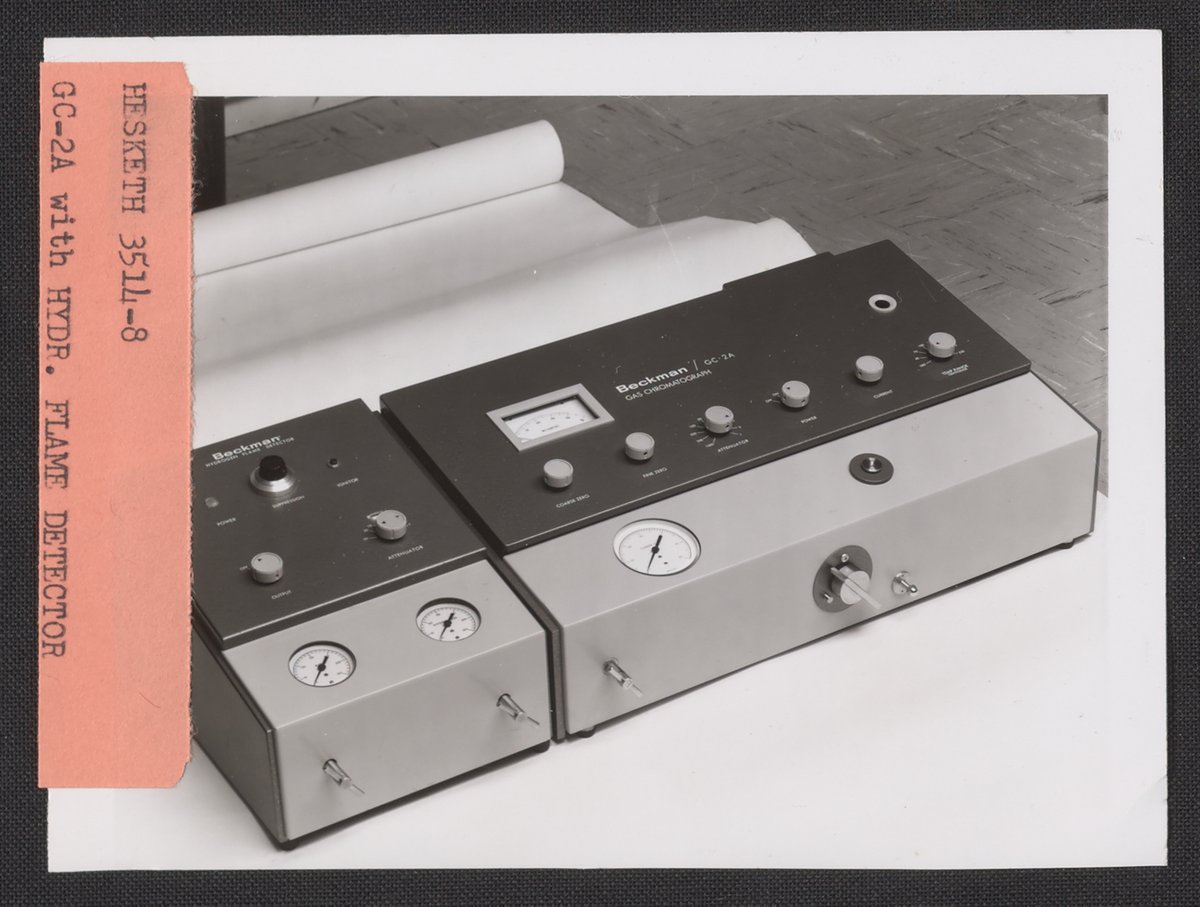 Hesketh, Dean D. “Beckman GC-2A Gas Chromatograph with Hydrogen Flame Detector,” 1964. Beckman Historical Collection, Box 86. Science History Institute. Philadelphia. https://digital.sciencehistory.org/works/bk128b434.
