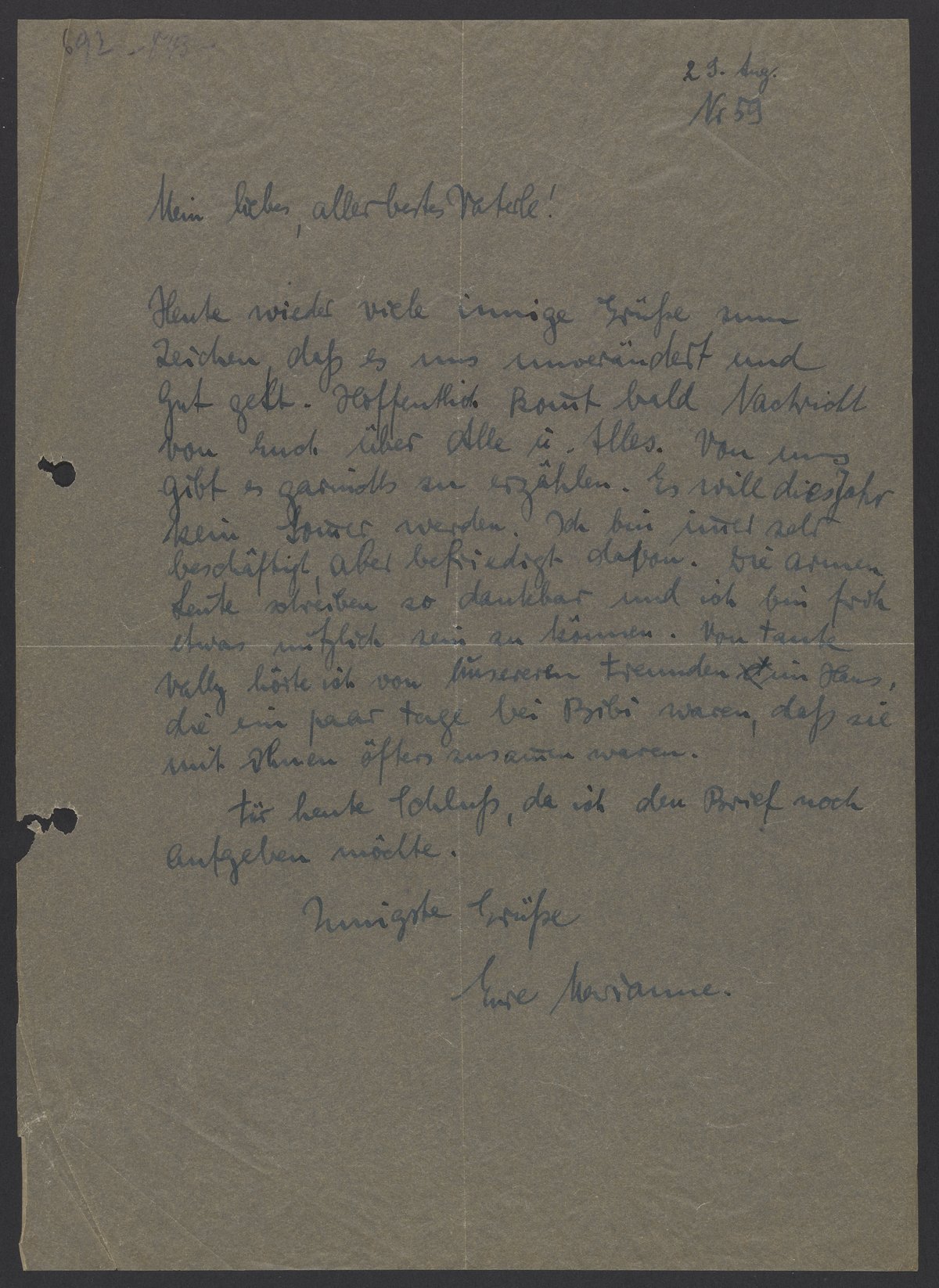 Letter from Marianne Homburger to Georg Bredig, August 29, 1940