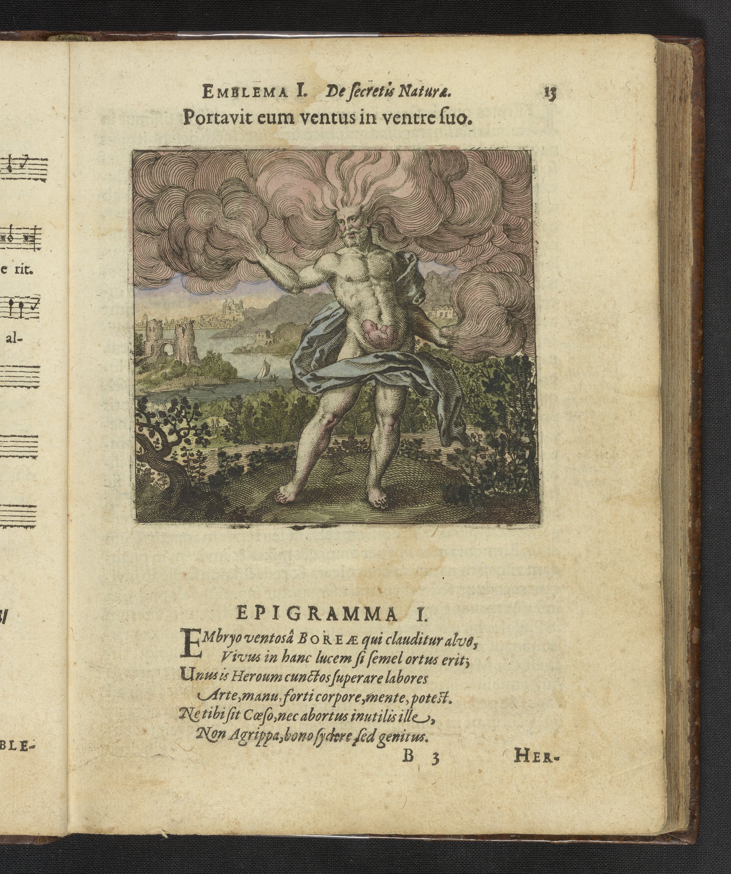 Maier, Michael. “Emblema I. Portavit Eum Ventus in Ventre Suo.” In Atalanta Fugiens. Oppenheim, Germany: Johann-Theodor de Bry, 1618. https://digital.sciencehistory.org/works/br86b456x.