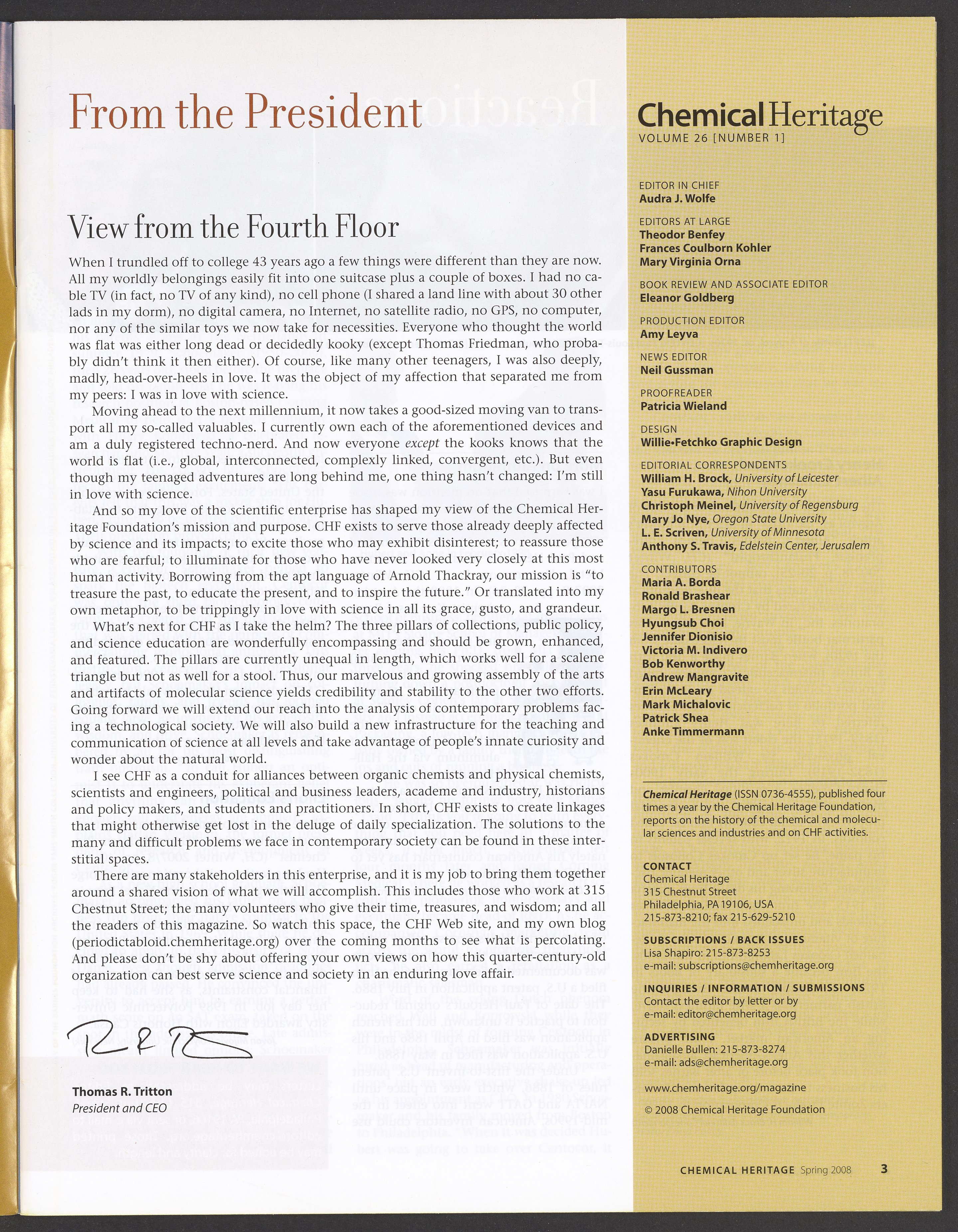 Chemical Heritage, Volume 26 Number 1
