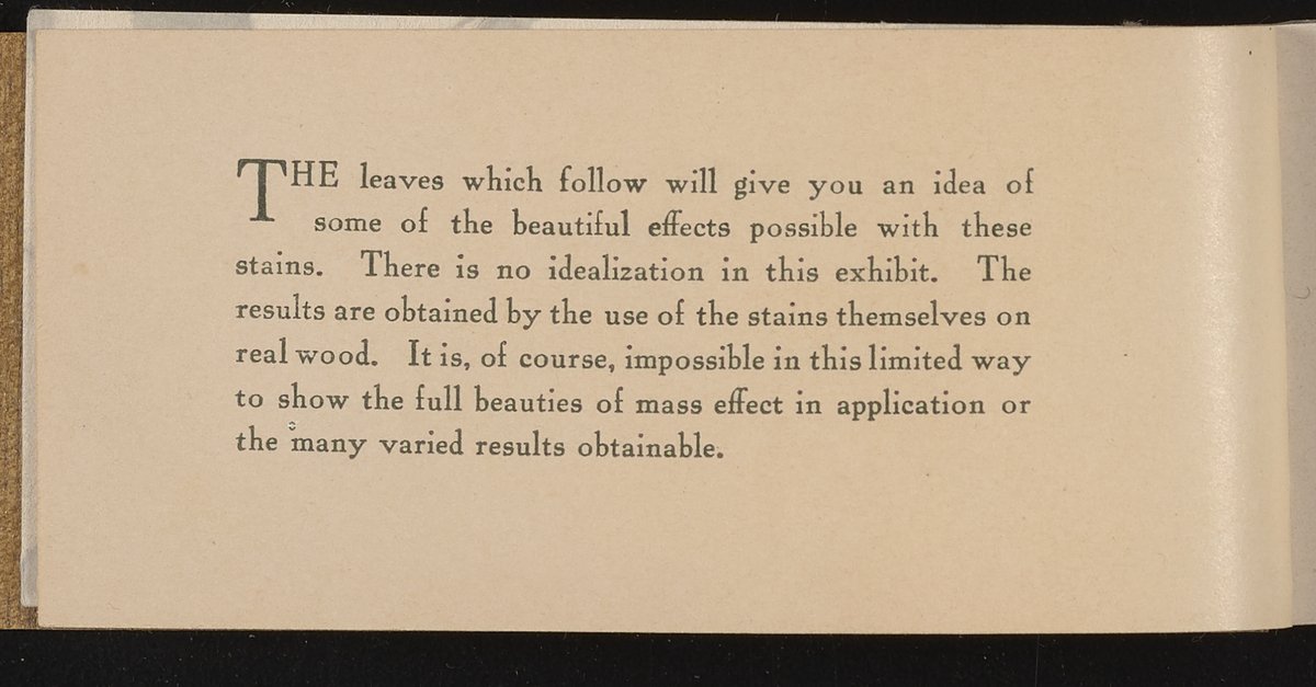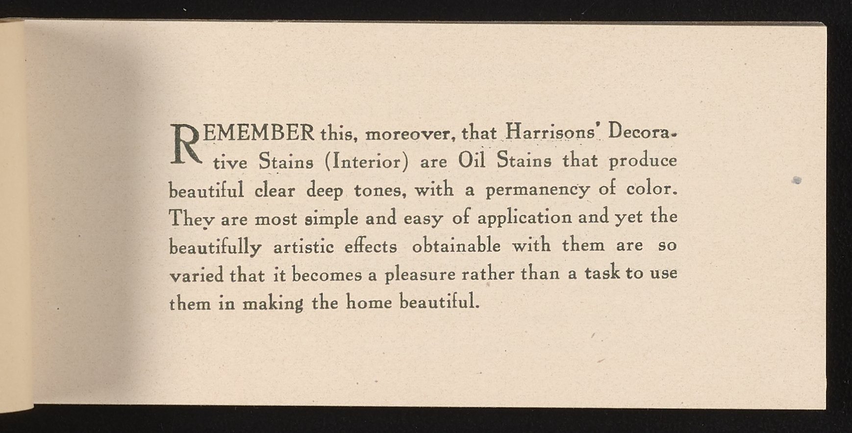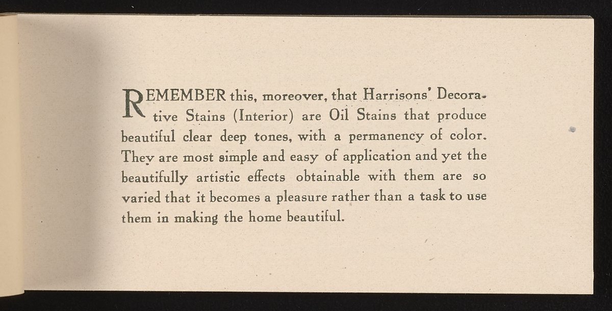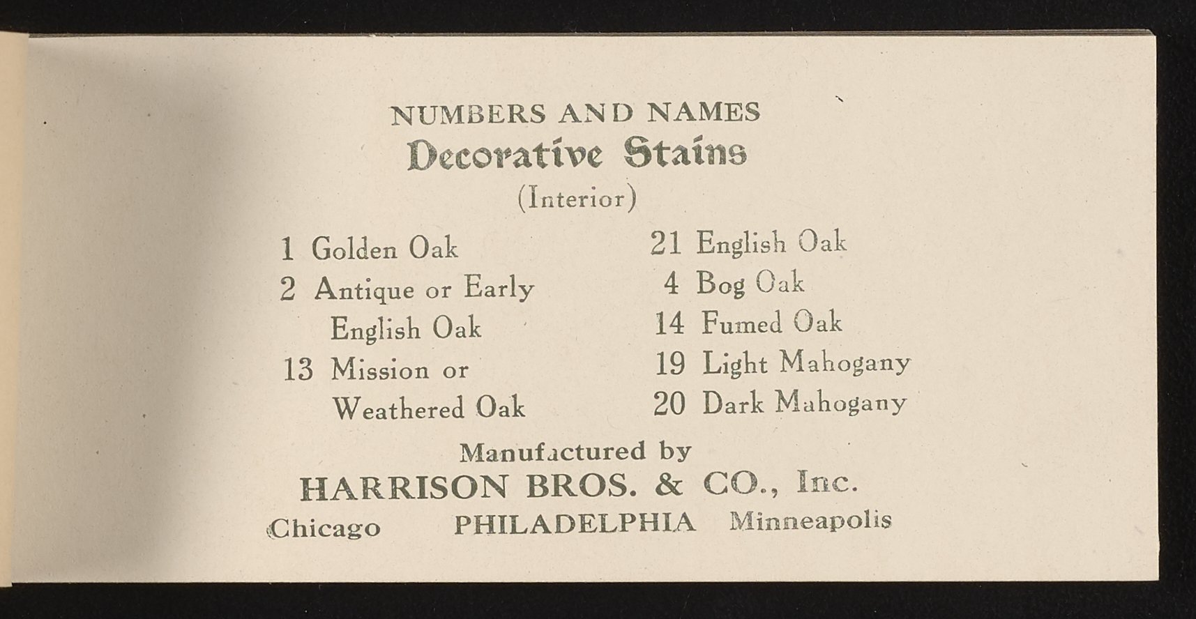 Harrison Bros. & Co. Leaves from the Woods : Finished with Harrisons' (Interior) Decorative Stains. Philadelphia, Pennsylvania, n.d. https://digital.sciencehistory.org/works/c26dktp.