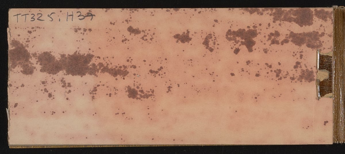 Small JPG1200 x 536px — 185 KBFull-sized JPG1996 x 892px — 455 KBOriginal fileTIFF — 1996 x 892px — 5.1 MBPiece is bound in stained veneer and consists of 20 veneer samples interleaved with printed parchment.