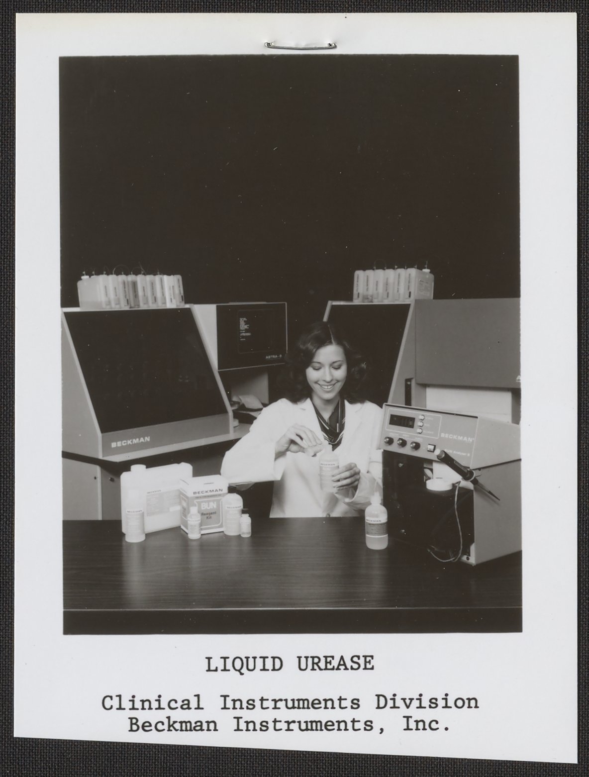 PDFFull-sized JPG1184 x 1562px — 171 KBOriginal fileTIFF — 1184 x 1562px — 5.4 MBA woman sits surrounded by Beckman Blood Urea Nitrogen (BUN) reagents and instruments (including an ASTRA and BUN Analzyer).