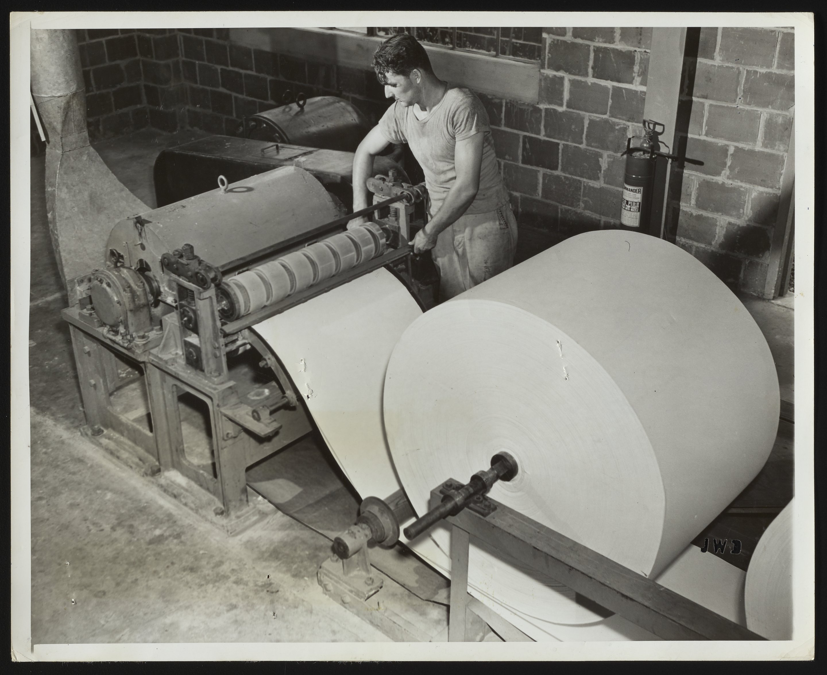 Employee operating loose pulp dryer at Hercules Hopewell plant1957-Mar-12 – 1957-Mar-15