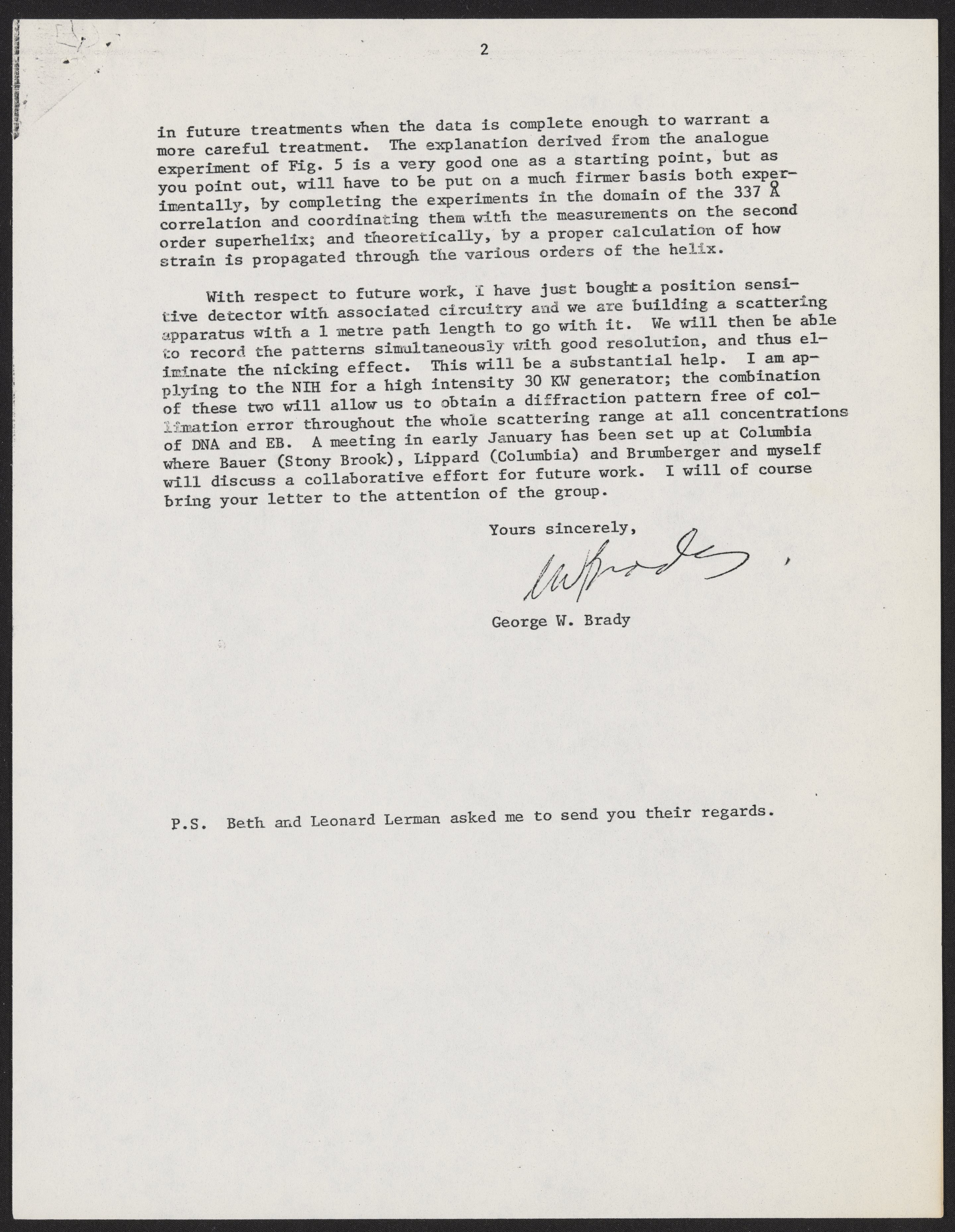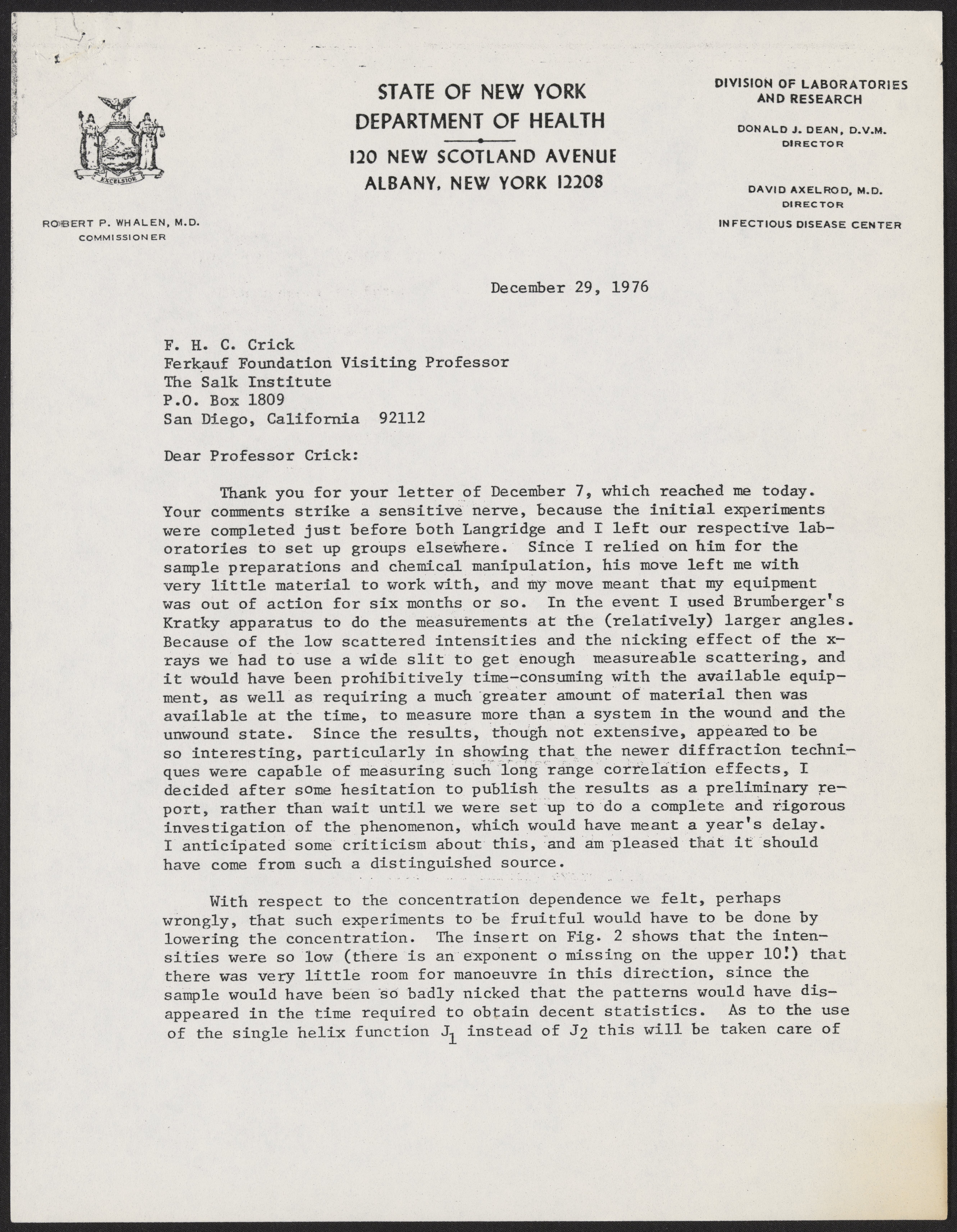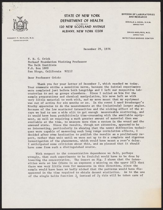 Letter from George W. Brady to Francis Crick, December 29, 1976