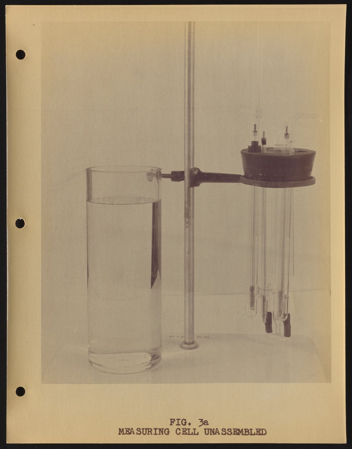 Small JPG1200 x 1531px — 176 KBLarge JPG2880 x 3675px — 916 KBFull-sized JPG3652 x 4660px — 1.4 MBOriginal fileTIFF — 3652 x 4660px — 48.7 MBTwo views of a measuring cell used during the early stages of synthetic fiber production and research at DuPont. Typically, such cells were placed in an electrolyte bath as part of a metered device used to measure the denier, or thickness, of a filament. The photographs are labeled "Figure 3a" and "Figure 4," indicating that they were used in a report or publication.