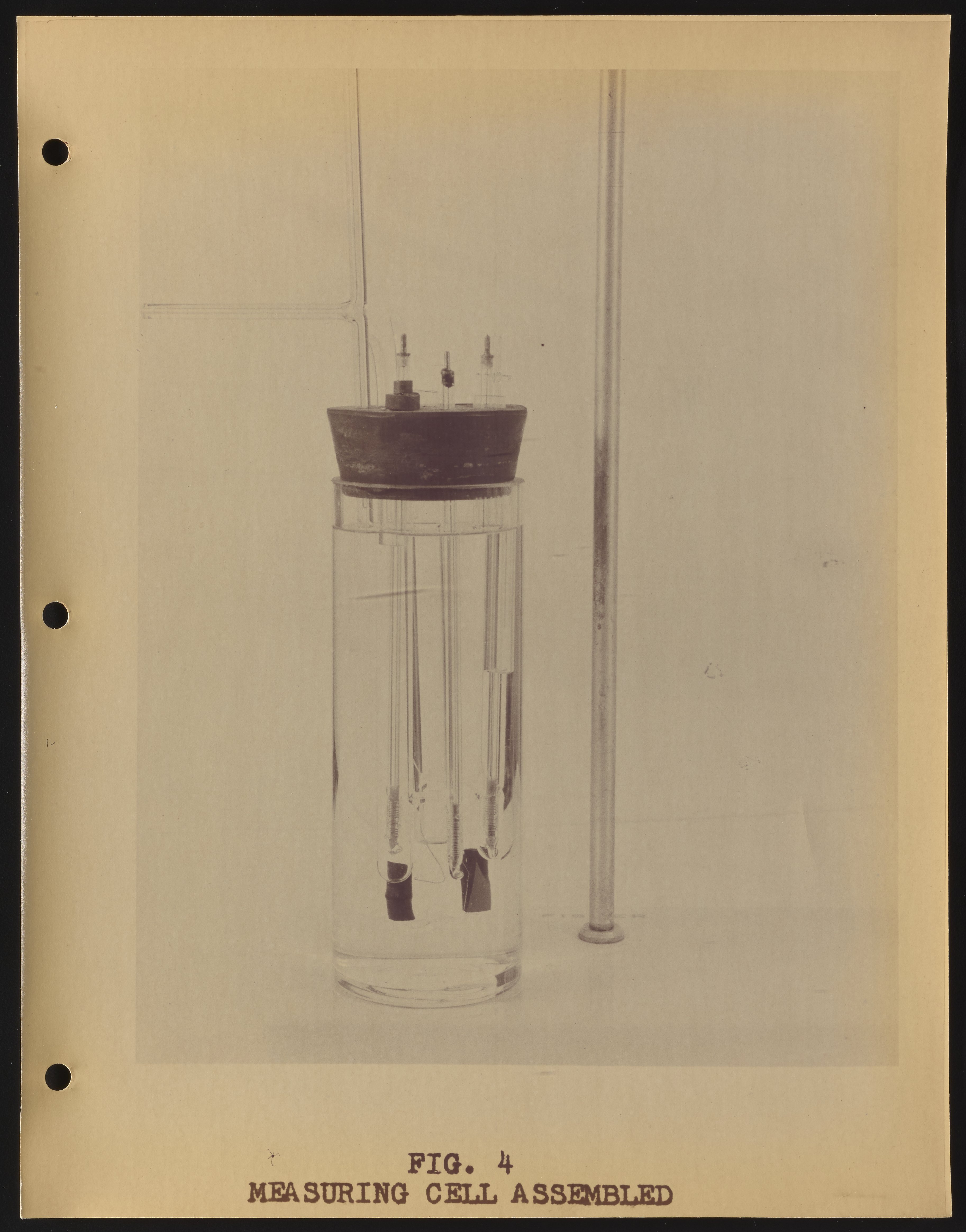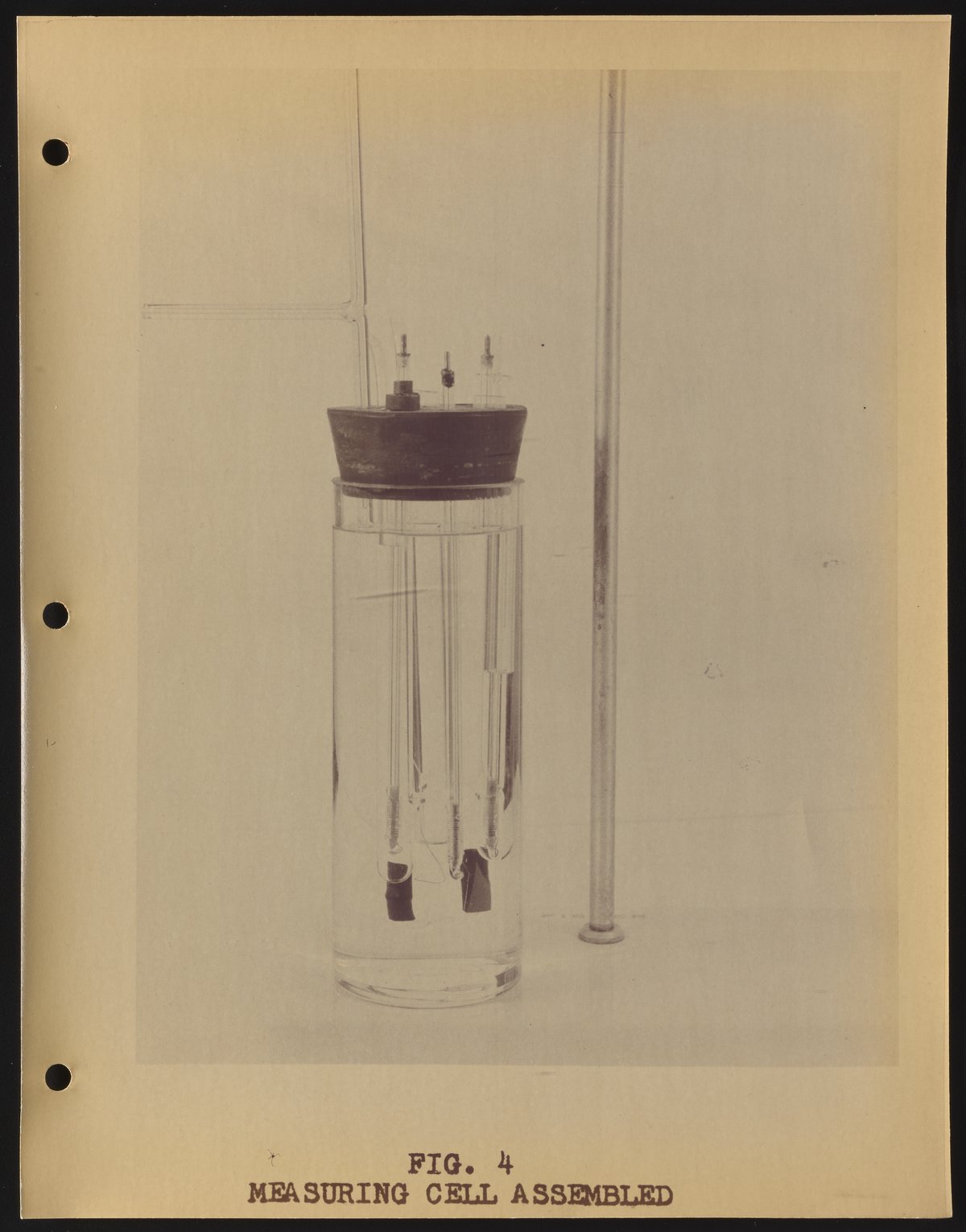 Small JPG1200 x 1531px — 176 KBLarge JPG2880 x 3675px — 916 KBFull-sized JPG3652 x 4660px — 1.4 MBOriginal fileTIFF — 3652 x 4660px — 48.7 MBTwo views of a measuring cell used during the early stages of synthetic fiber production and research at DuPont. Typically, such cells were placed in an electrolyte bath as part of a metered device used to measure the denier, or thickness, of a filament. The photographs are labeled "Figure 3a" and "Figure 4," indicating that they were used in a report or publication.