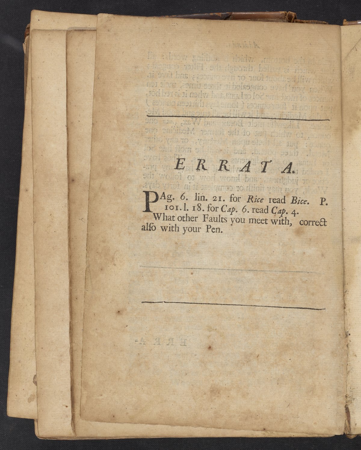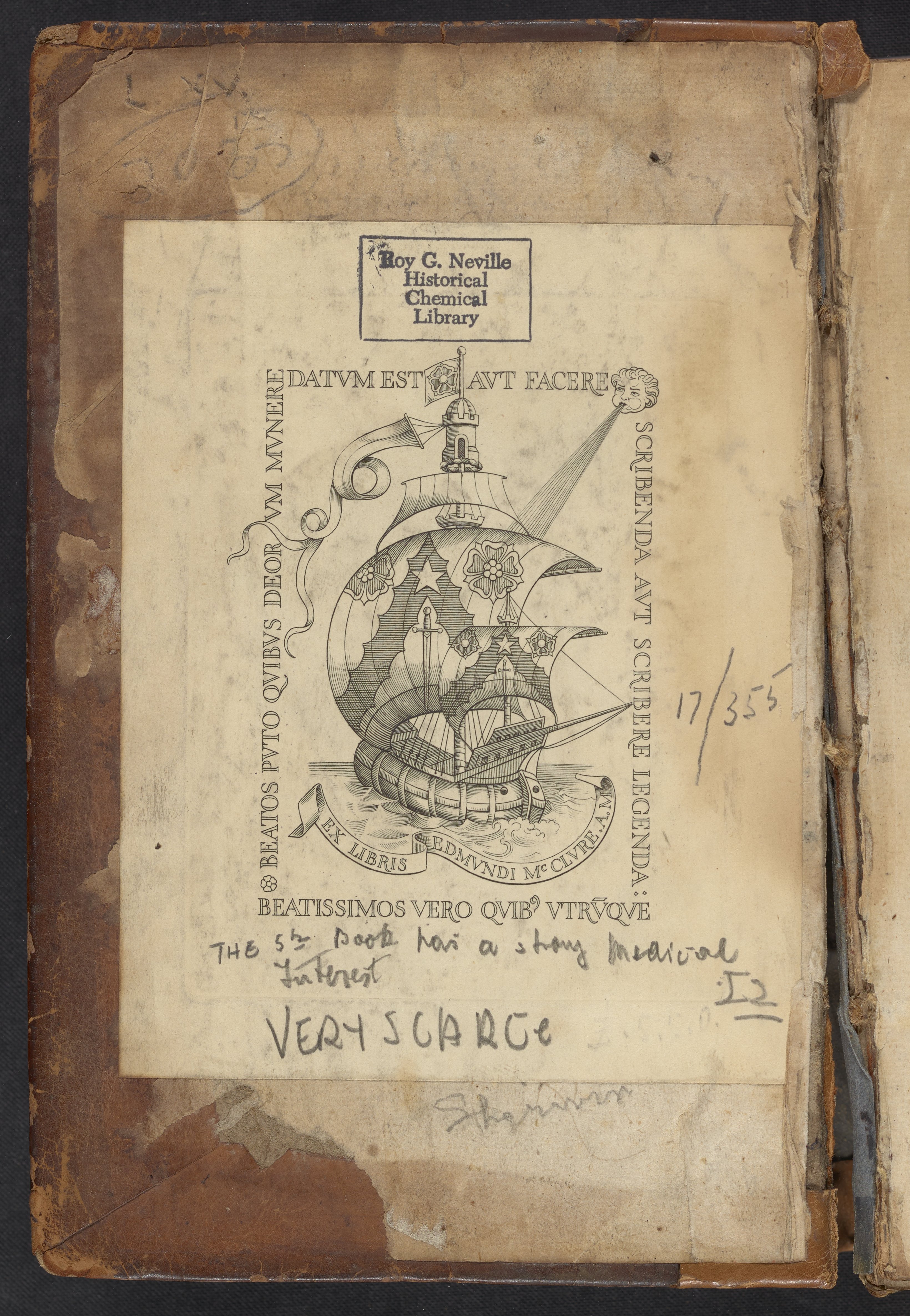 The most popular of William Salmon's numerous books, the title page refers to 25 plates within whereas other copies are also missing plates 3 and 10, as is the case with this particular copy. Select digitized content includes front cover, frontismatter, engraved portrait frontispiece of Salmon (age 27 in 1675), engraved title page (both by W. Sherwin) as well as recto and versos of extant copperplate engravings. Plates 22 and 23 are misbound between plates 17 and 18.