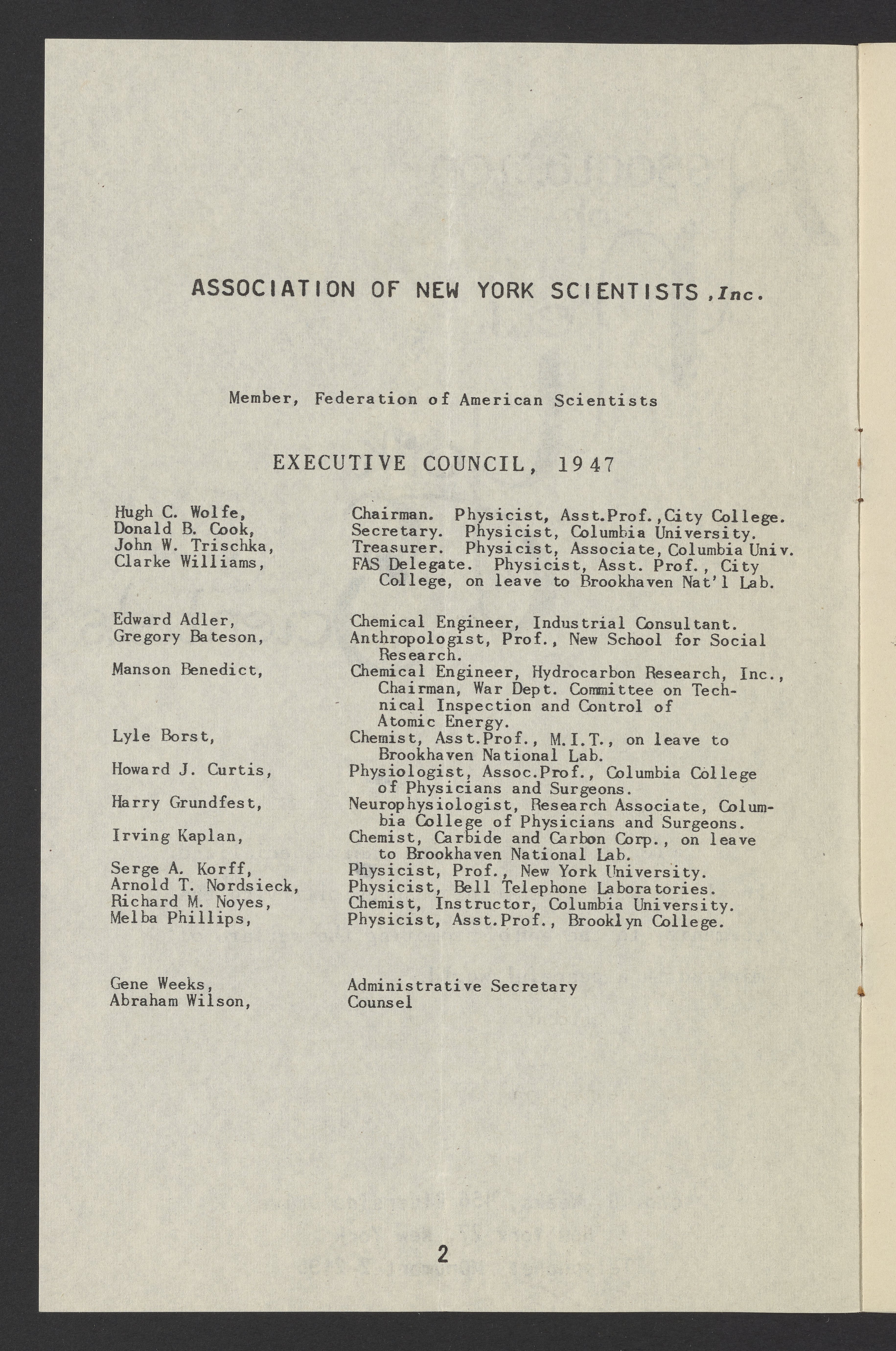 Association of New York Scientists. “Association of New York Scientists 1947 Newsletter,” 1947. Papers of Georg and Max Bredig, Box 10, Folder 3. Science History Institute. Philadelphia. https://digital.sciencehistory.org/works/cdpoepk.