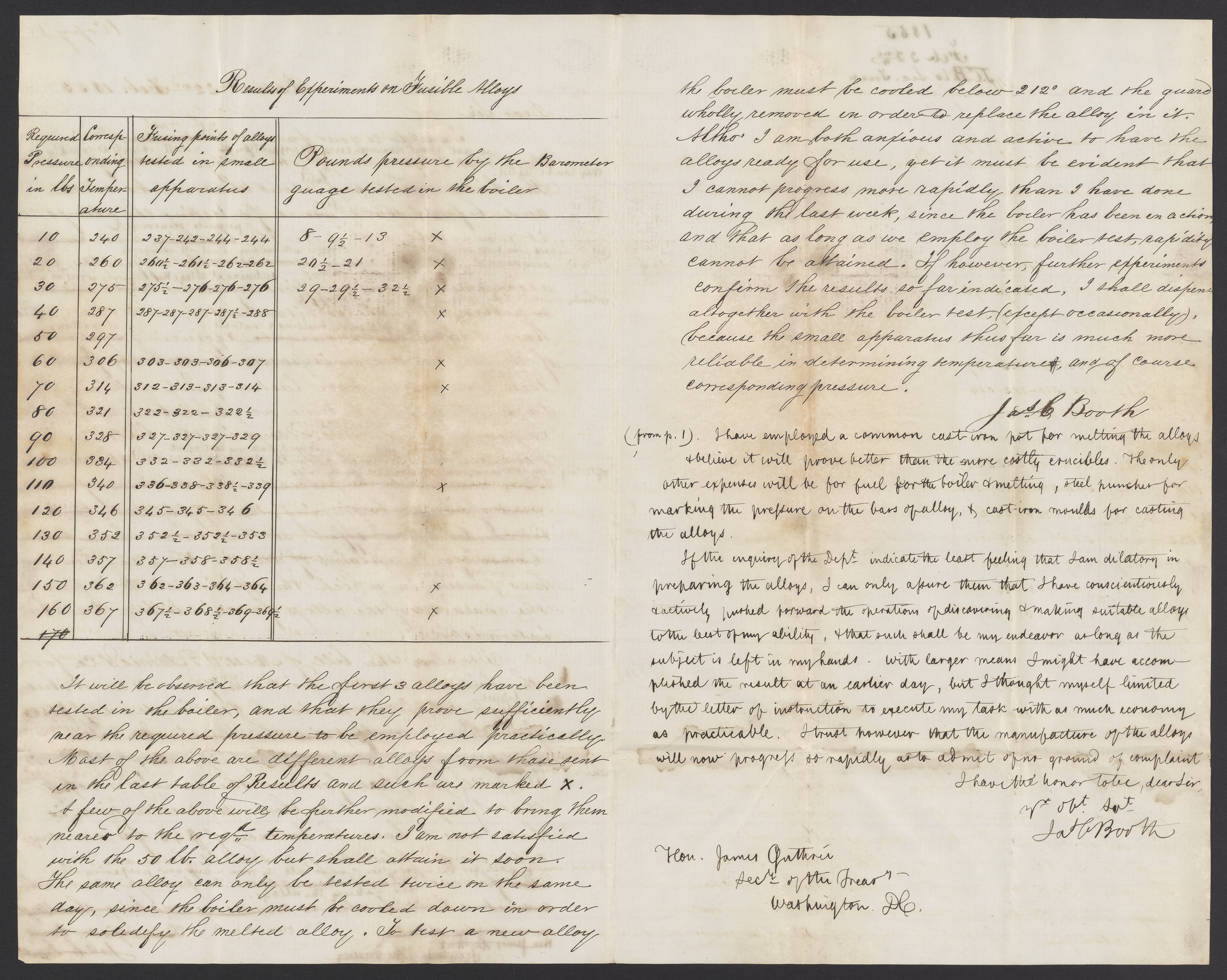 Letter from James Curtis Booth to James B. Guthrie, February 22, 1855