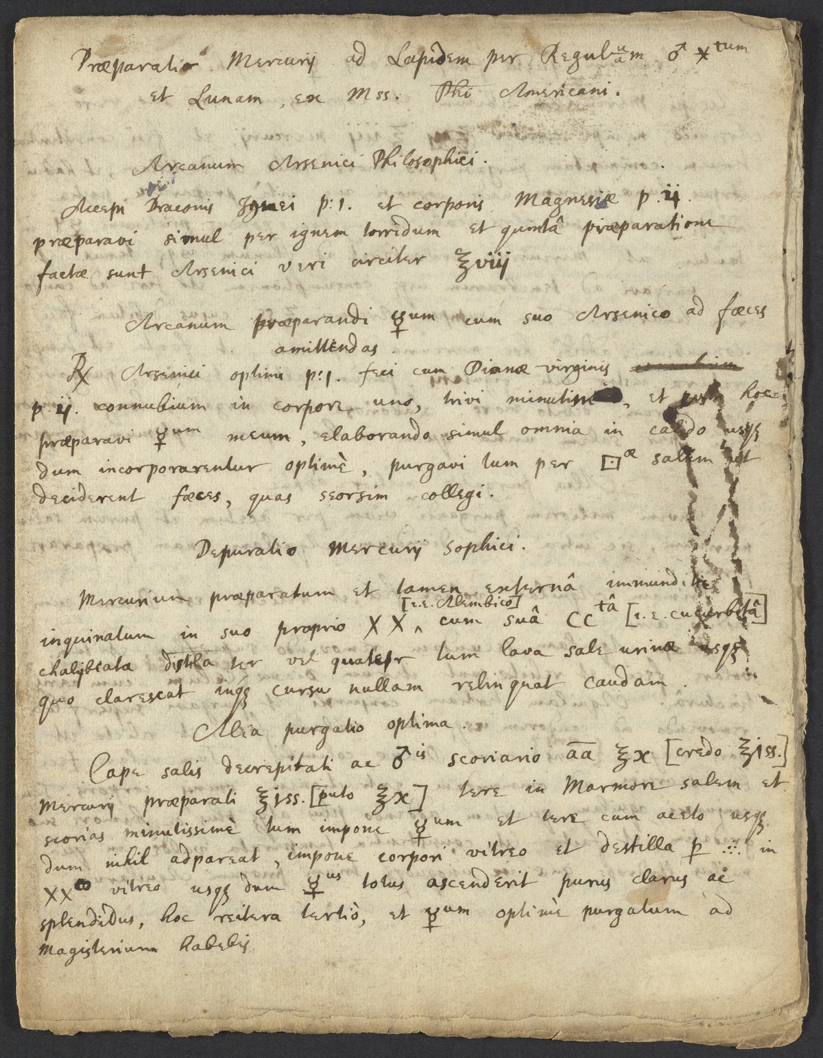 Praeparatio Mercurii ad Lapidem per Regulu/am ♂ [Martis] ✱tum [Stellatum] et Lunam, ex MSS. Phi Americani