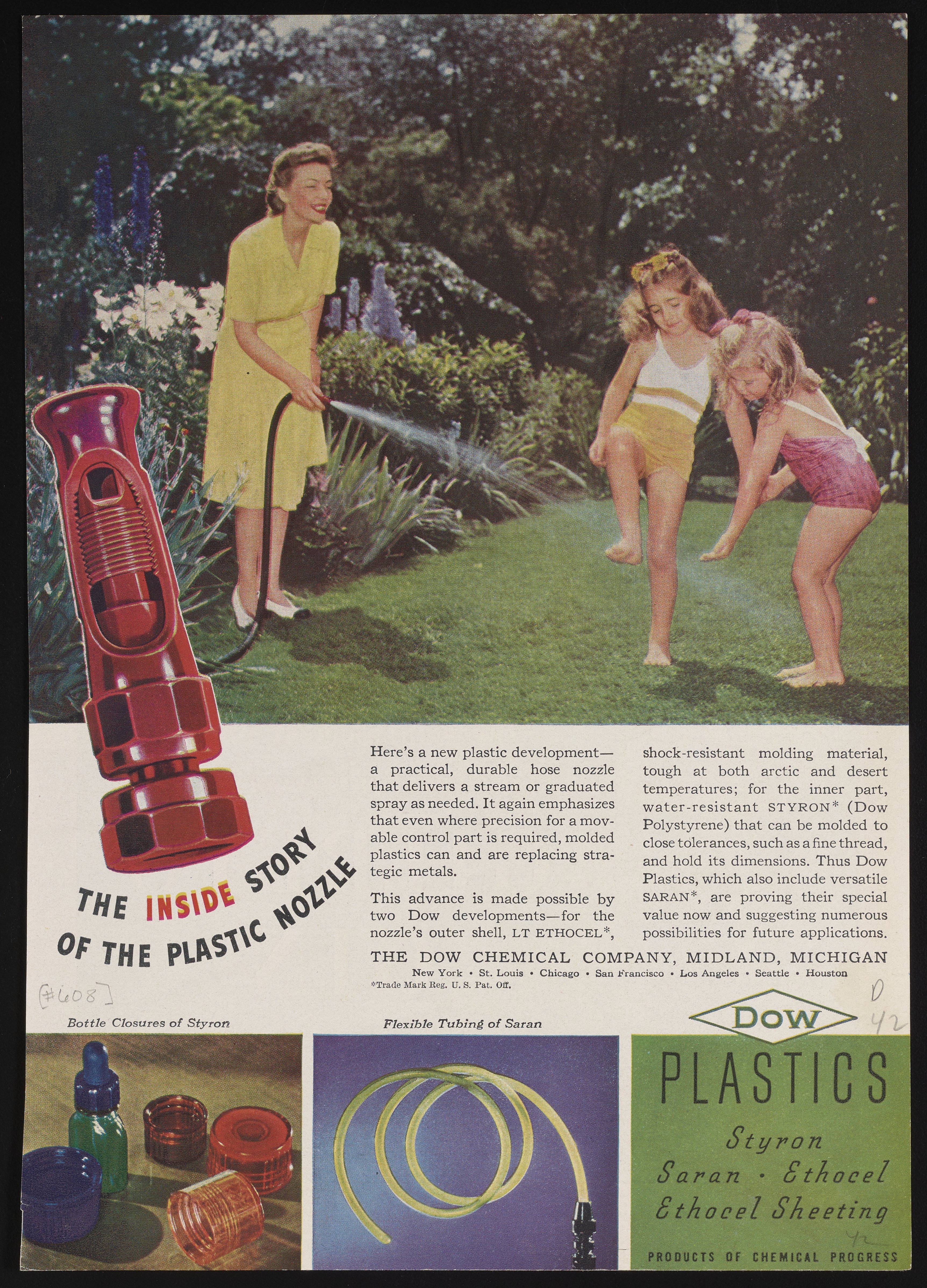 Dow Chemical Company. “The Inside Story of the Plastic Nozzle,” 1942. Advertisements from the Dow Chemical Historical Collection, Box 9. Science History Institute. Philadelphia. https://digital.sciencehistory.org/works/cgq4qqn.